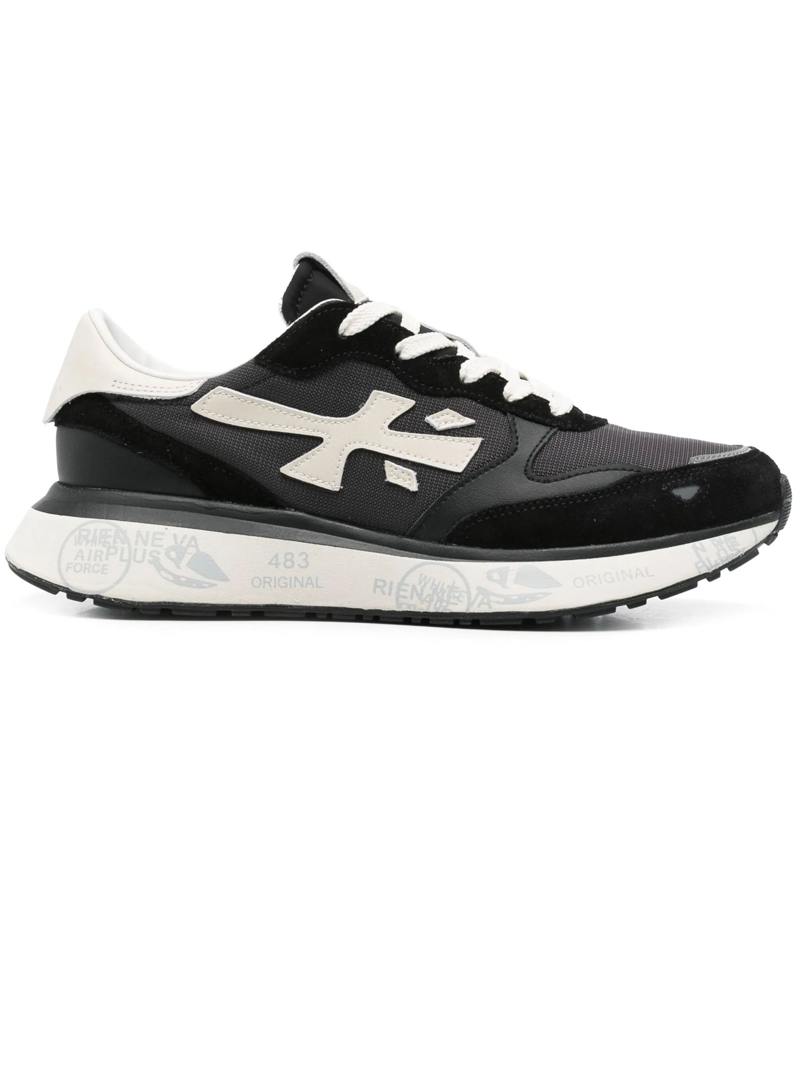 Sneakers Lauryn in suede e pelle nera con con inserti in mesh, chiusura frontale con lacci, punta tonda, logo sul tallone, suola chunky in gomma, altezza suola 3 cm