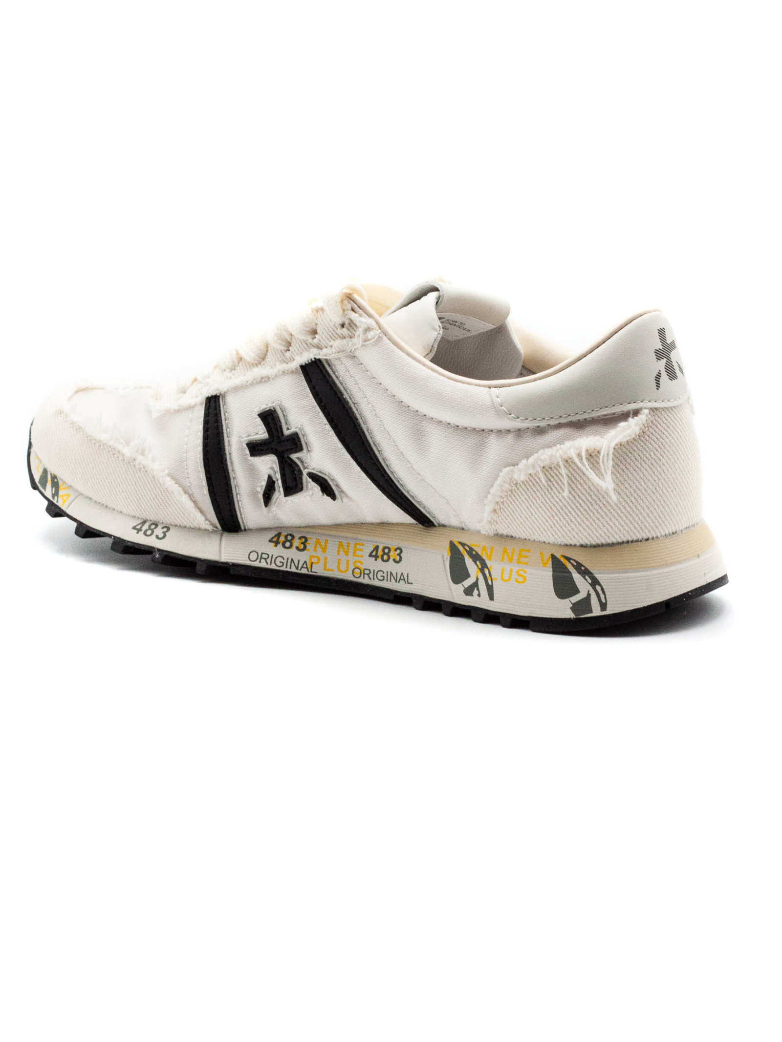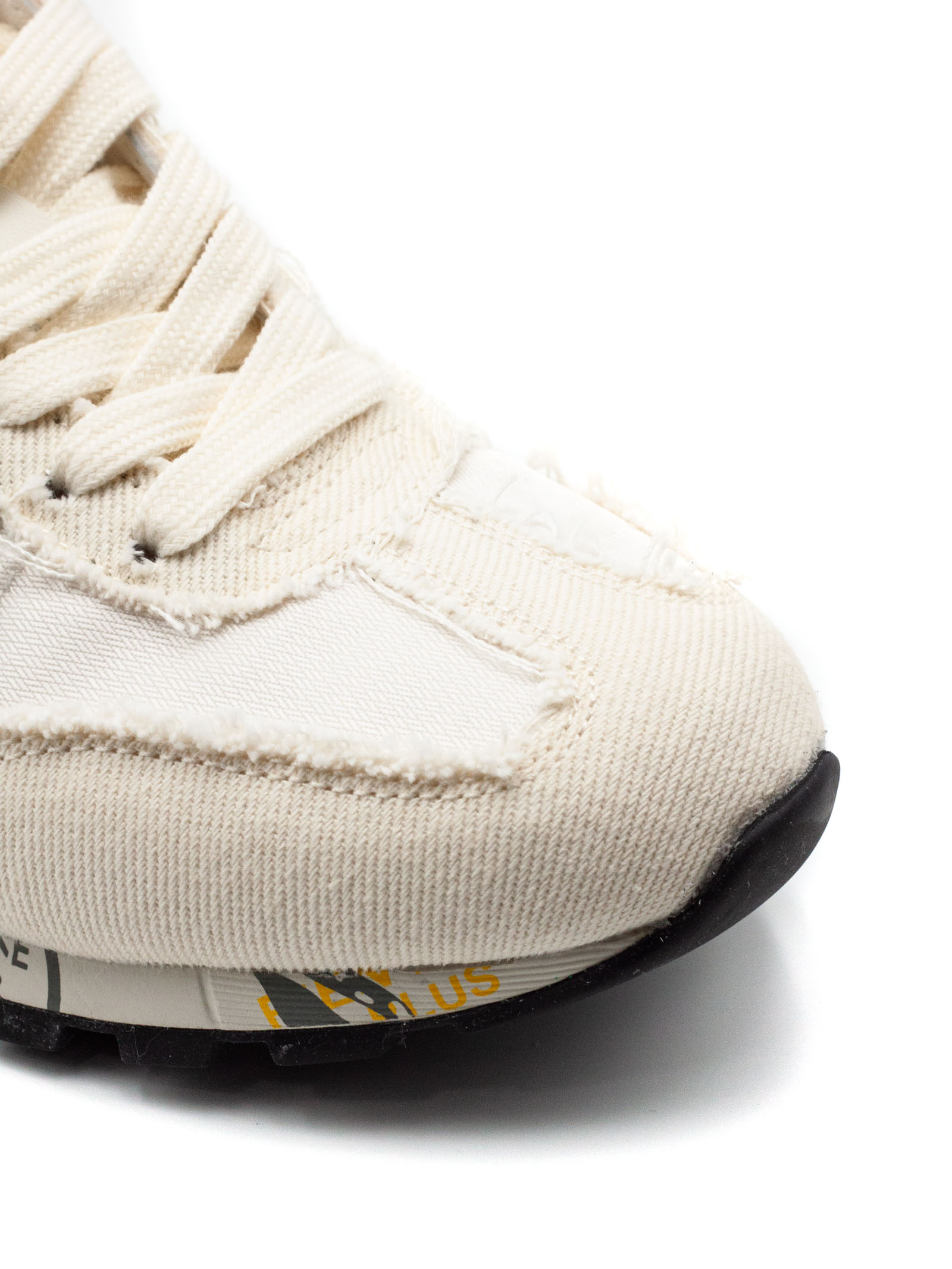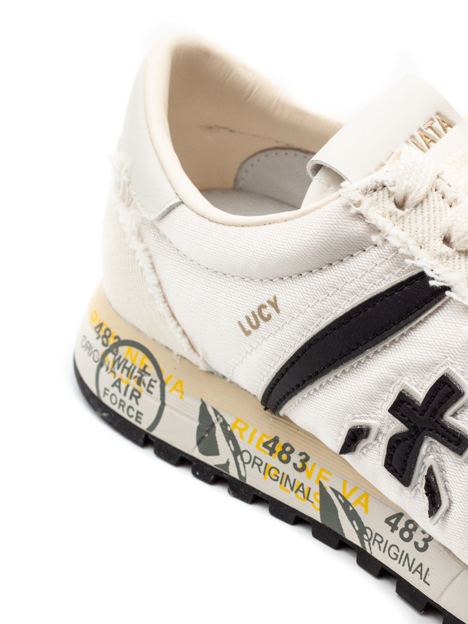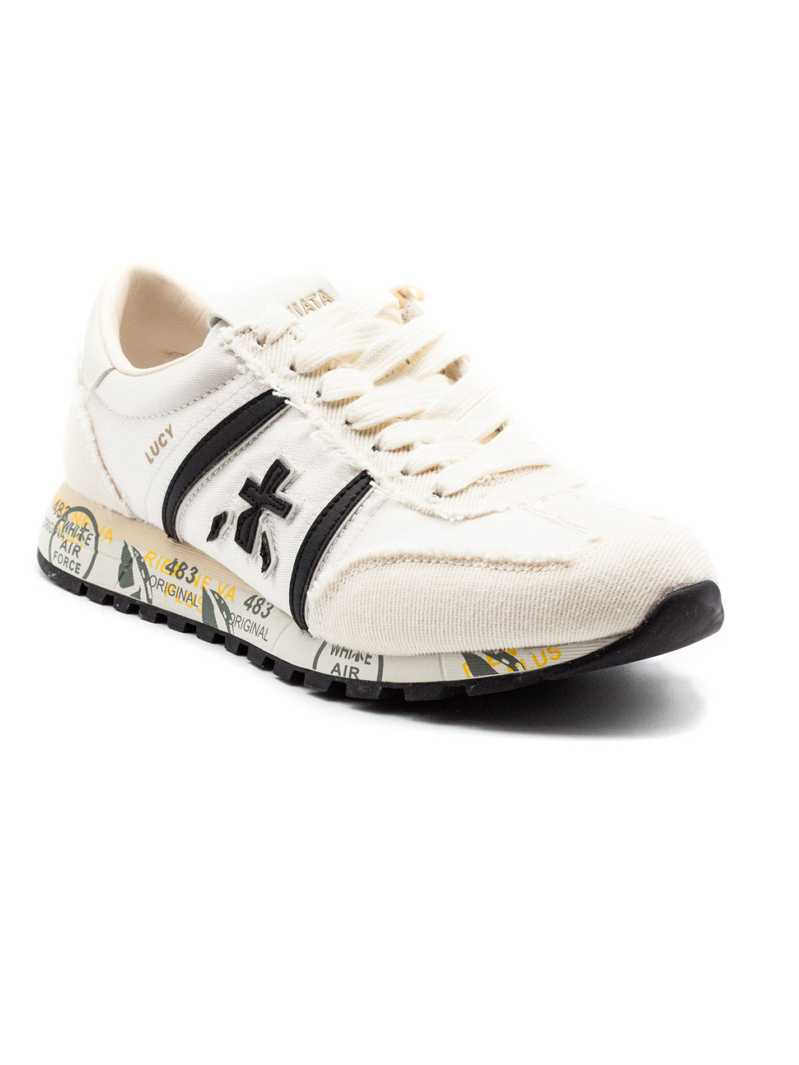 Sneakers Lucy in tessuto e cotone bianco con dettaglio logo laterale, chiusura frontale con lacci, imbottitura nella caviglia, soletta con logo, punta tonda, Altezza Suola 3 cm