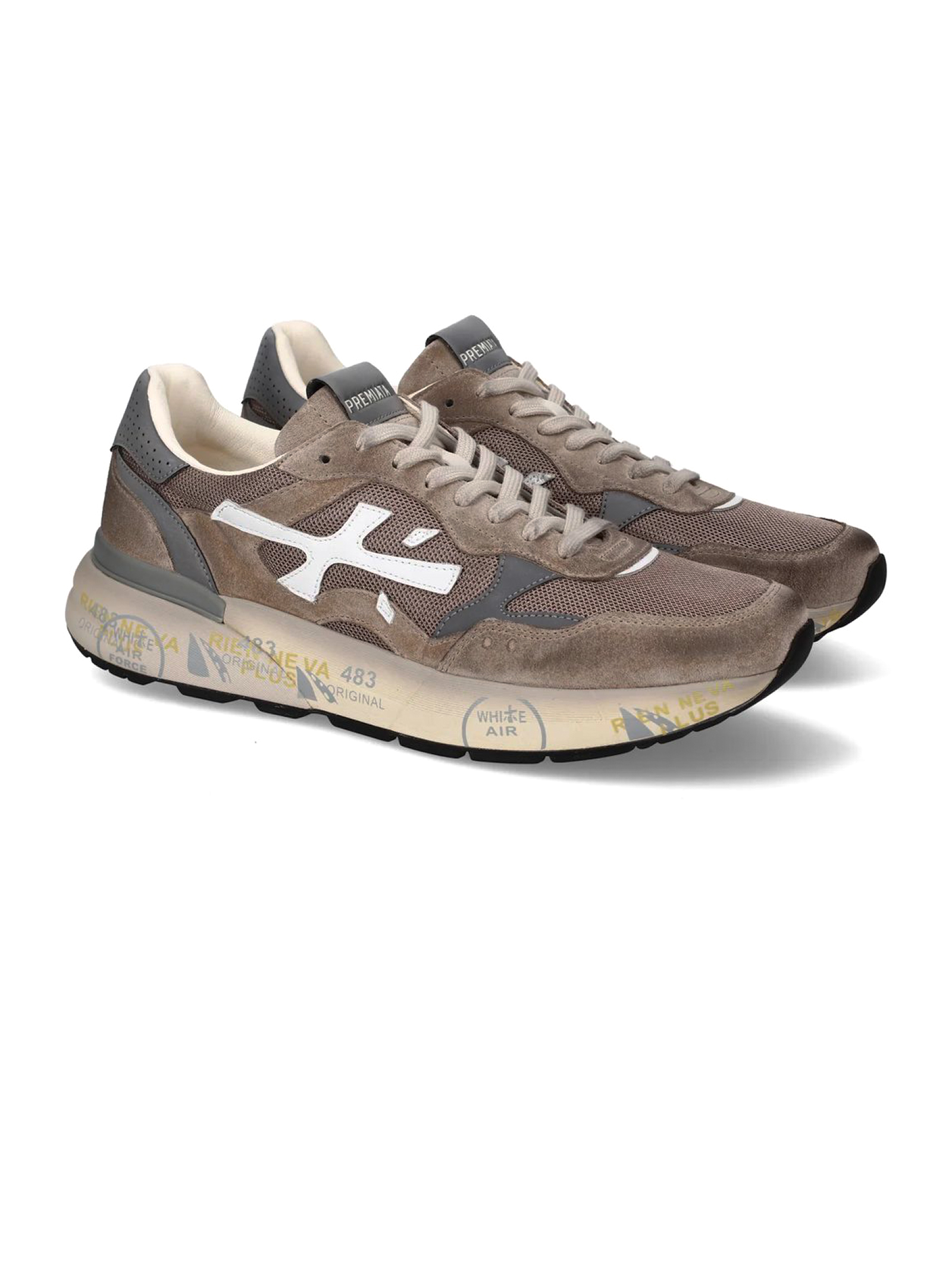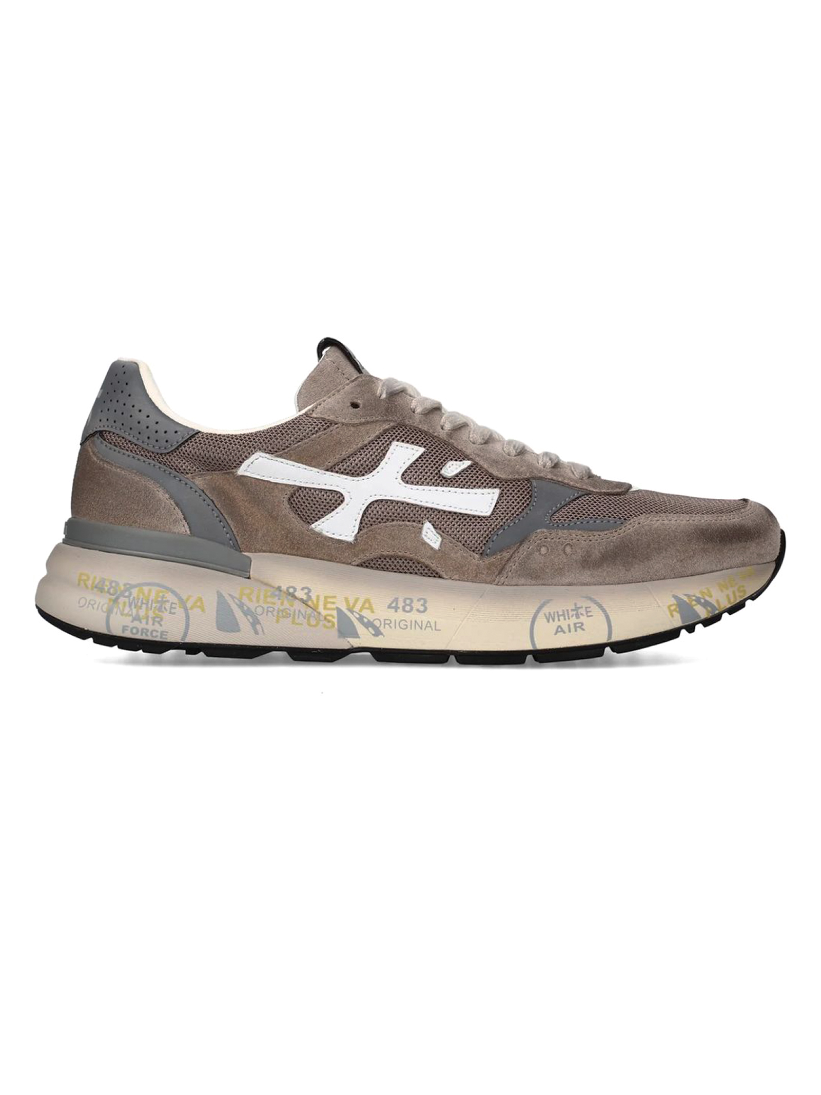 Sneakers Mick in camoscio e nylon marrone con chiusura frontale con lacci, rinforzo sul tallone a contrasto, linguetta con logo inciso, applicazione con logo, punta tonda, soletta con logo, fodera in pelle, suola chunky in gomma, altezza suola 4,2 cm