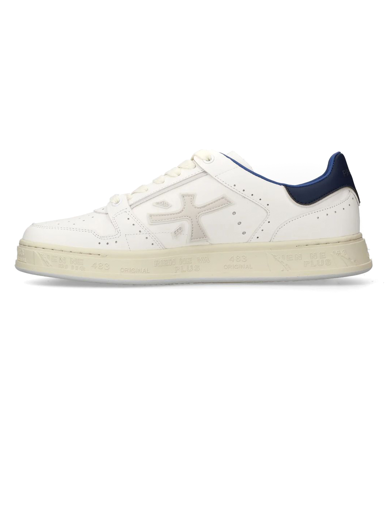Sneakers Quinn in pelle bianca con rinforzo sul tallone a contrasto, linguetta con logo inciso, applicazione con logo, punta tonda, soletta con logo, fodera in pelle, suola chunky in gomma, altezza suola 3 cm