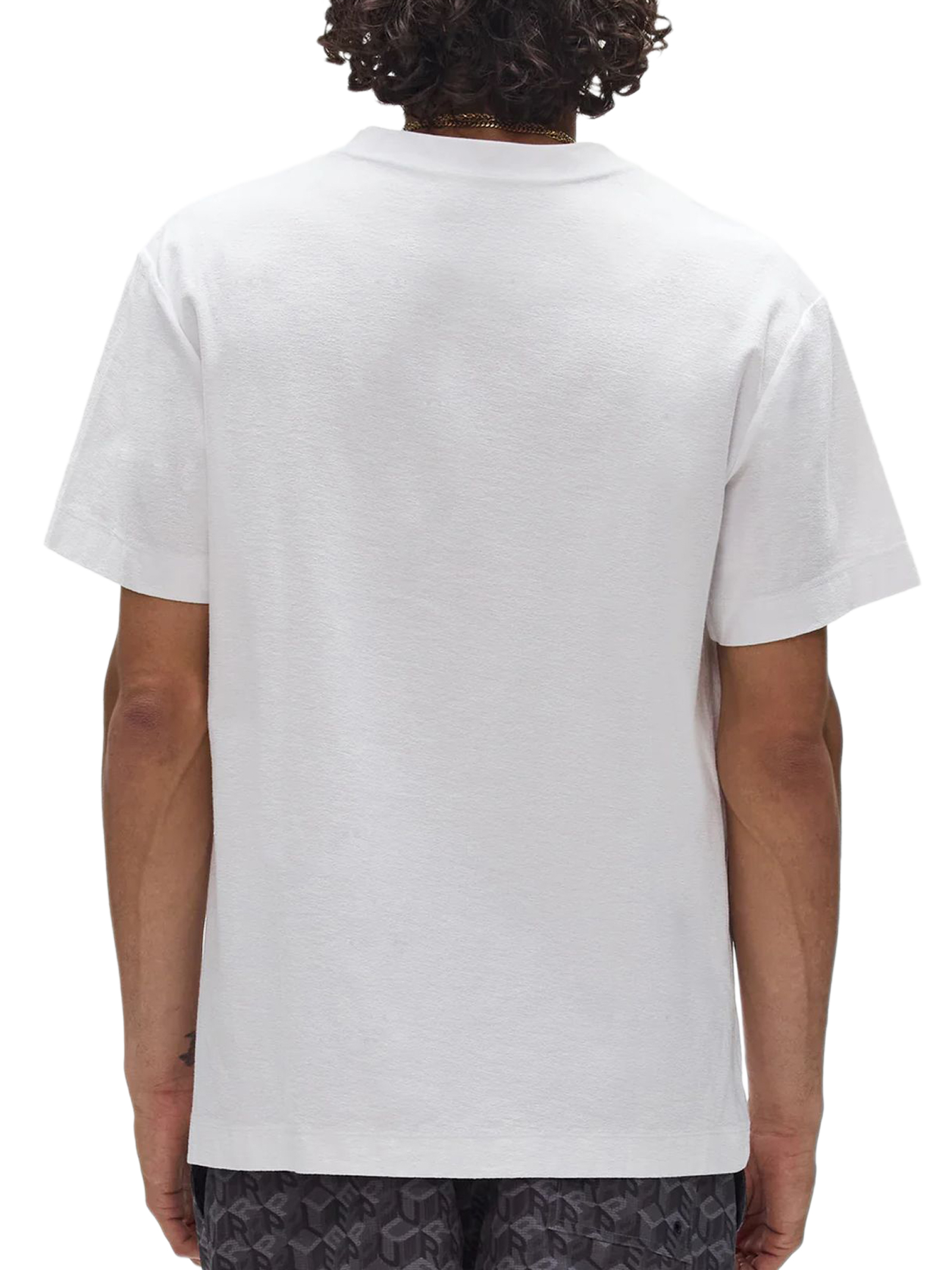 T-shirt in cotone bianco con grafica, girocollo, maniche corte, vestibilità regular