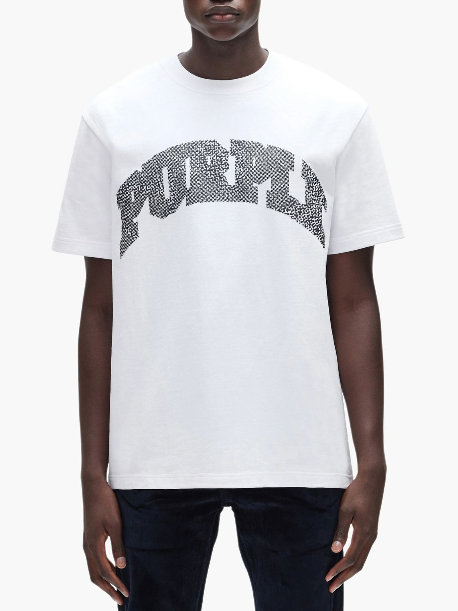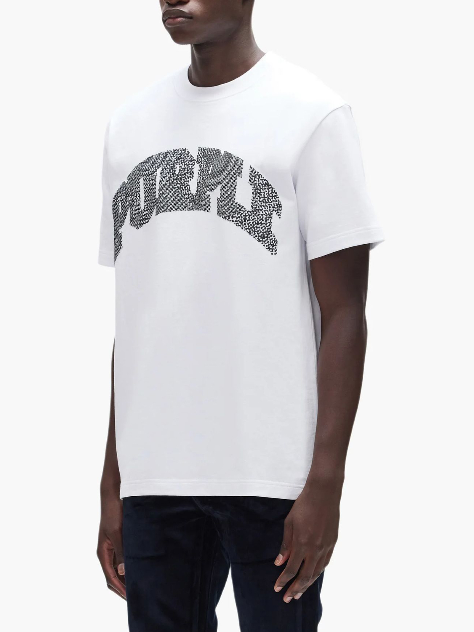 T-shirt in cotone bianco con grafica, girocollo, maniche corte, vestibilità regular