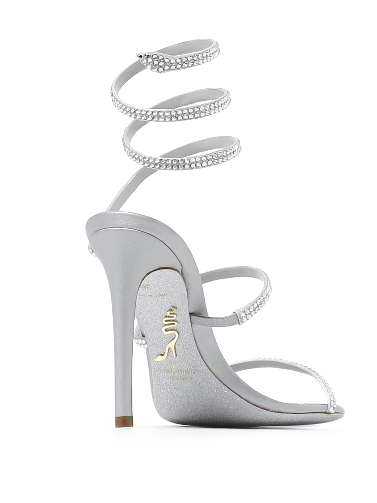 Sandalo Cleo Argento in Pelle, Dettaglio a testa di serpente, Tacco a stiletto 105 mm, Punta tonda, Suola polvere di stelle