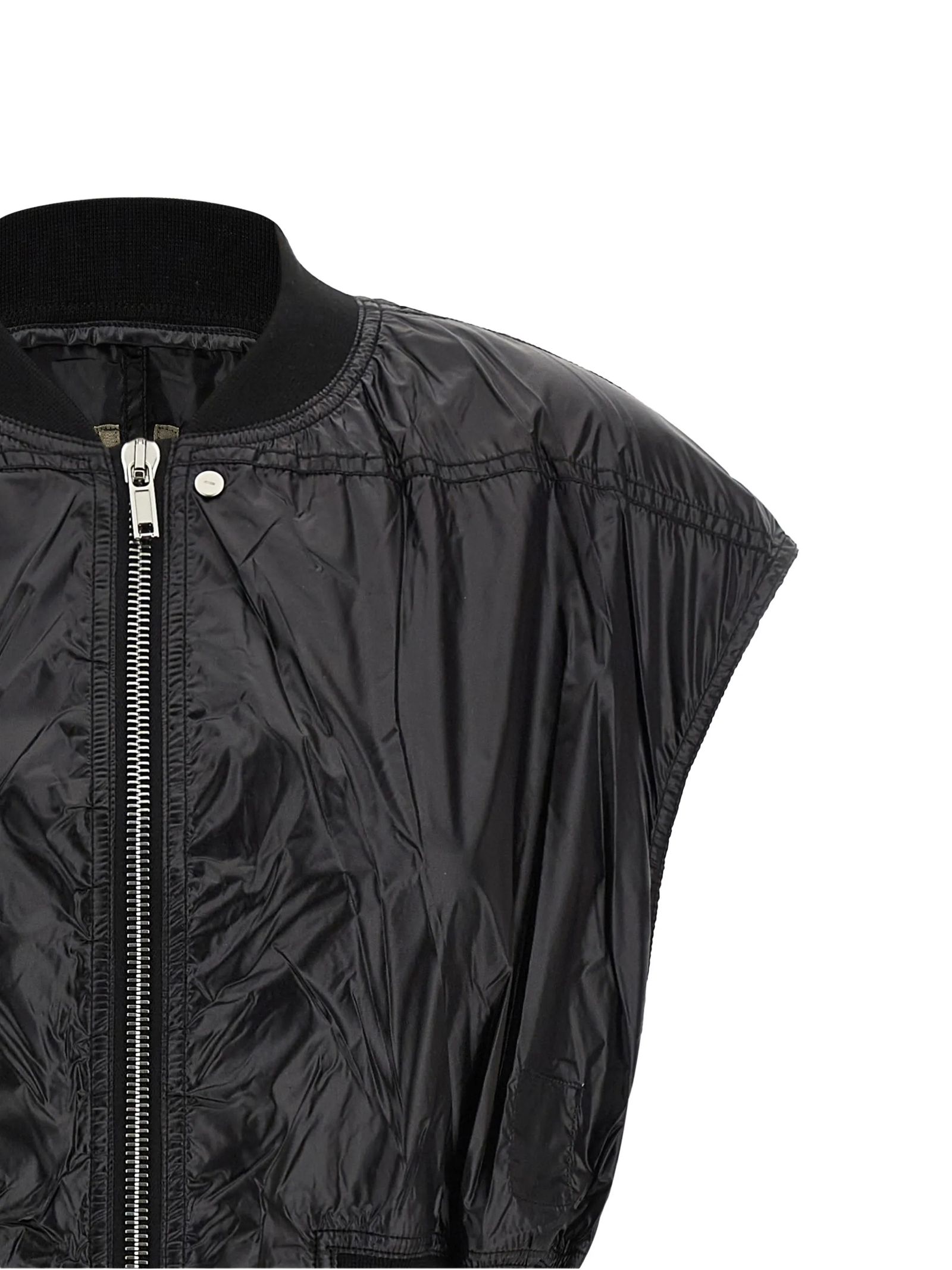 Gilet 'Tatlin Bomber' in tessuto sintetico leggero con inserti in maglia stretch a nido d'ape tono su tono, modello crop, chiusura zip frontale, collo alto, fascia su fondo capo
