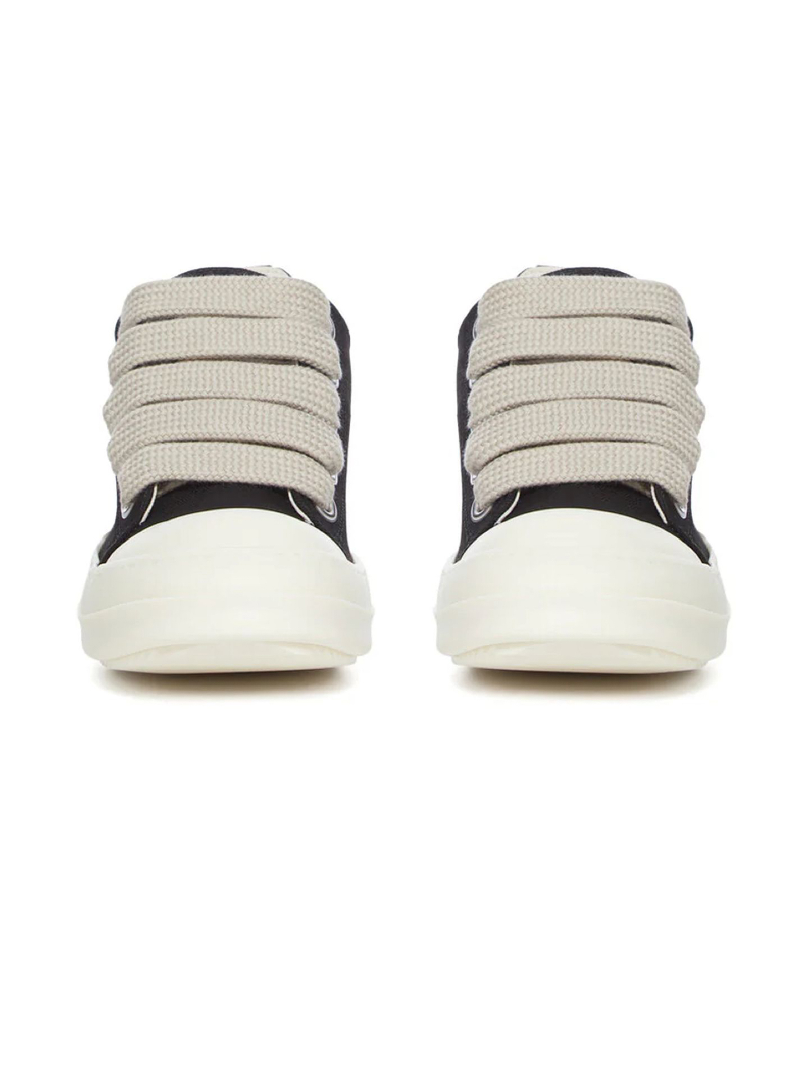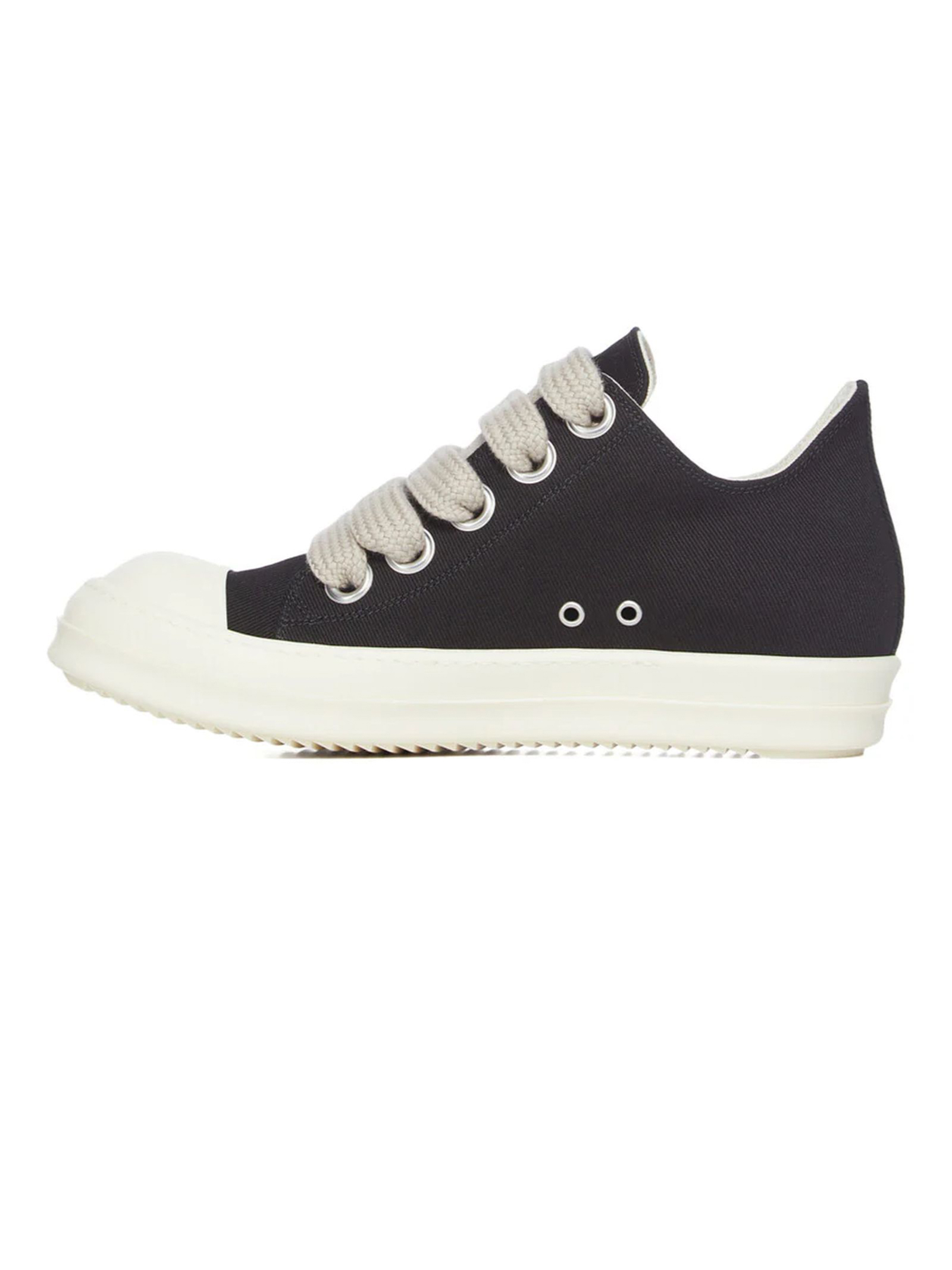 Sneakers Jumbolace in tela nera, dettagli con occhielli, chiusura con lacci, punta arrotondata, puntale a contrasto, altezza suola 3,5 cm.