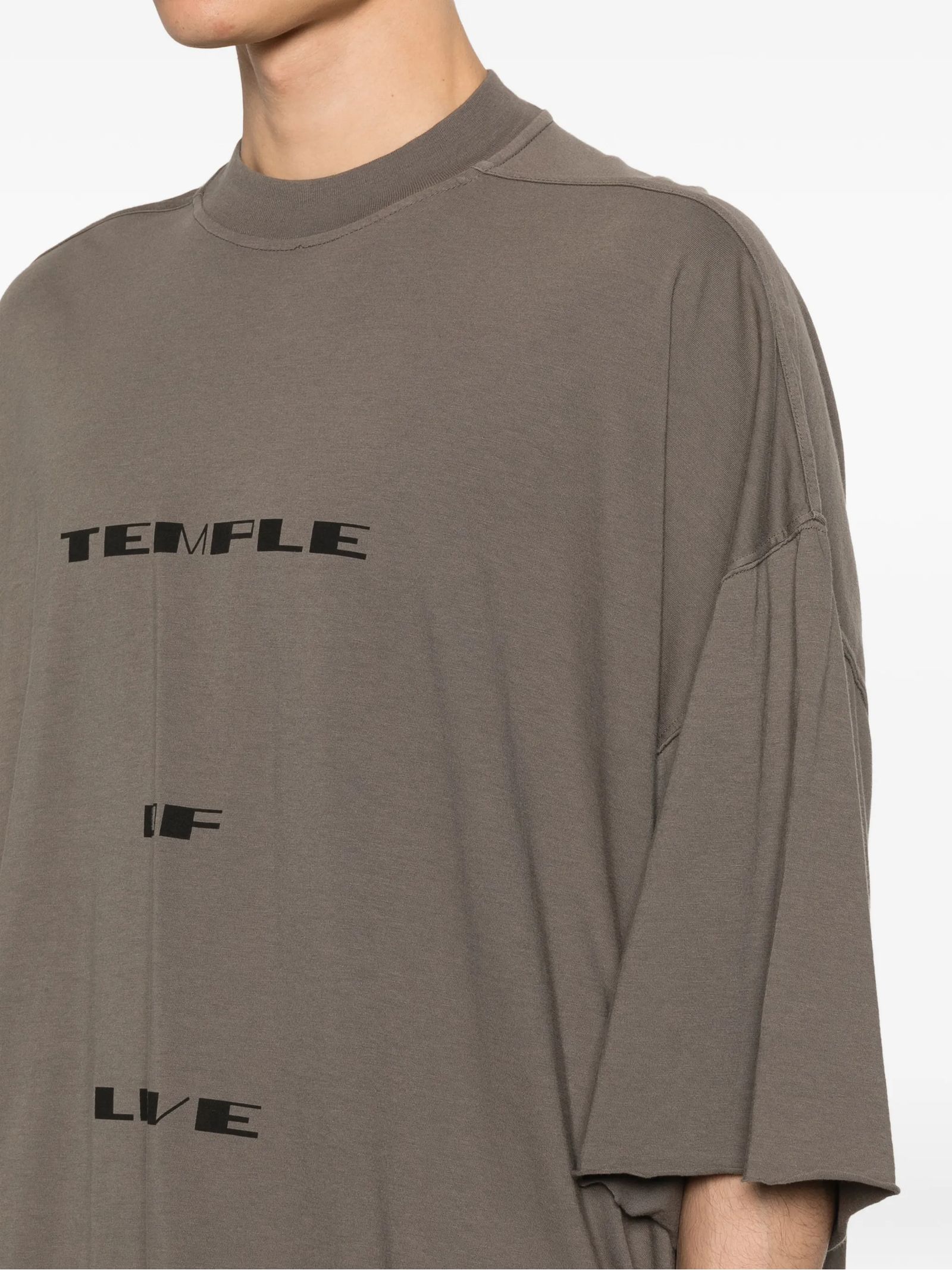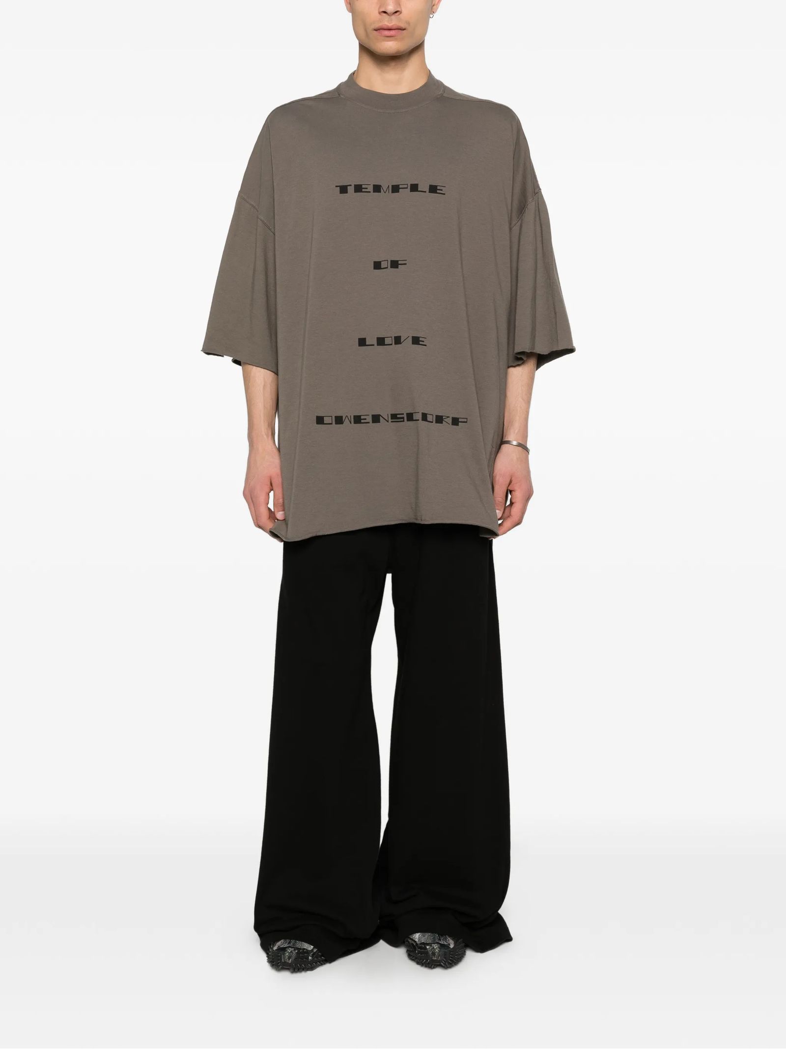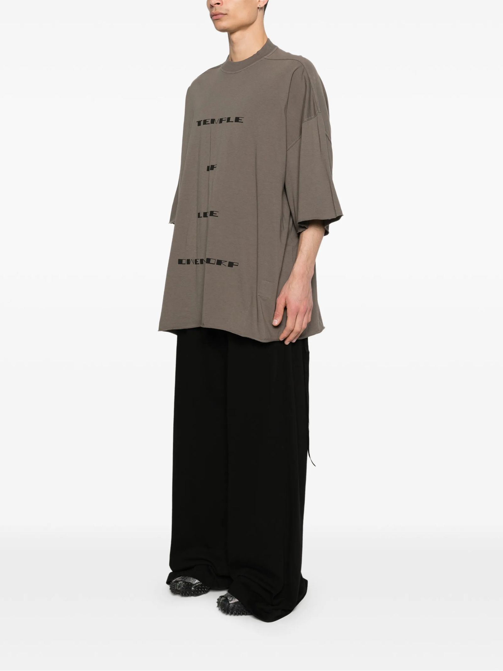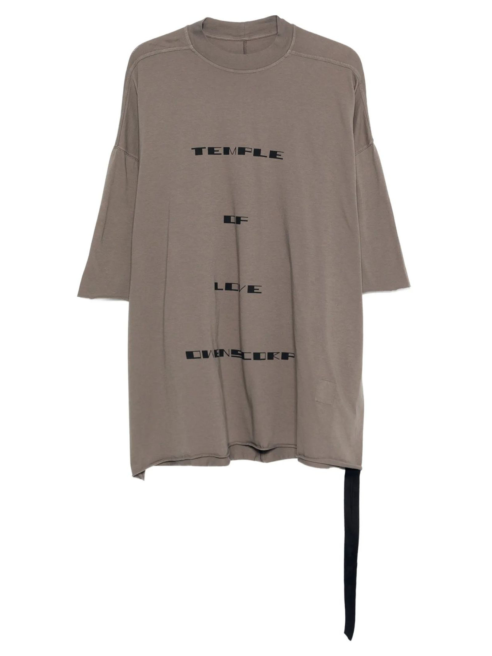 T-shirt in cotone color fango con stampa Tommy, maniche corte, lacci laterali e collo rotondo