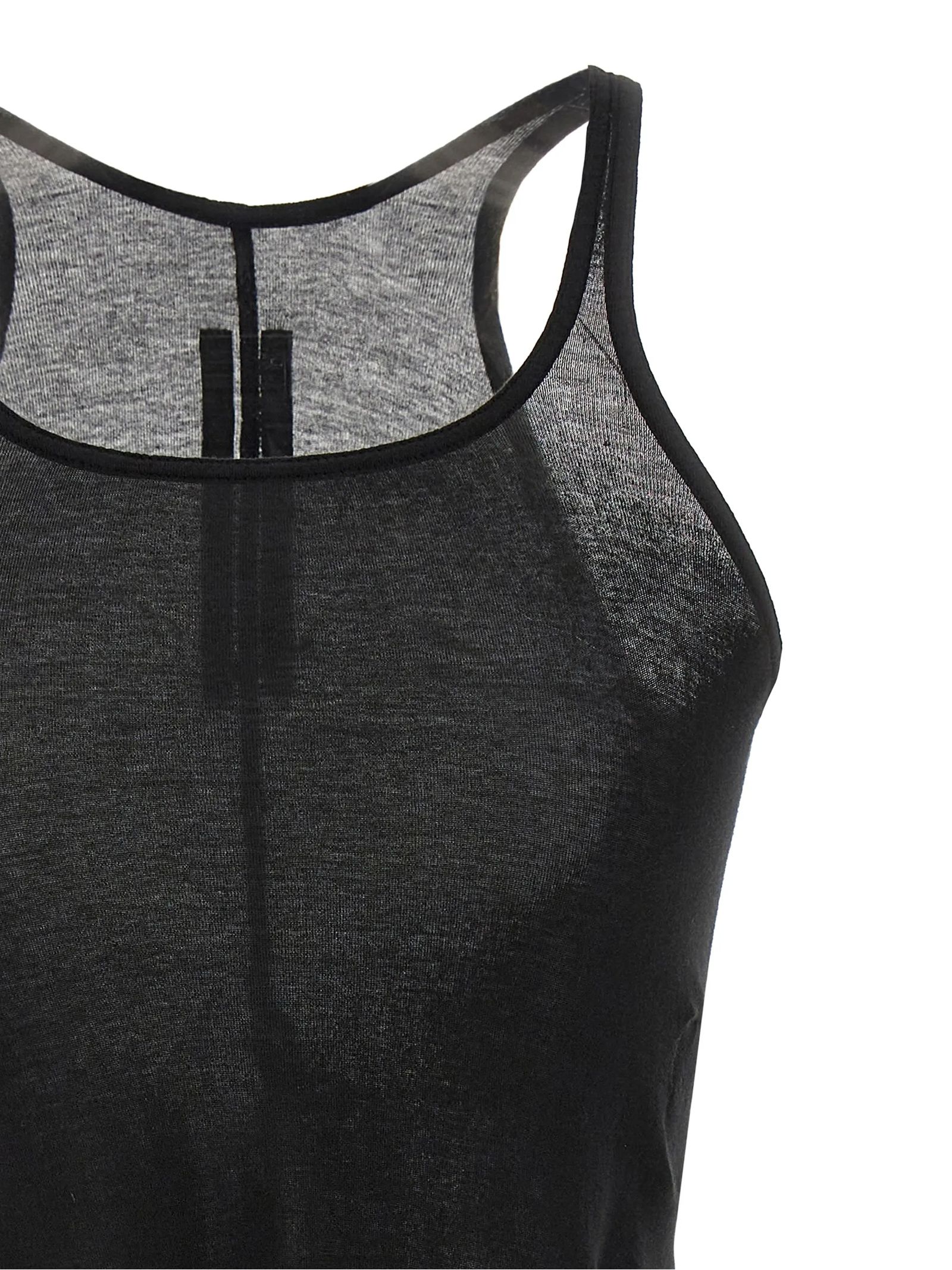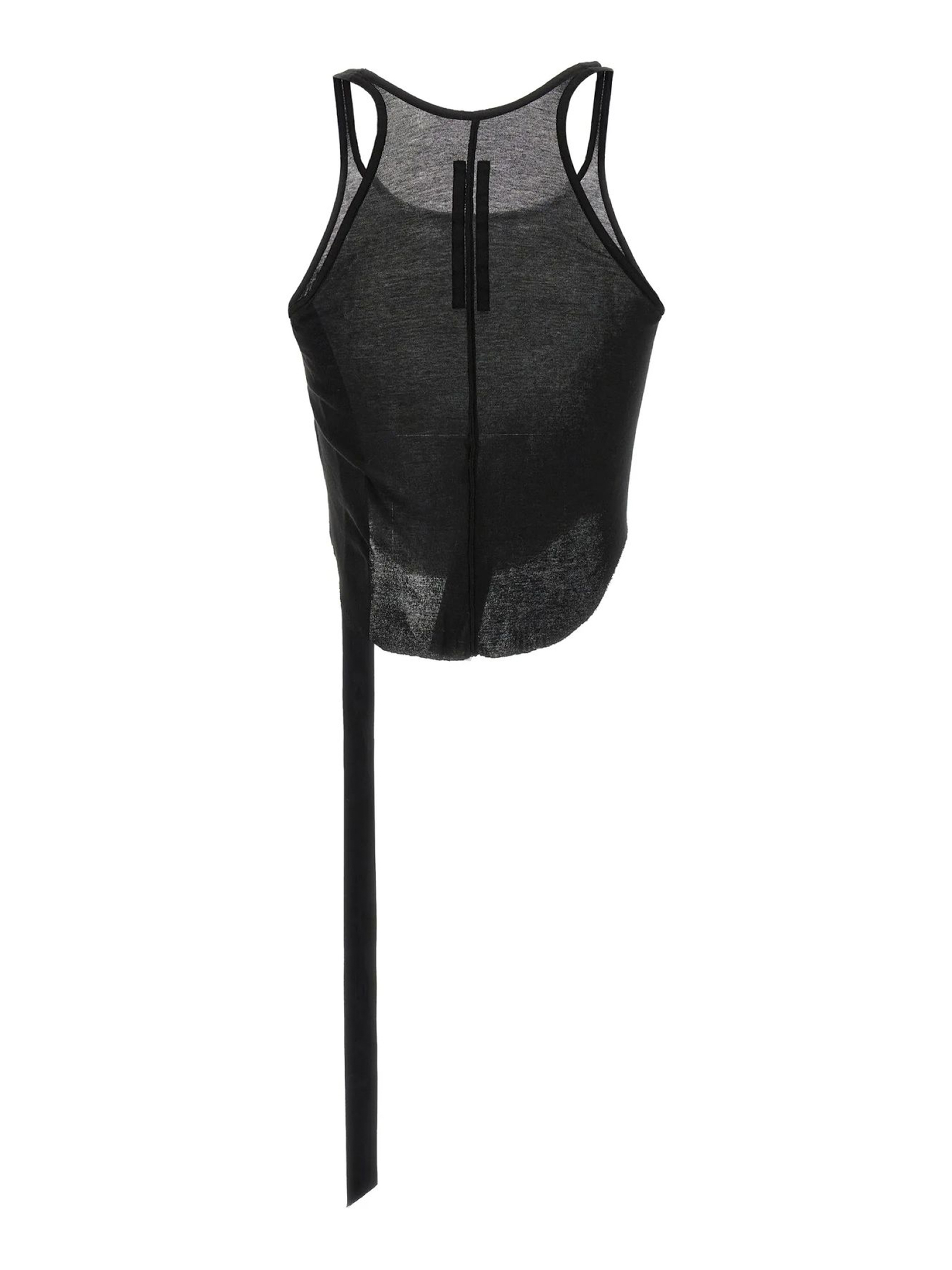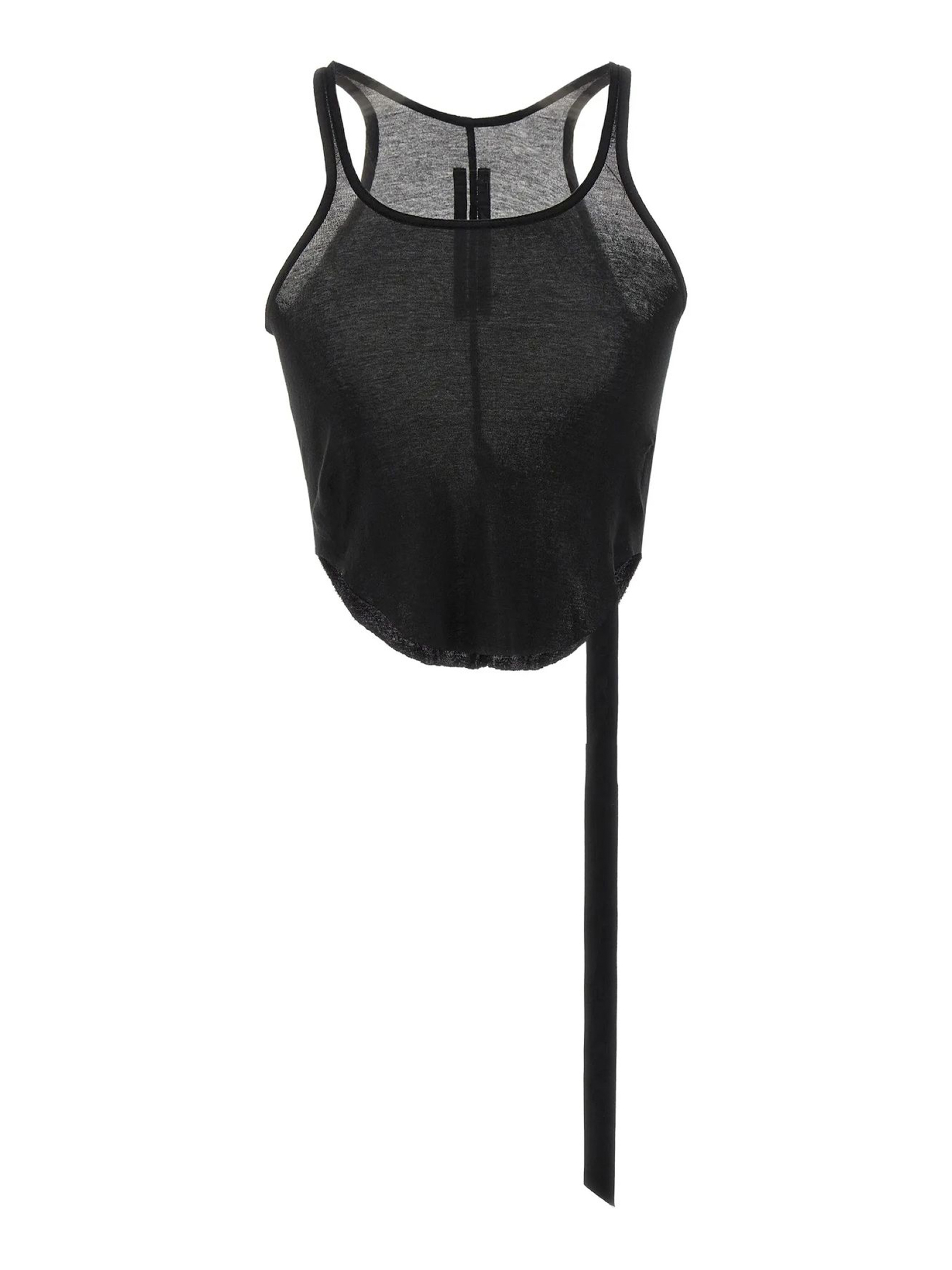 Tank top 'Basic' in cotone semitrasparente, modello crop, orlo a taglio vivo, scollo tondo