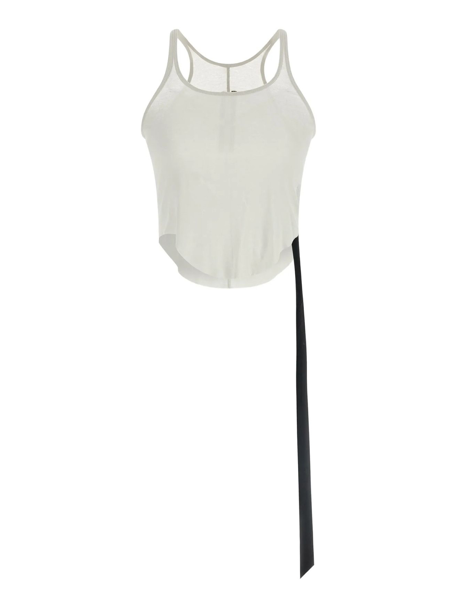 Tank top 'Basic' in cotone semitrasparente, modello crop, orlo a taglio vivo, scollo tondo