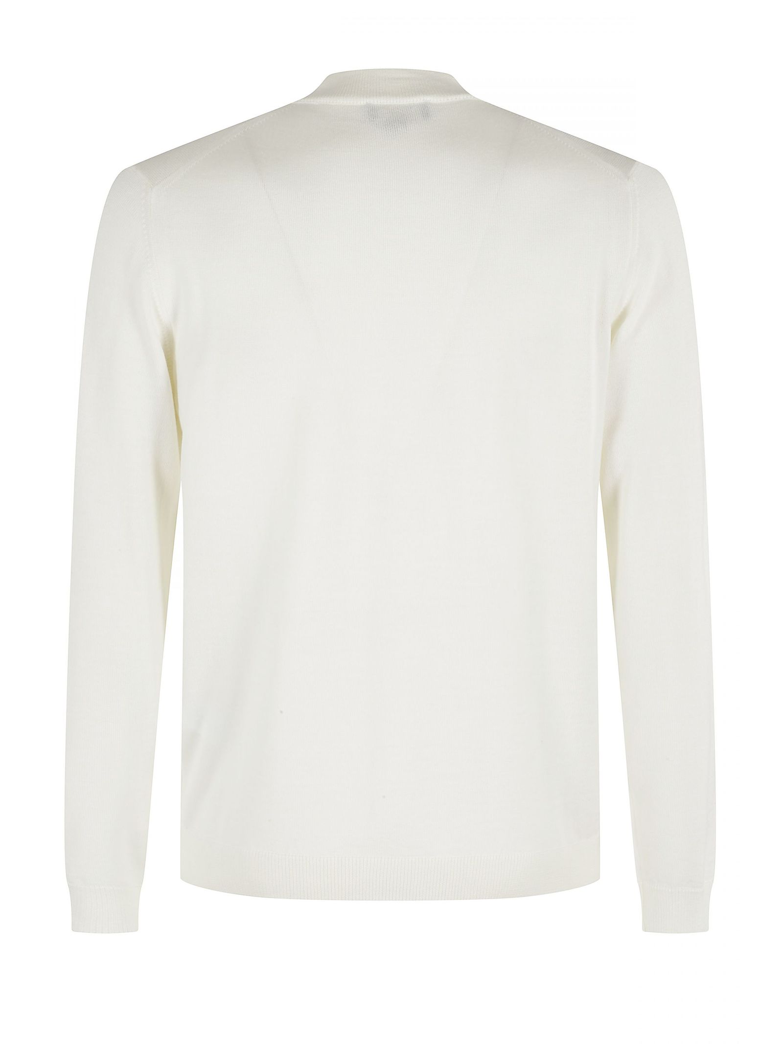 Maglia in lana merino bianco ecru con mezzo collo, maniche lunghe, finiture a costine