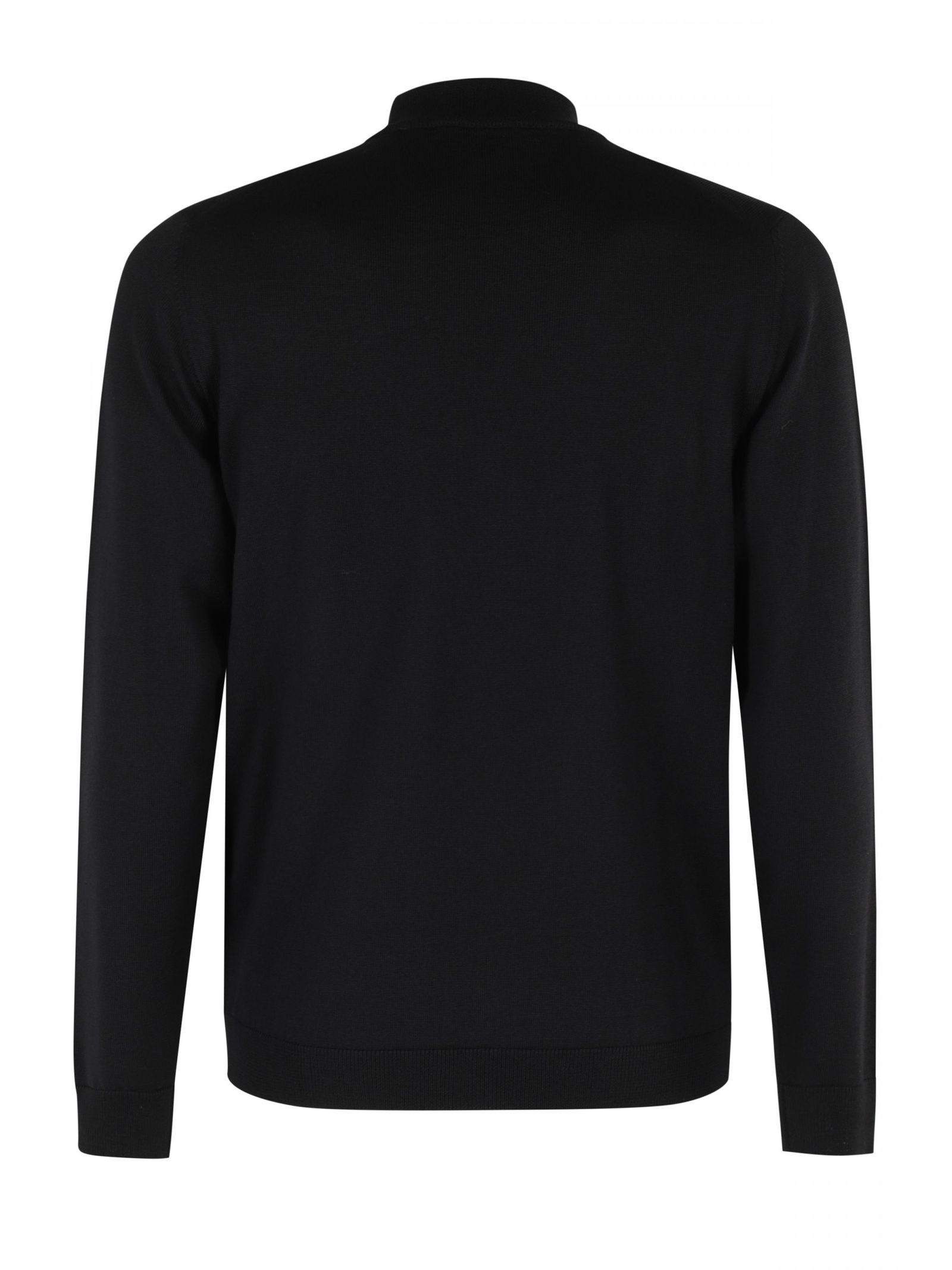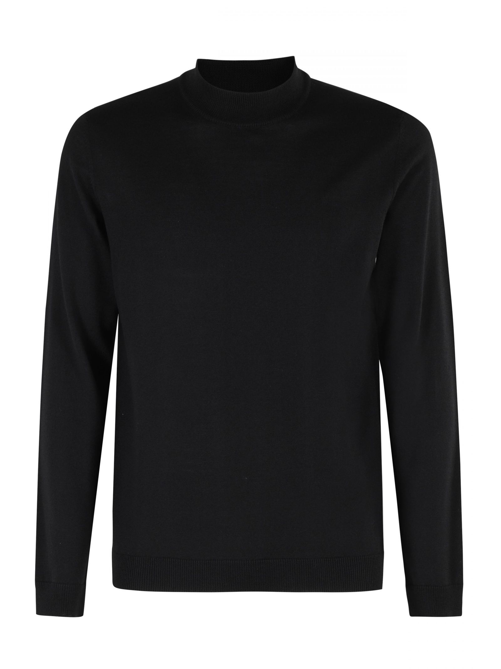 Maglia in lana merino nero con mezzo collo, maniche lunghe, finiture a costine