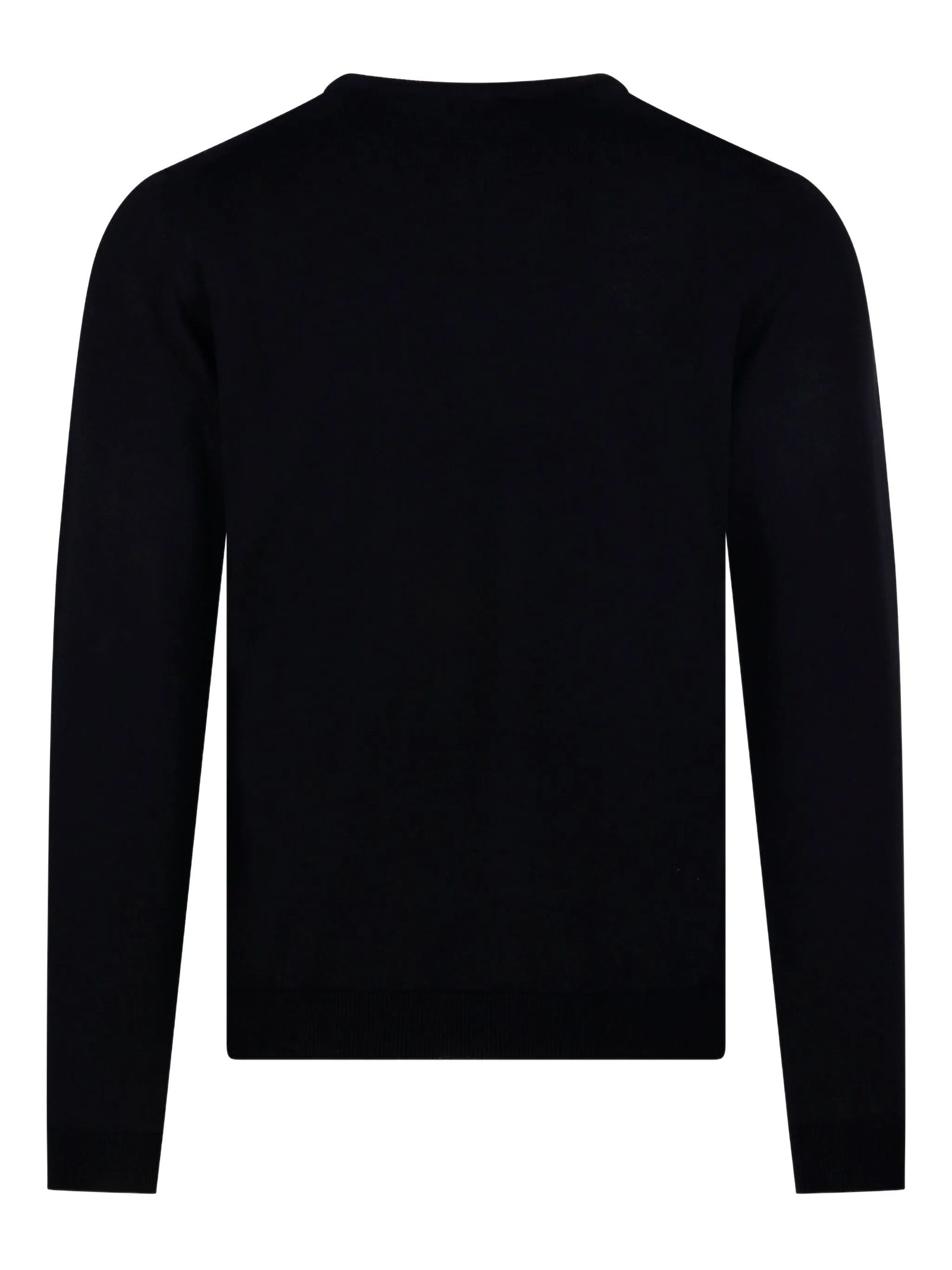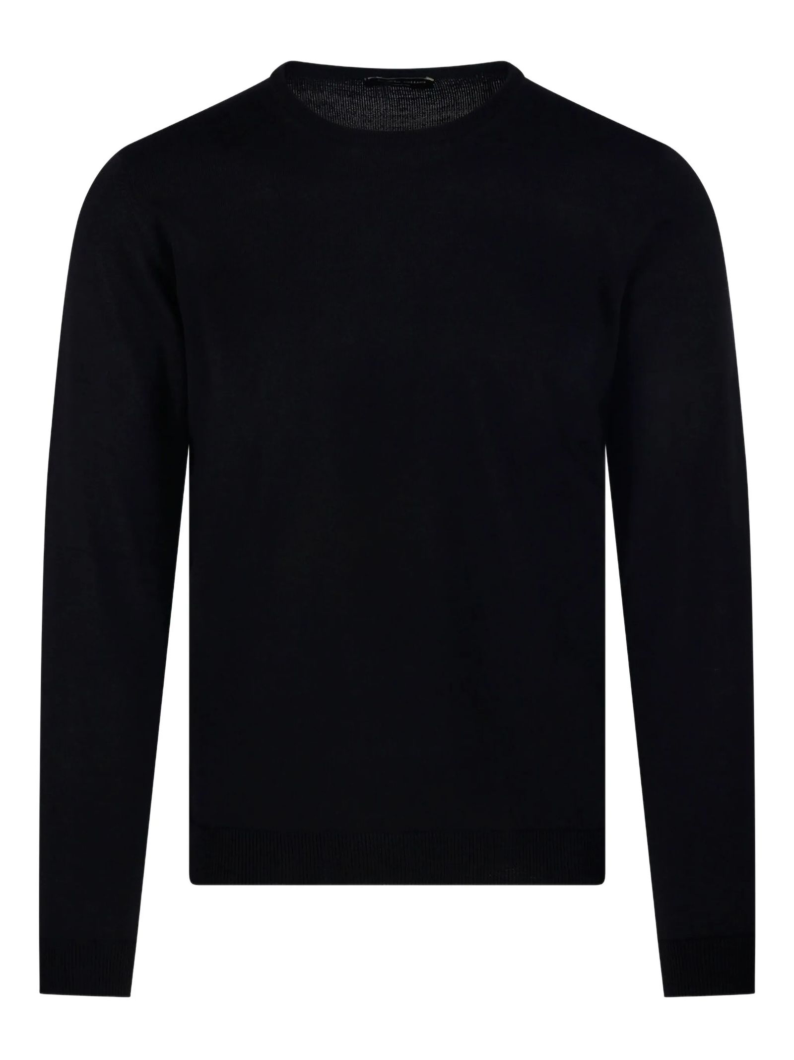 Maglione in lana merino extrafine nero con girocollo, maniche lunghe, polsini a coste, orlo a coste