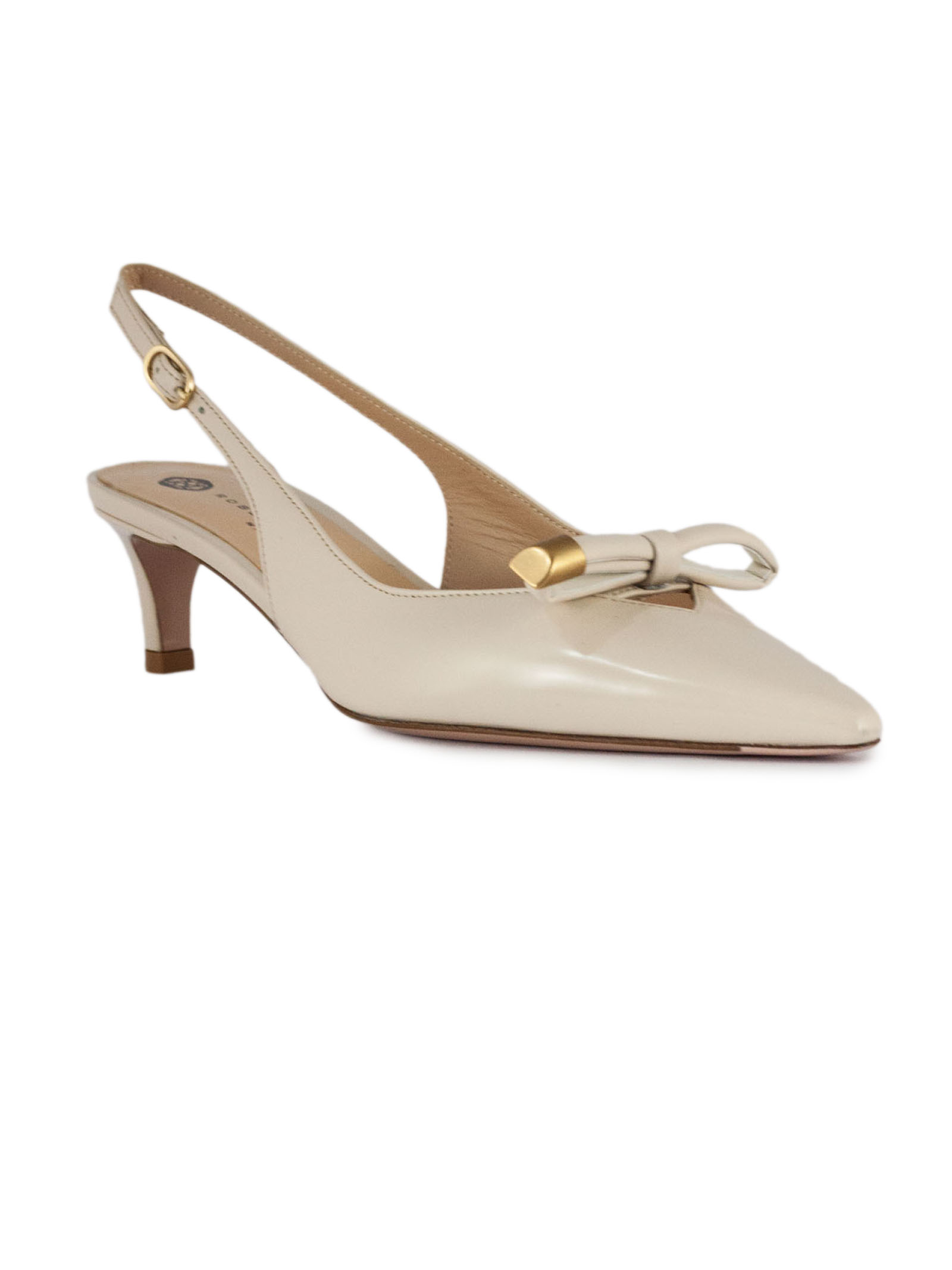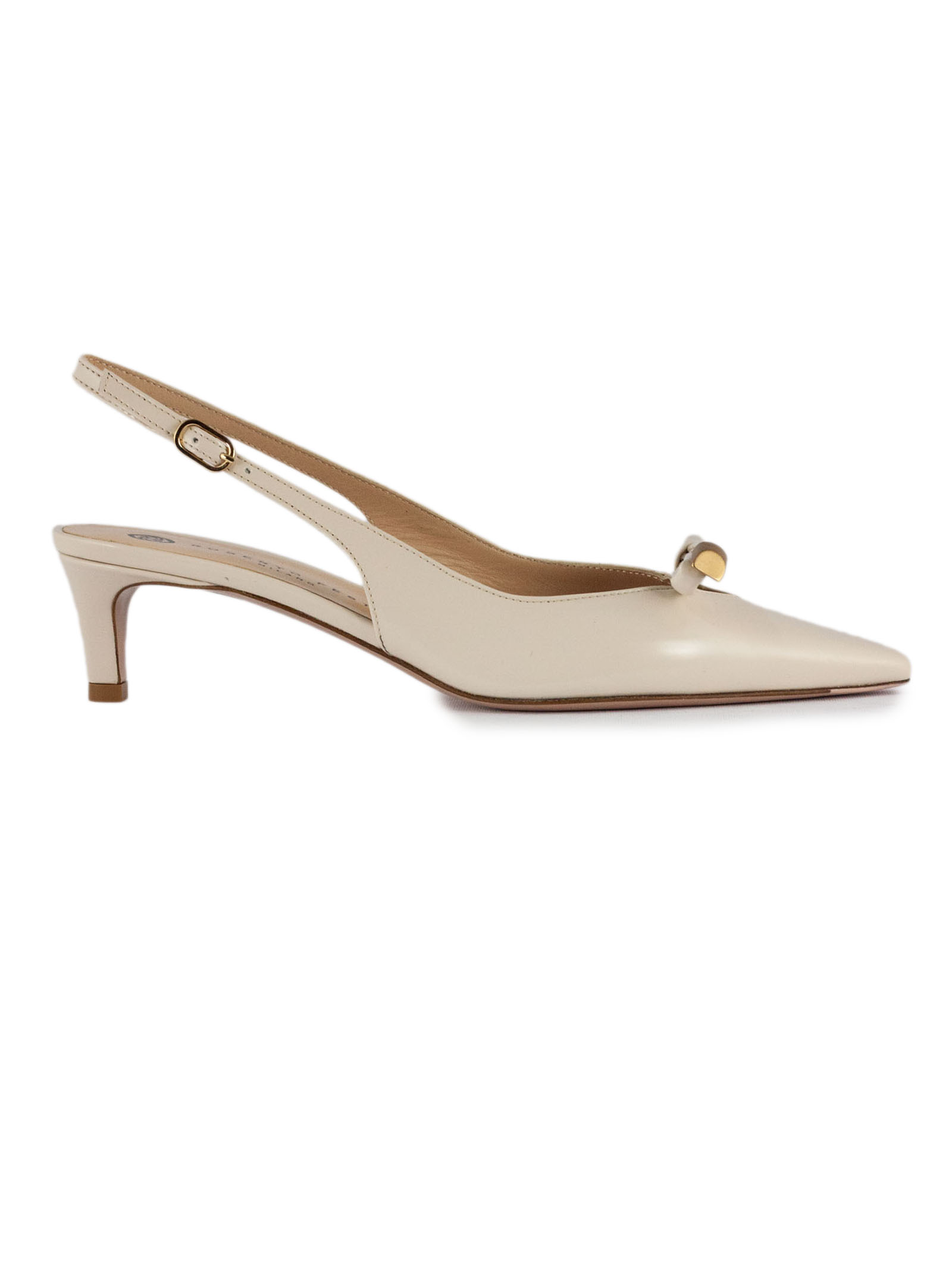 Slingback Senyal in pelle neutro con dettaglio fiocco, design a punta, chiusura fibbia regolabile in metallo coloro oro, suola in cuoio con logo, altezza tacco 5 cm