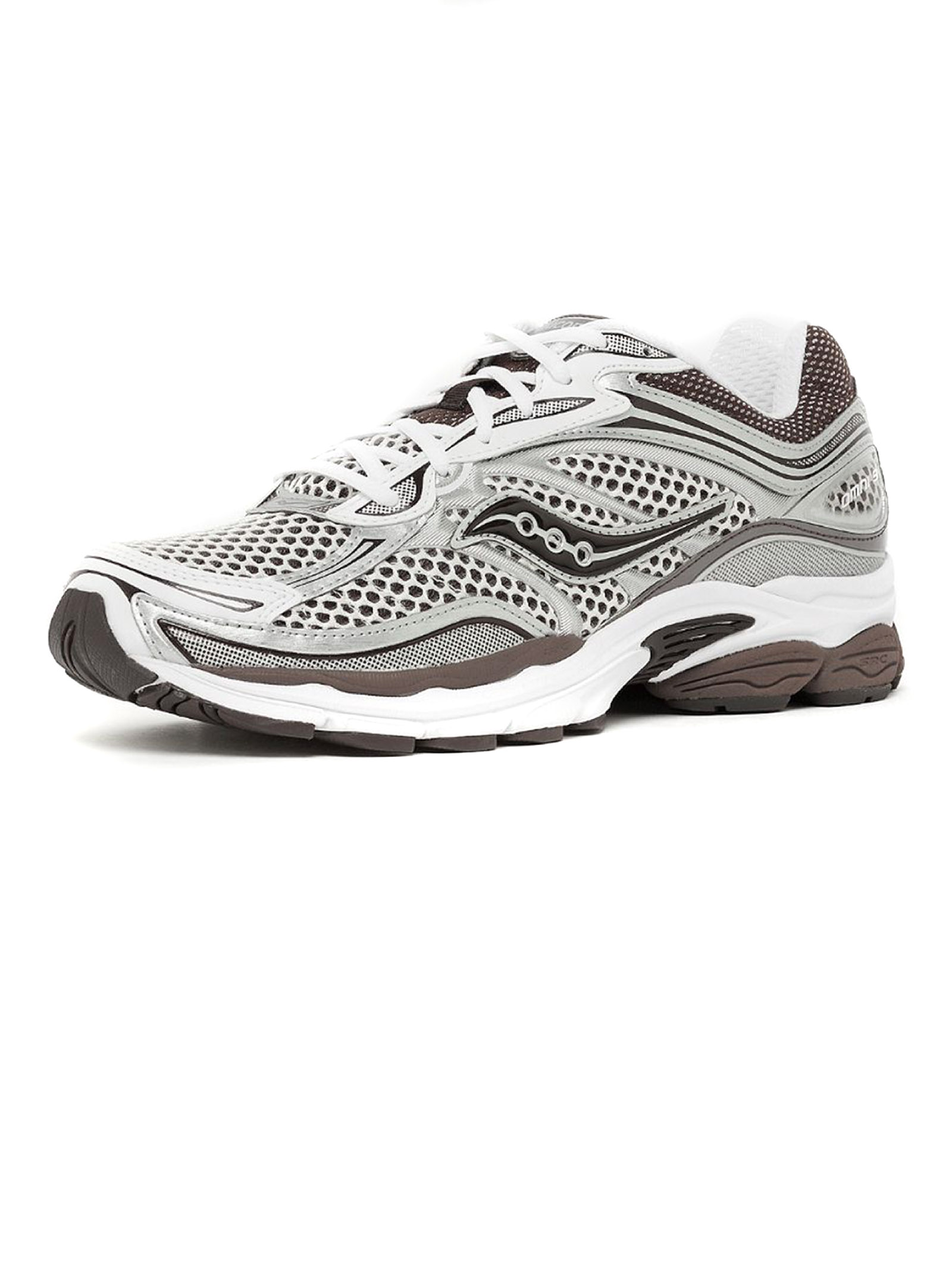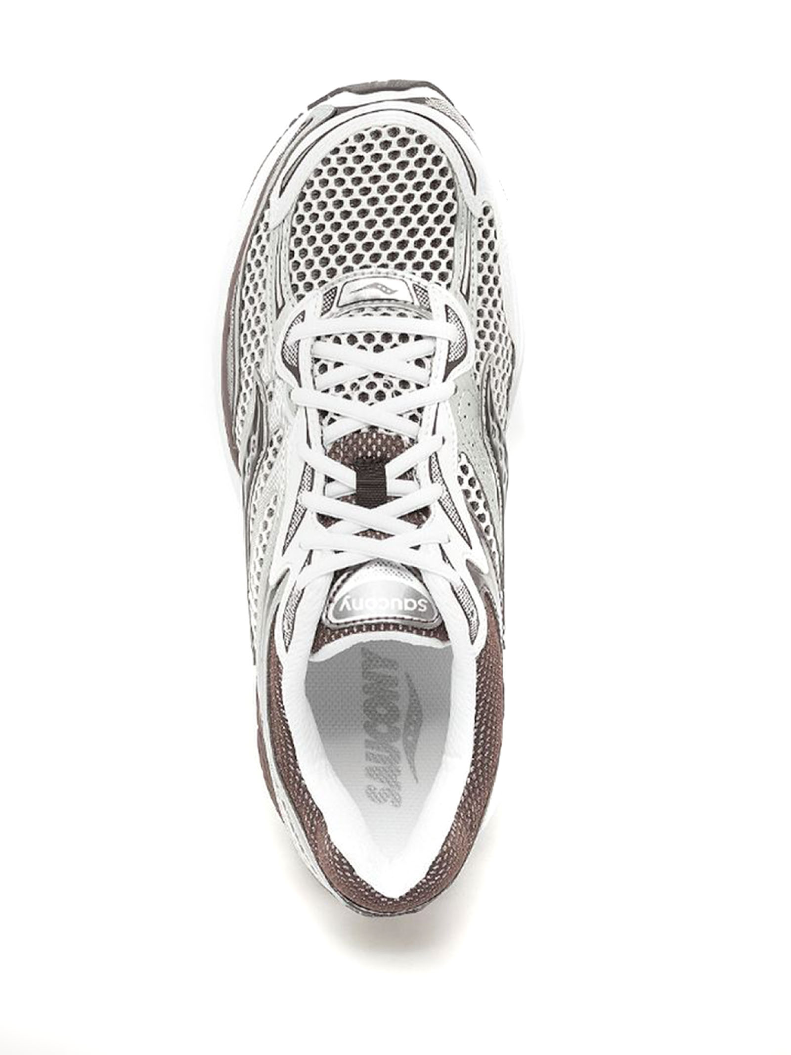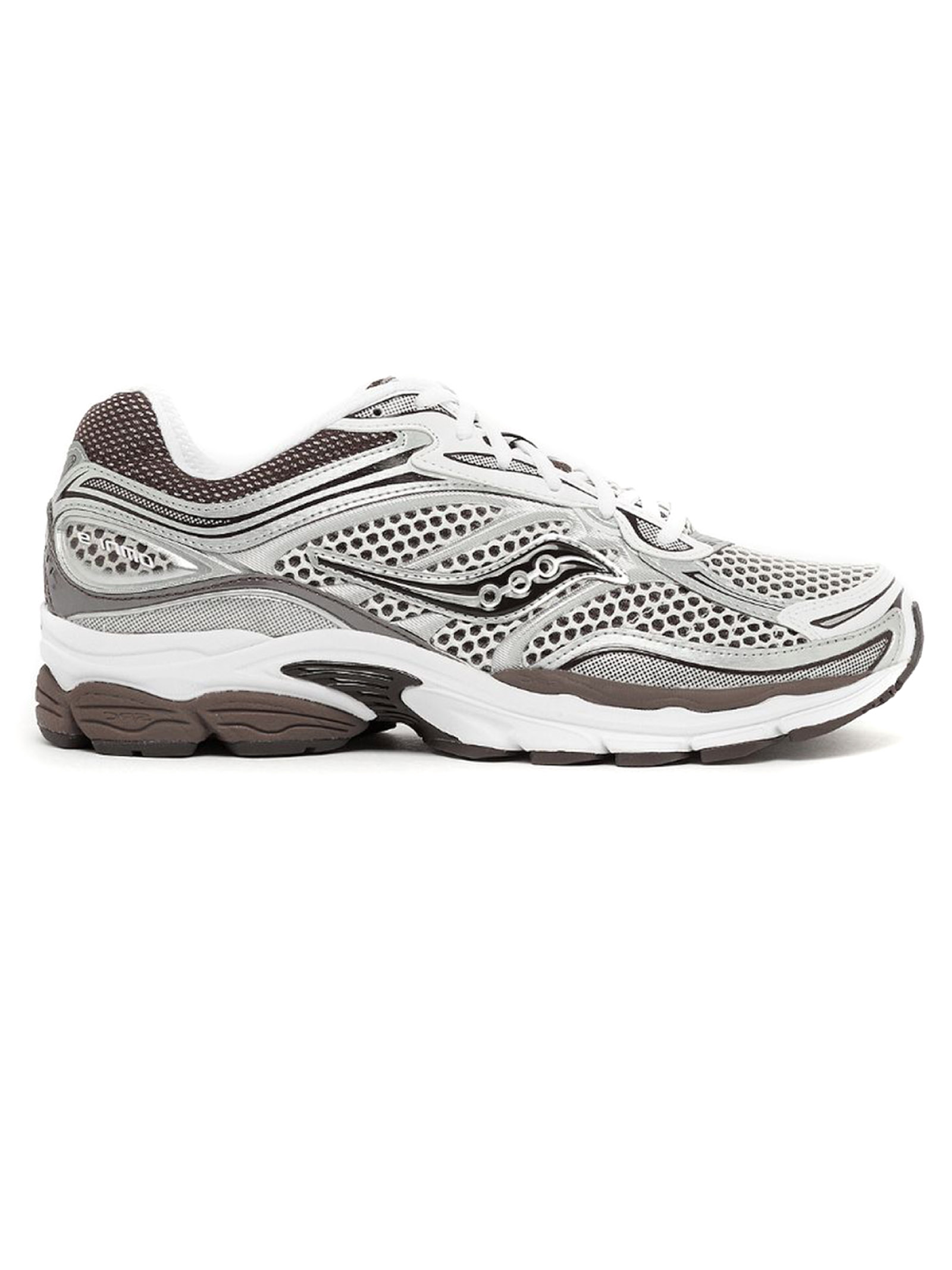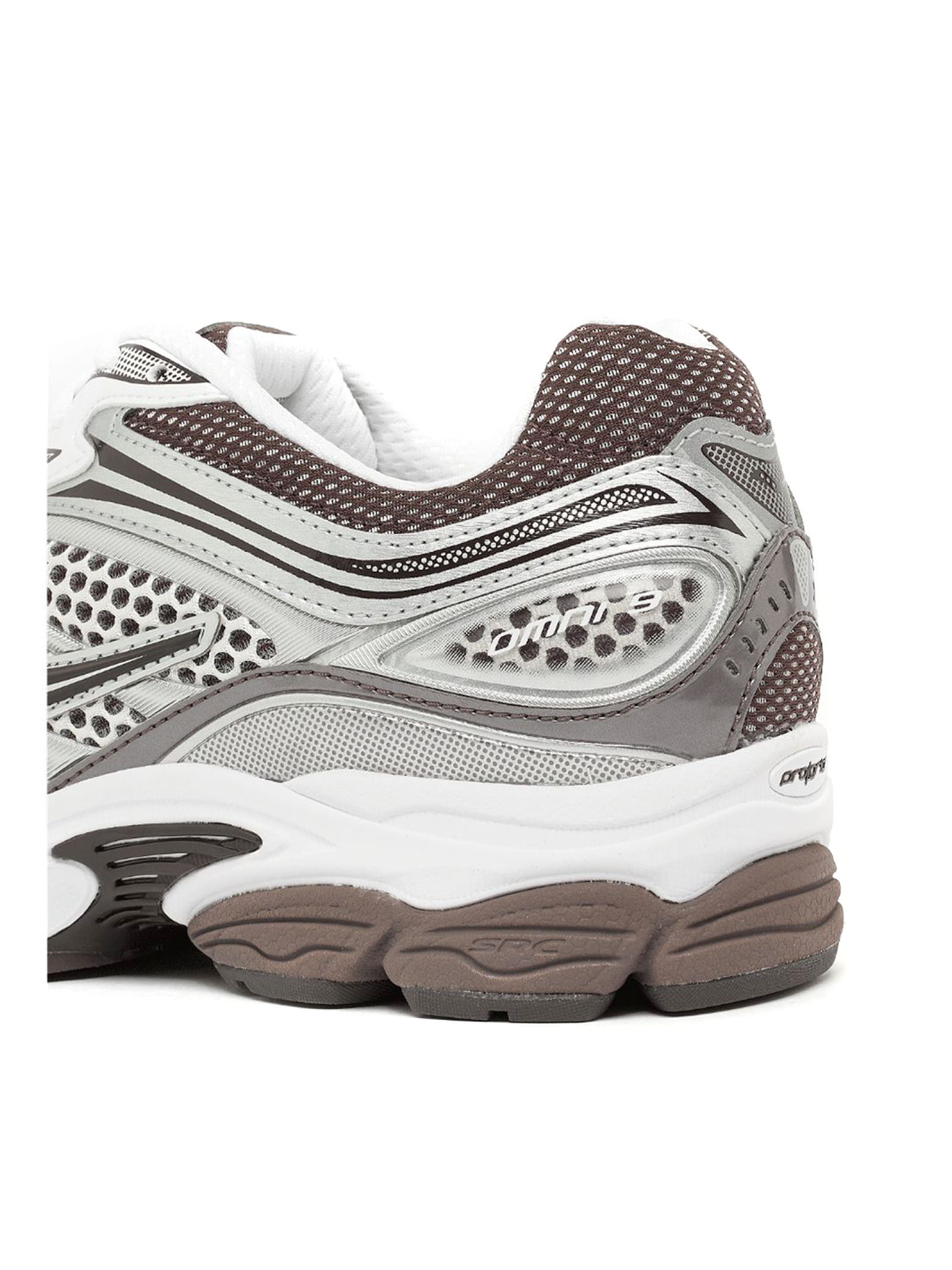 Sneakers Progrid Omni 9 bianco e marrone, design in rete, finitura in pelle cruelty-free, design con inserti color-block, punta tonda, applicazione sulla linguetta con logo, imbottitura nella caviglia, soletta rimovibile, suola chunky in gomma, chiusura frontale con lacci