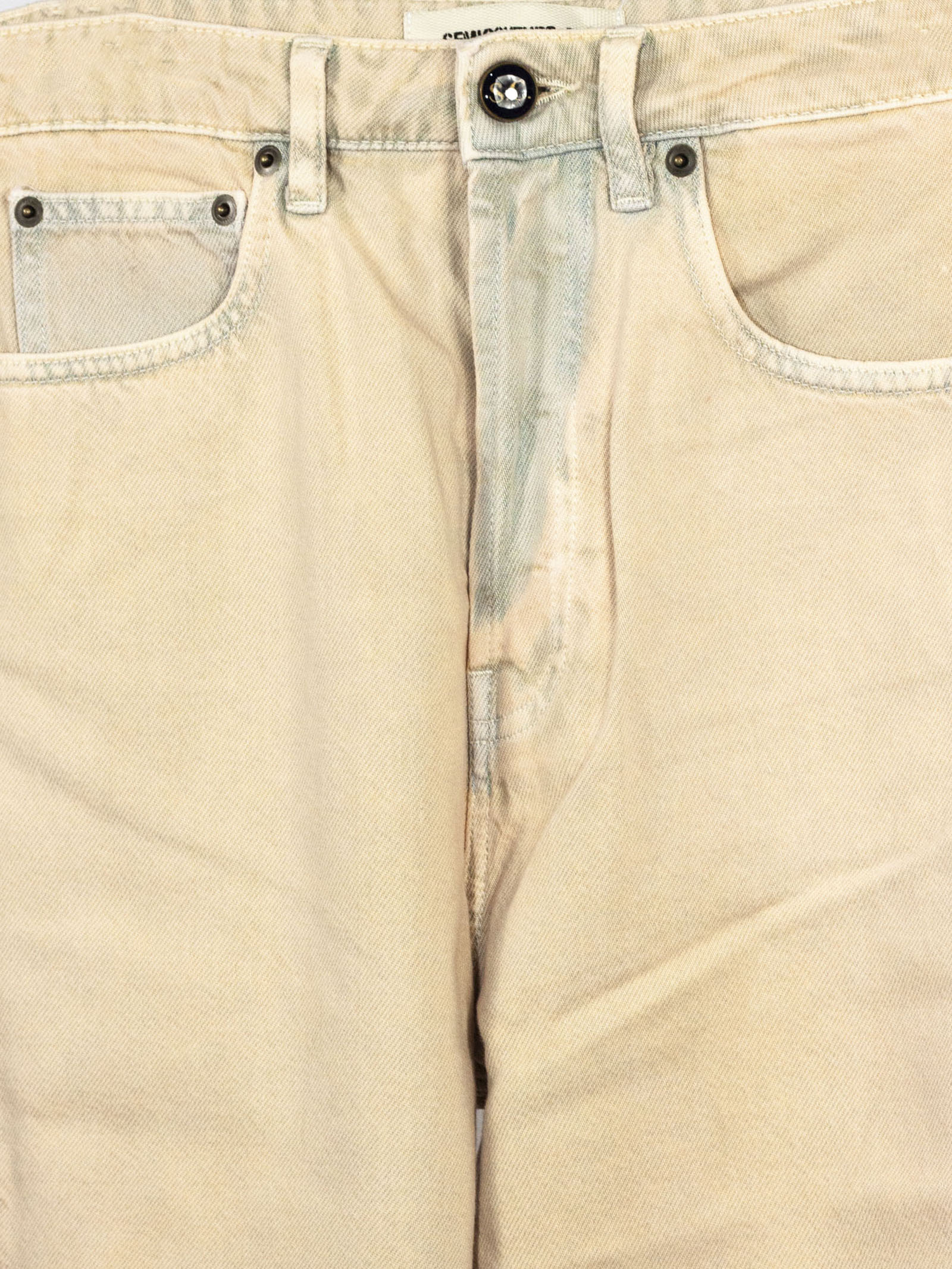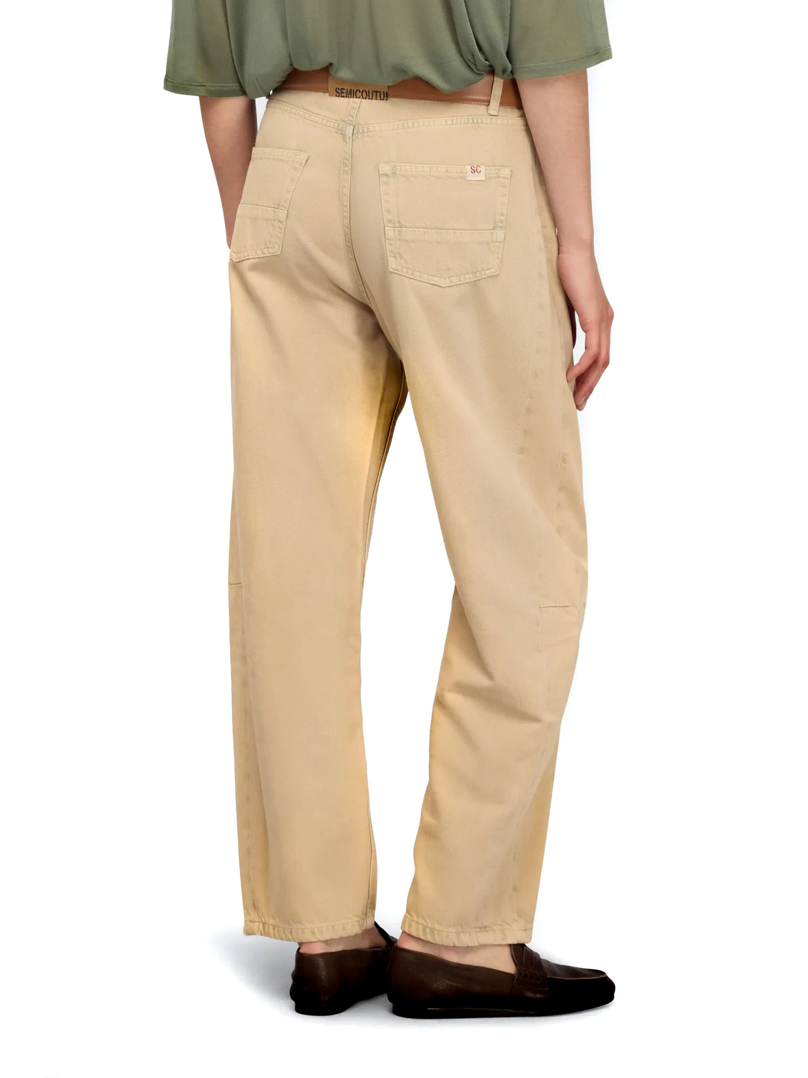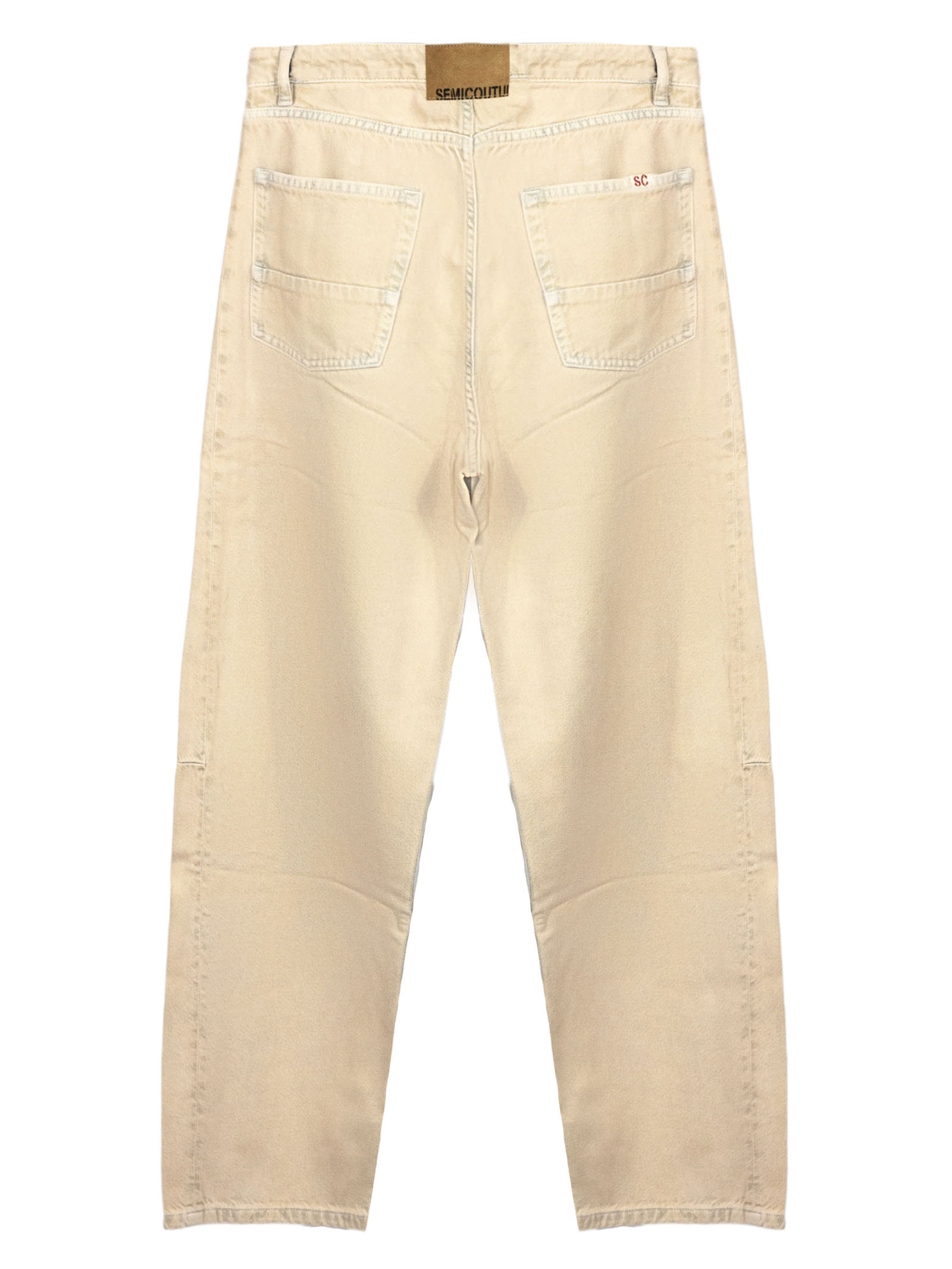 Jeans Cinque Tasche In Misto Cotone E Tencel Beige, Costruzione Gamba Arrotondata, Passanti Per La Cintura. Vestibilità Regular