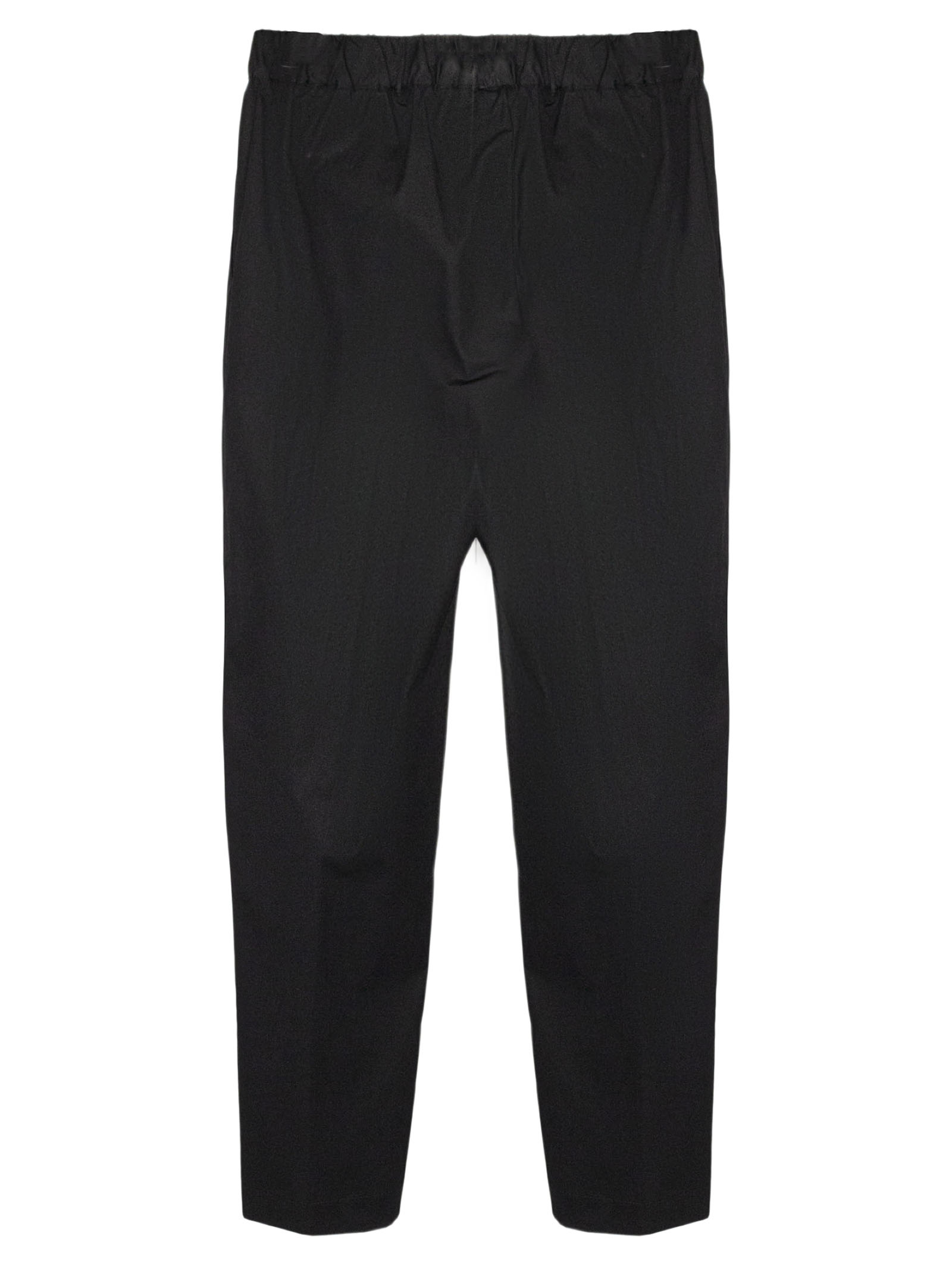 Pantalone in cotone nero con vita elasticizzata e coulisse, tasche laterali, vestibilità comoda