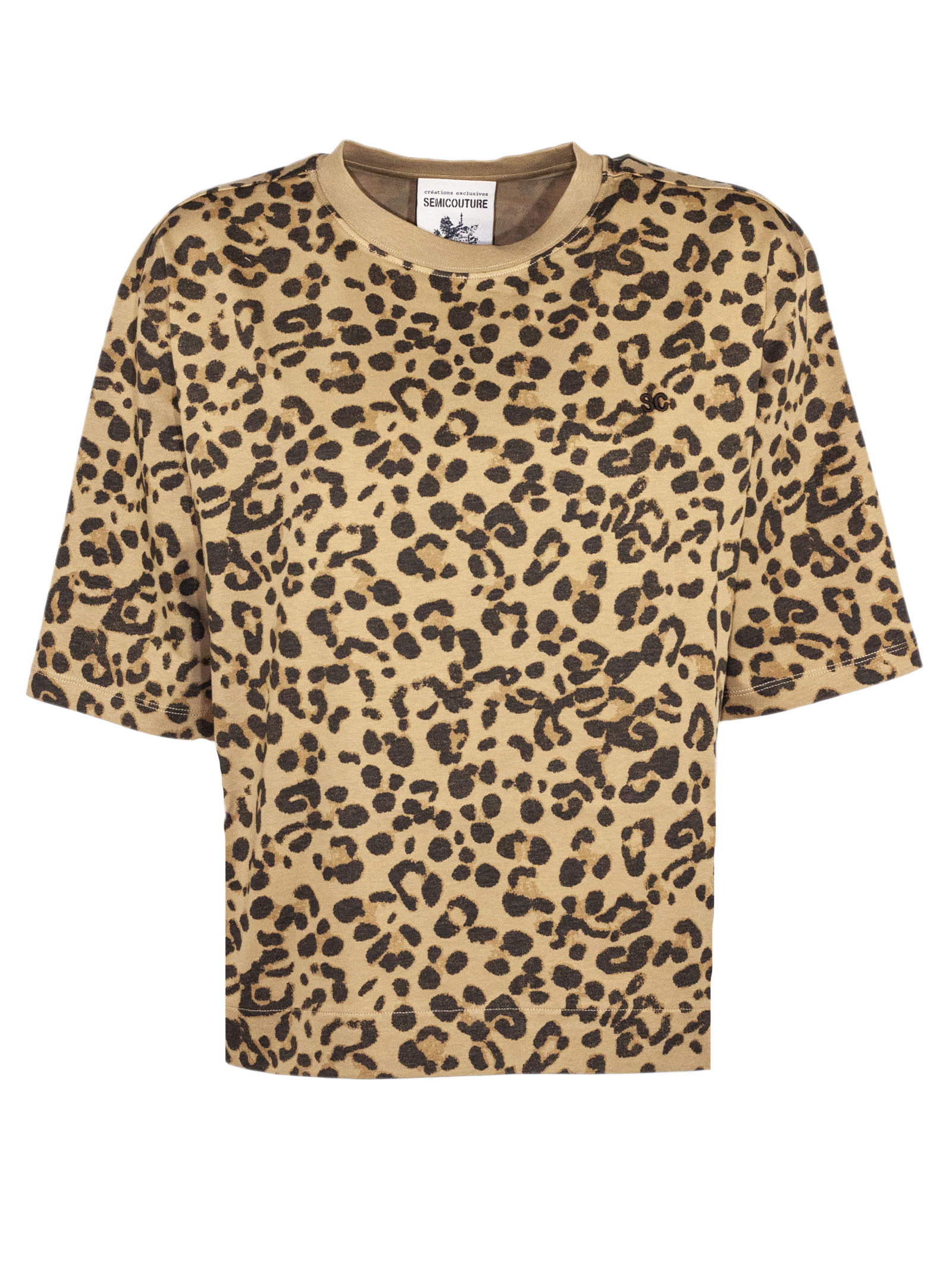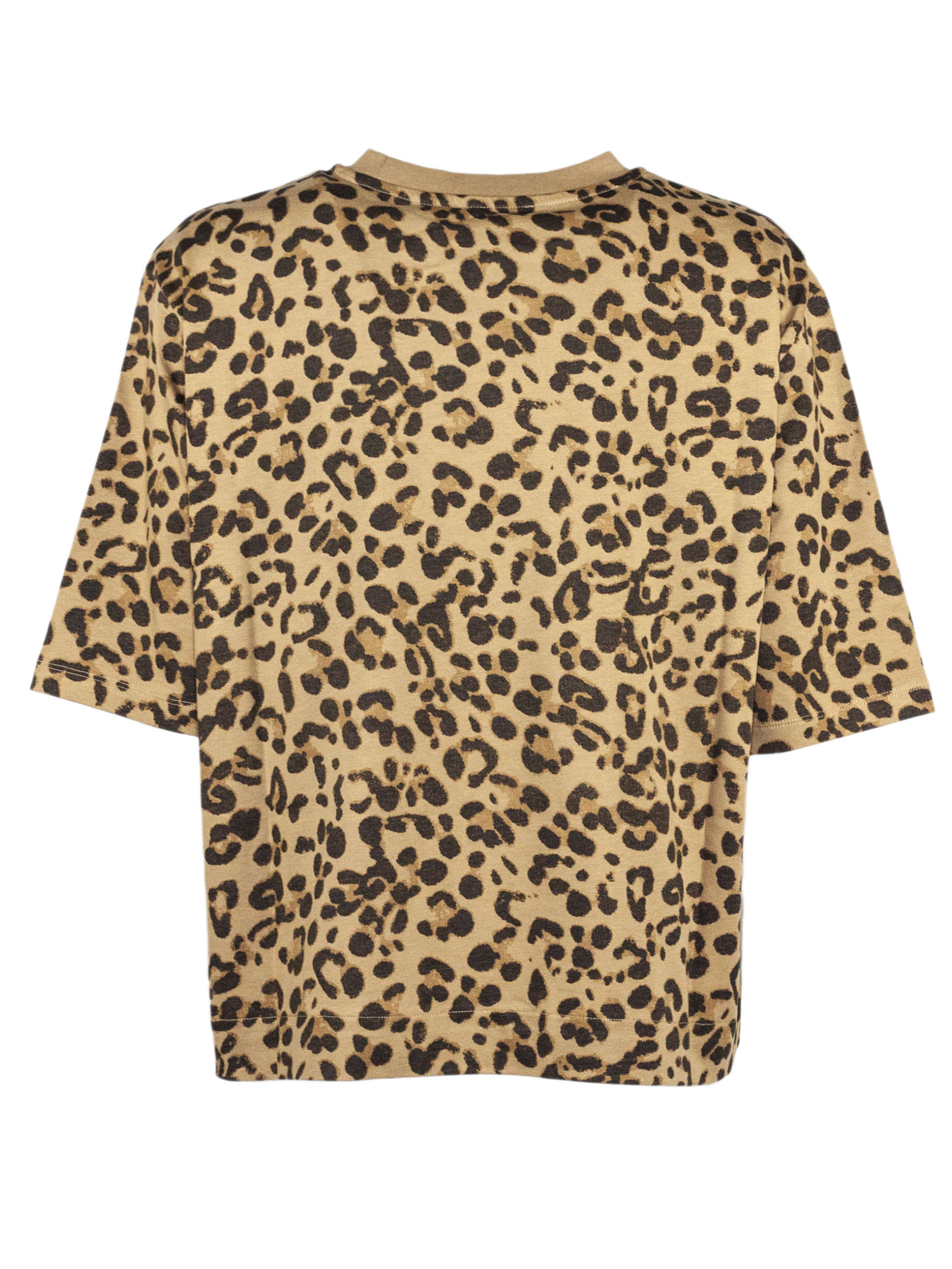 T-shirt in cotone stampa animalier nei toni beige e nero, maniche corte, vestibilità comoda