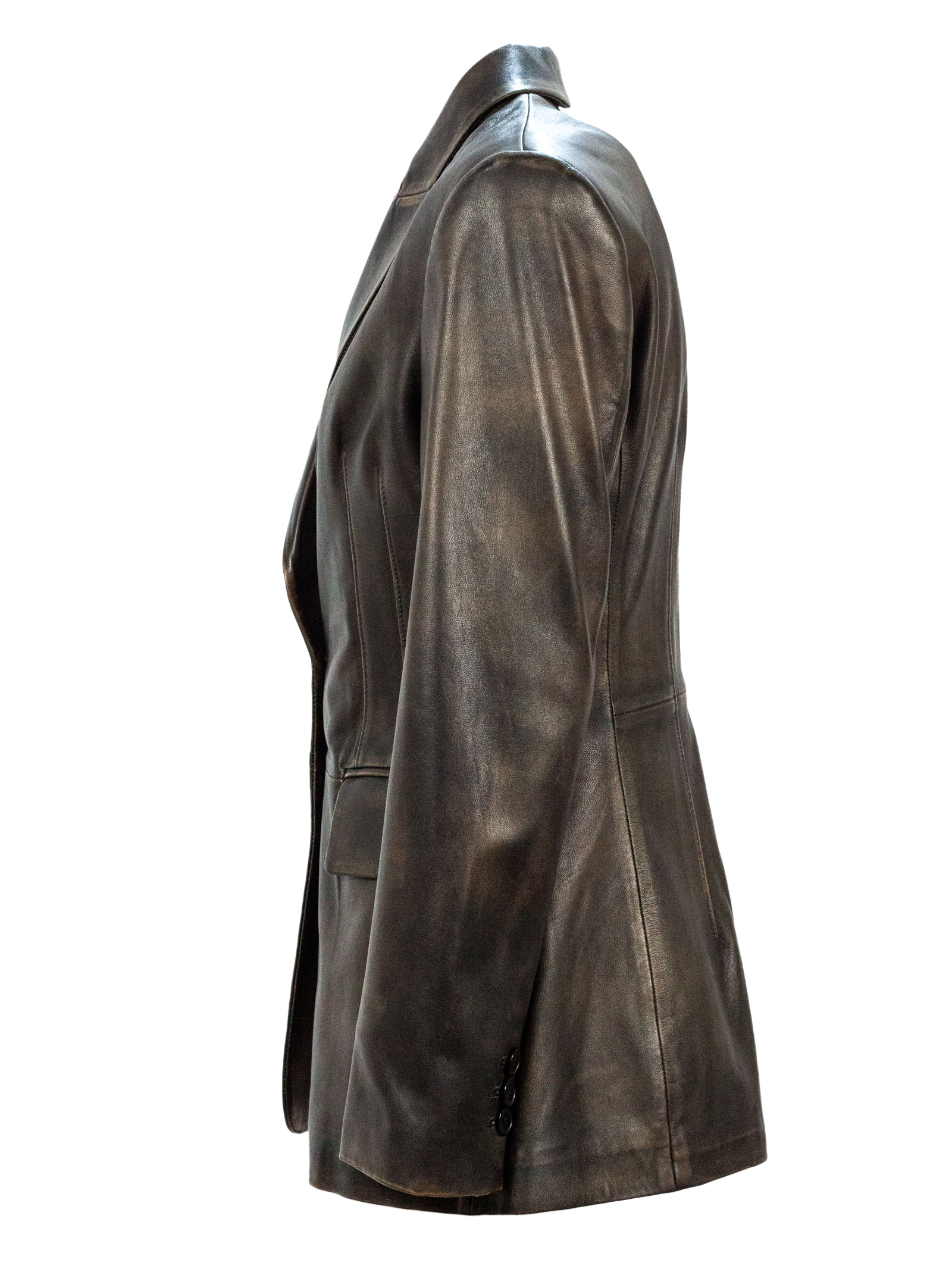 Giacca in pelle nero effetto vintage/brunito, Chiusura Due bottoni frontali, Due tasche con patta frontale, fodera interna morbida per un comfort ottimale, Regular fit, foderato