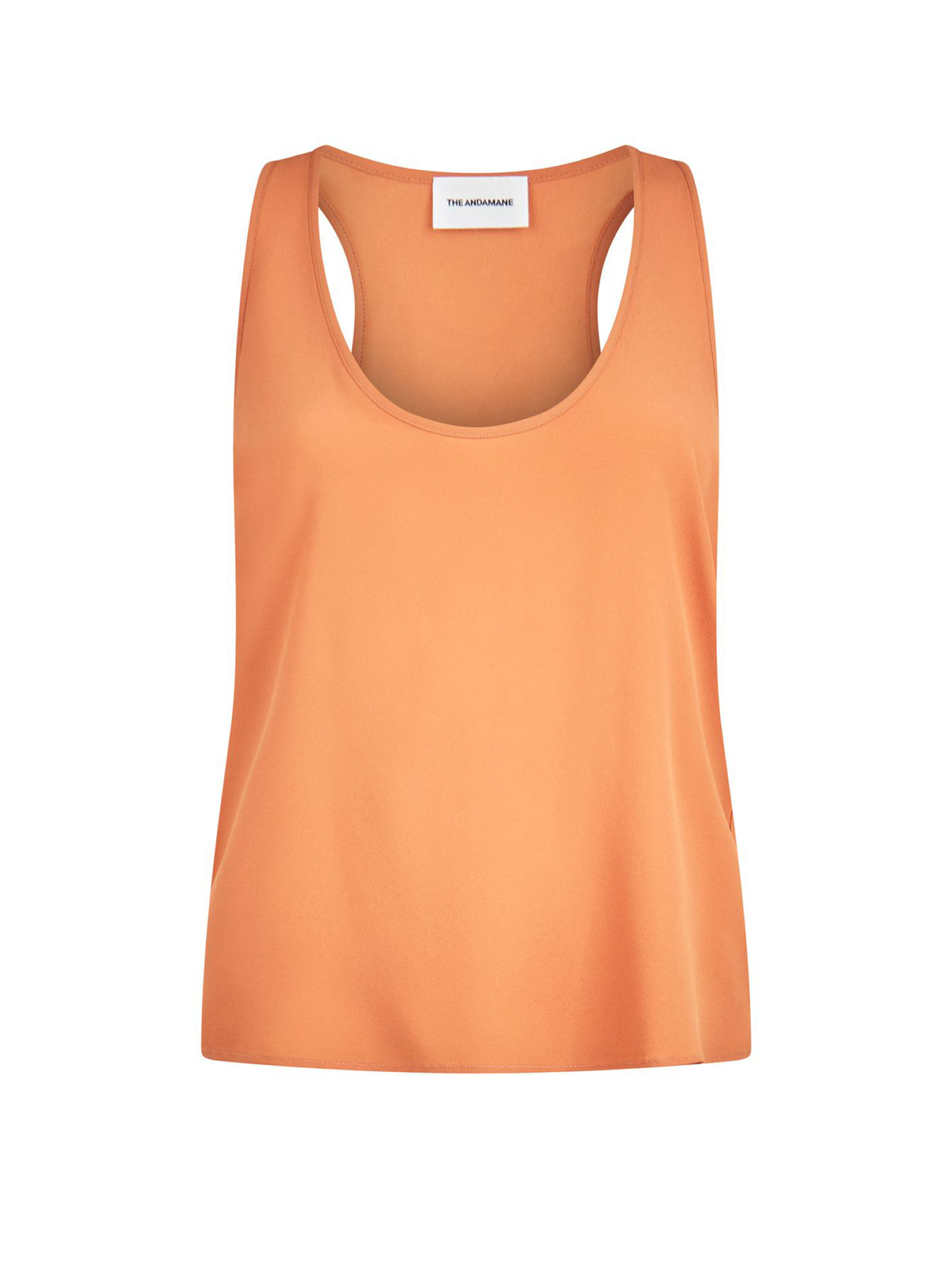 Canotta Pura In Misto Seta Arancione, Taglio Rilassato Con Linea Leggermente Svasata, Scollo Ampio Arrotondato,