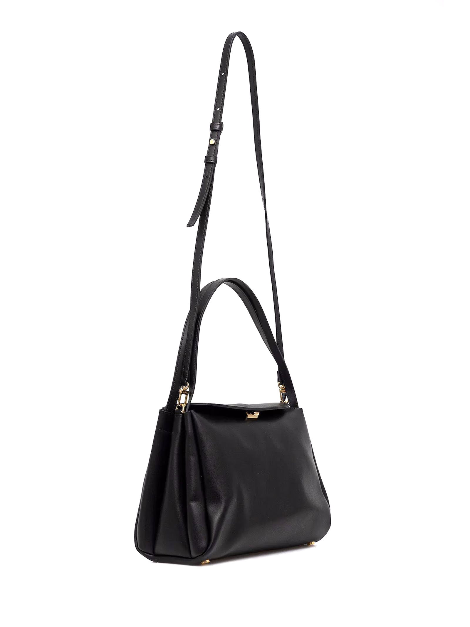 Borsa Eudora Vegan Nera, Chiusura magnetica, due compartimenti, due tasche interne: una inseribile, l'altra con zip, modello senza fodera, chiodi metallici sul fondo che proteggono il fondo della borsa, Tracolla Regolabile E Removibile, dimensioni L 29,5 x A 20 x P 14 cm