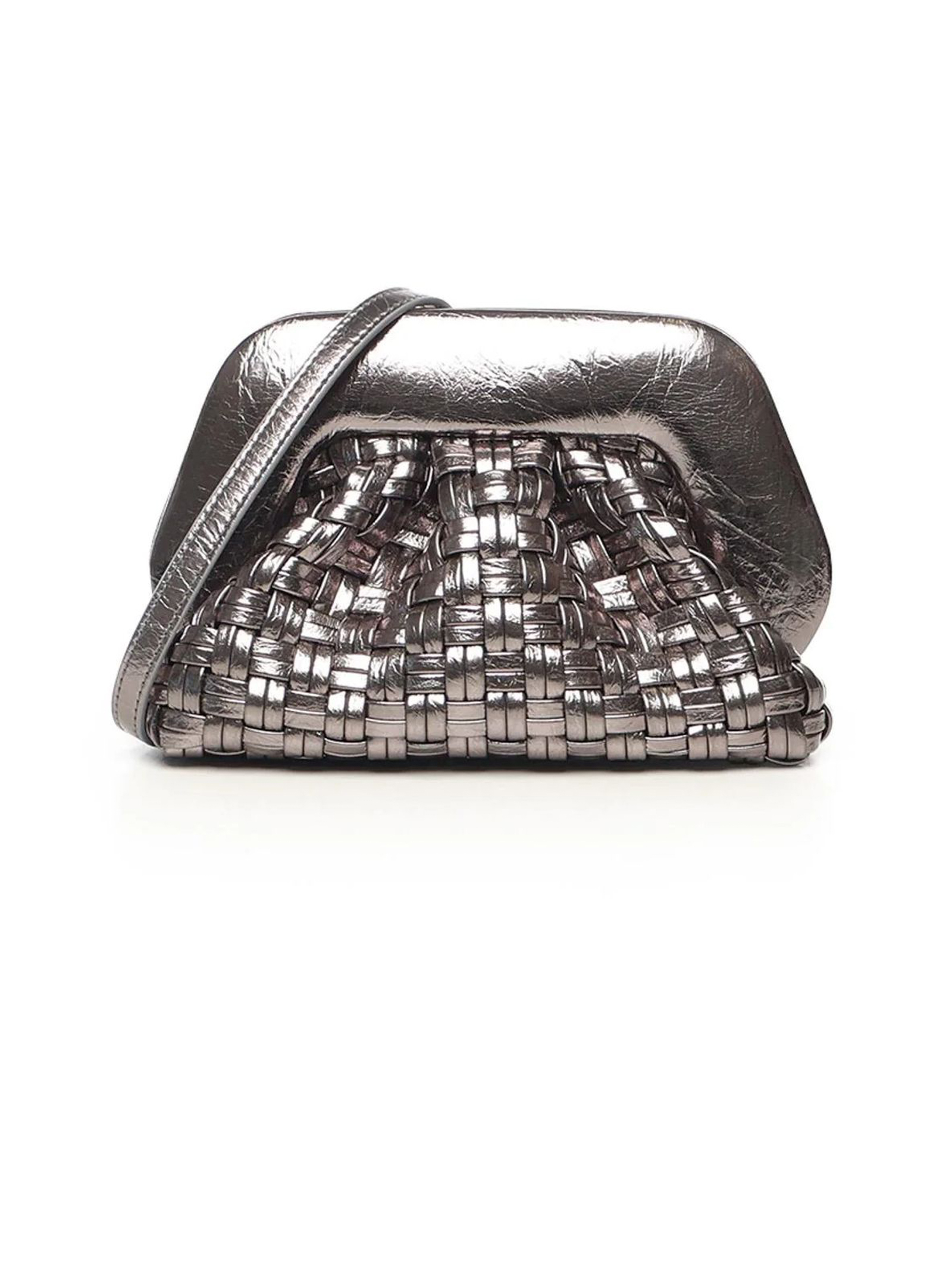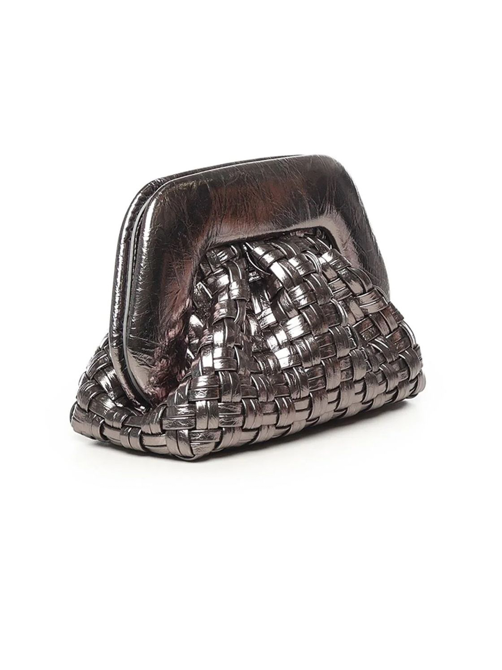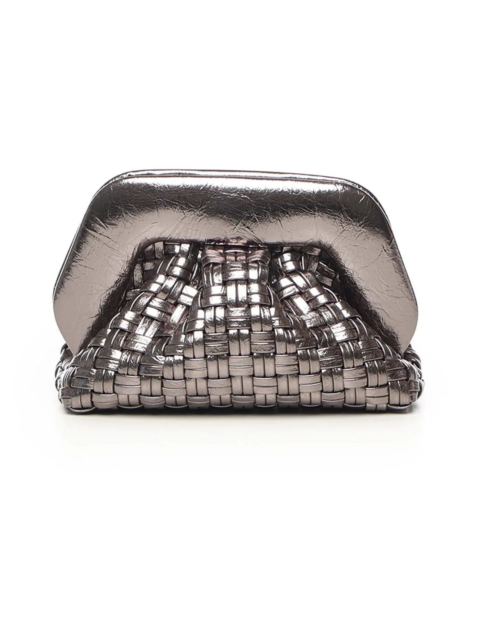 Pochette in pelle sintetica argento, tracolla staccabile e regolabile, chiusura magnetica superiore, Altezza: 15cm, Larghezza: 22cm, Profondità: 10cm, lunghezza tracolla: 105cm regolabile