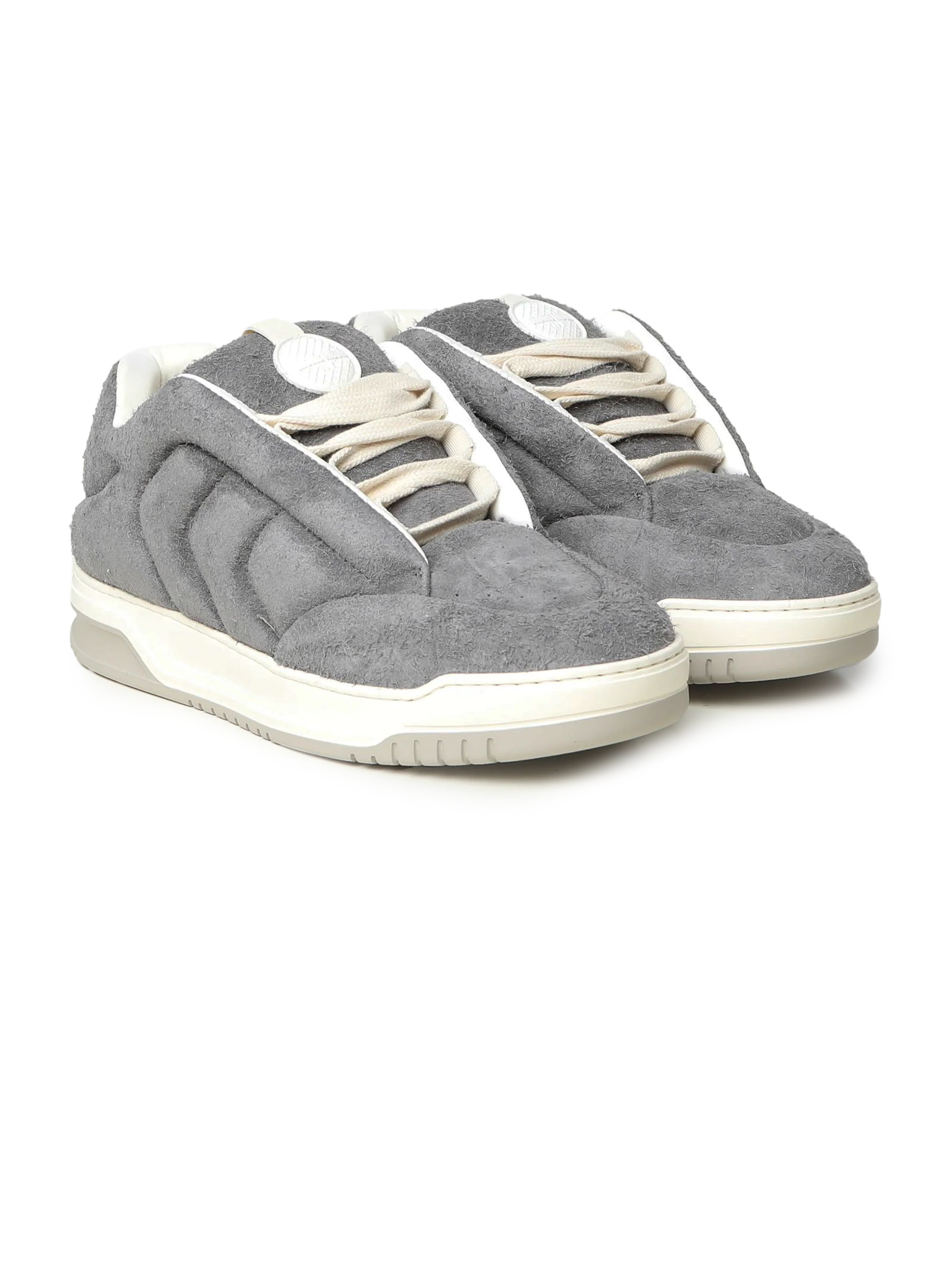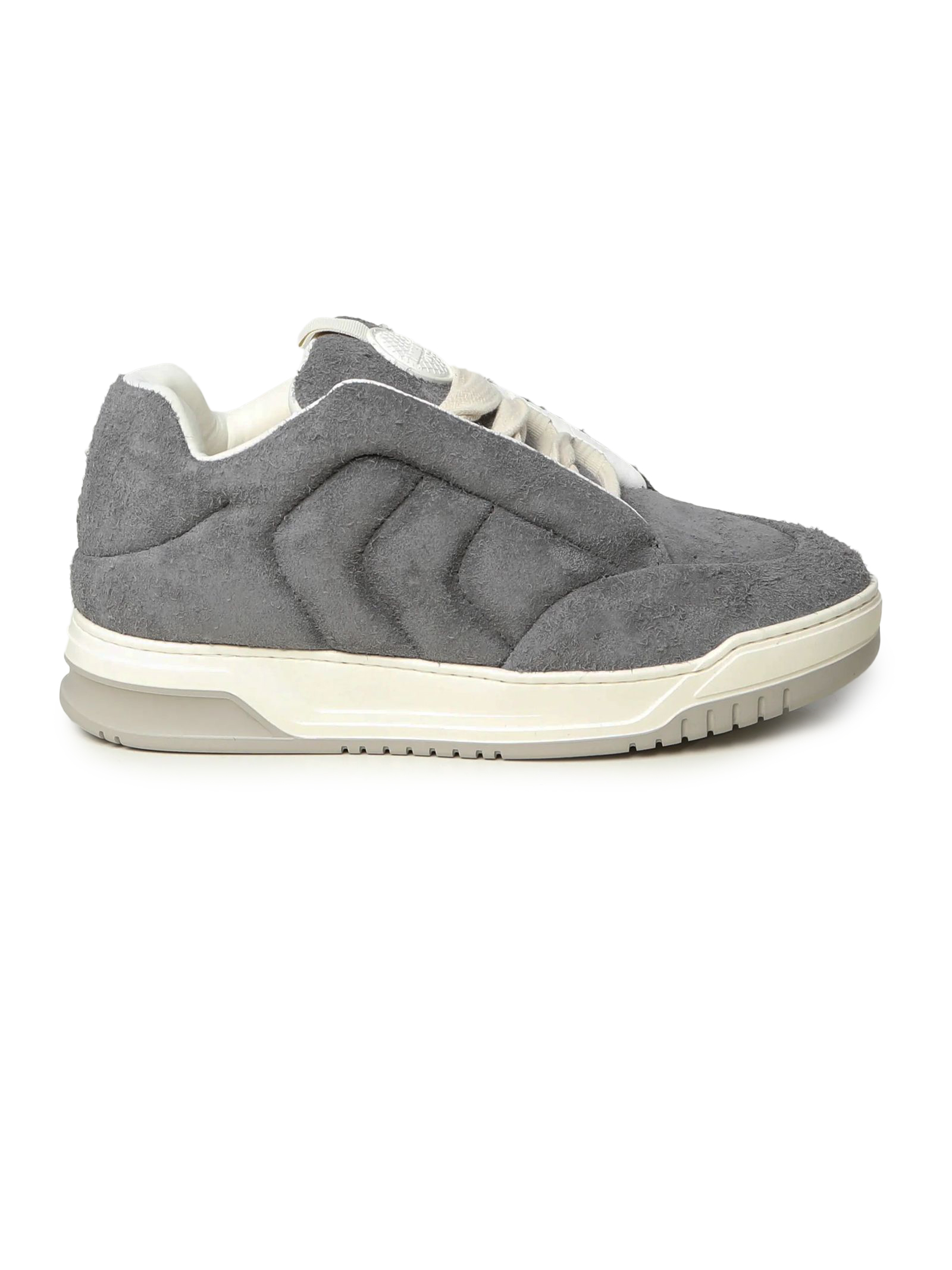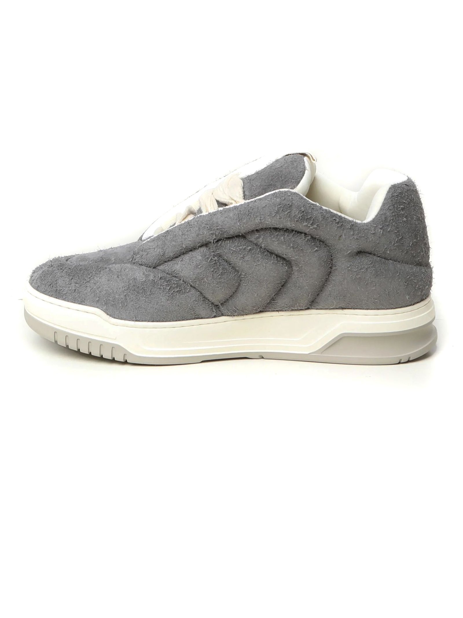 Sneaker in pelle scamosciata waterproof grigia, fodera interna in 100% Lycra, suola in EVA Extralite, lacci in 100% cotone e il logo Thoms Nicoll in TPU