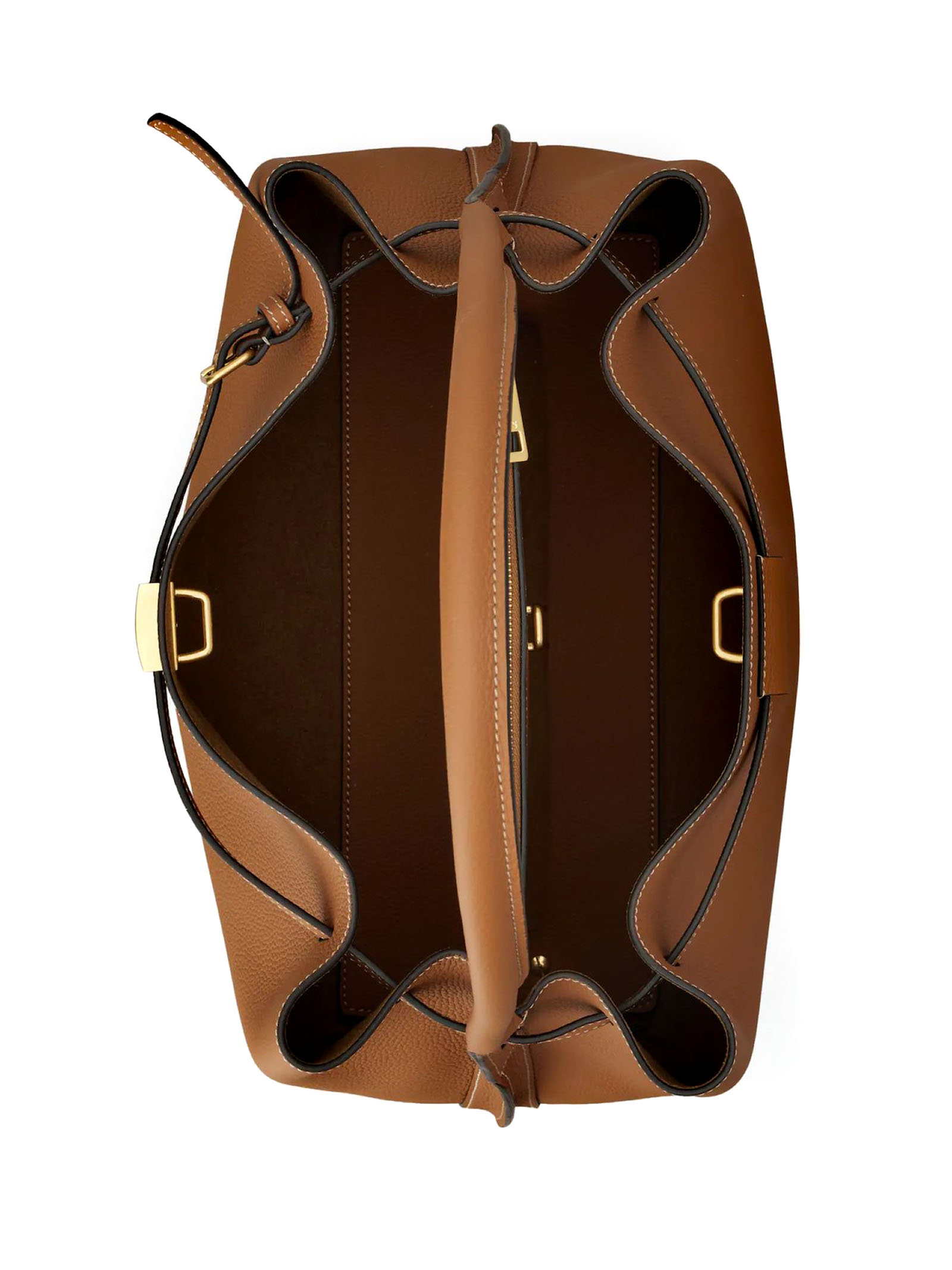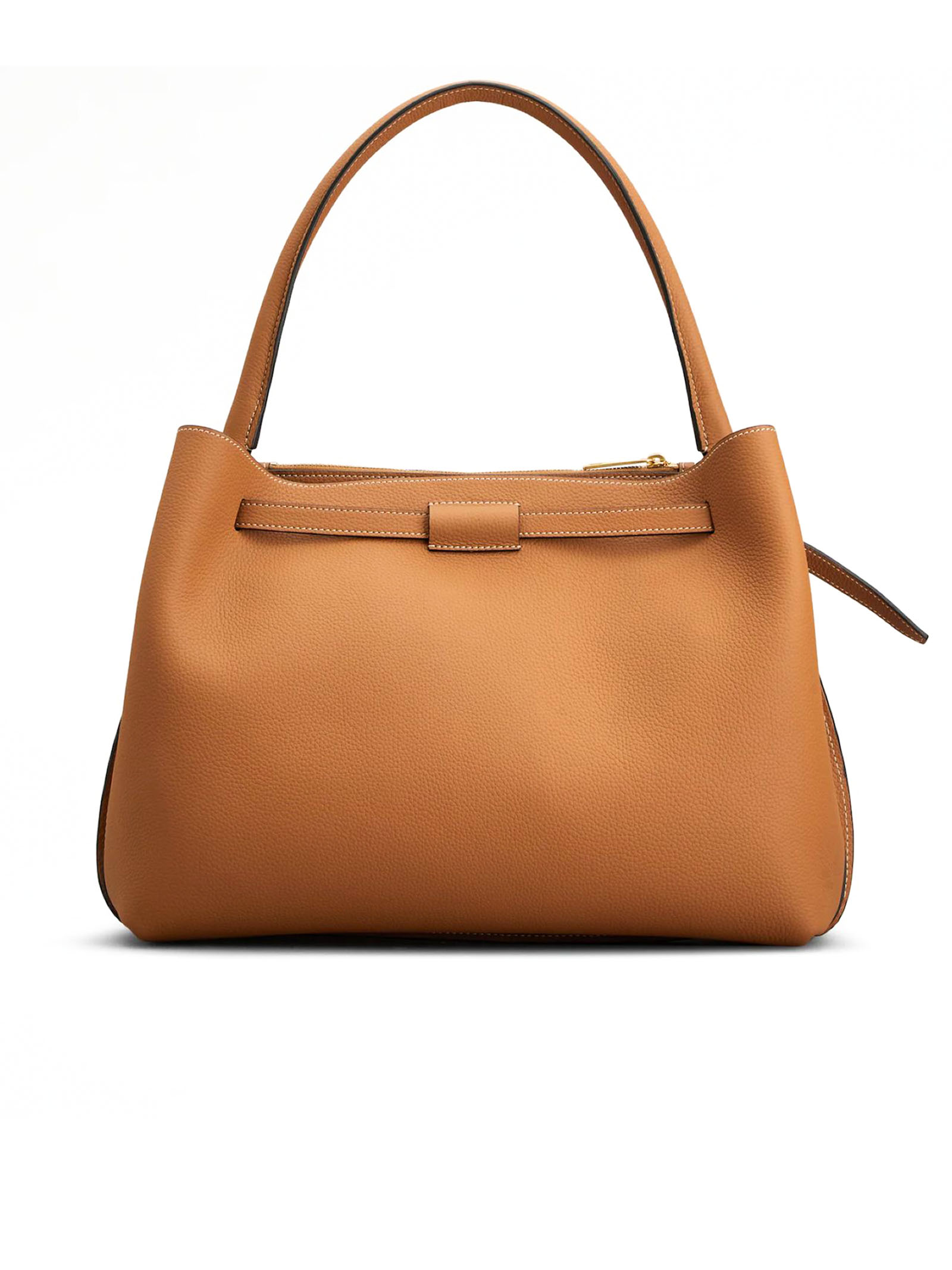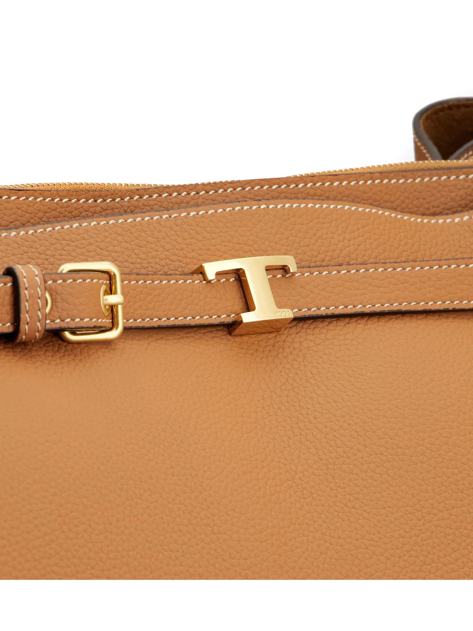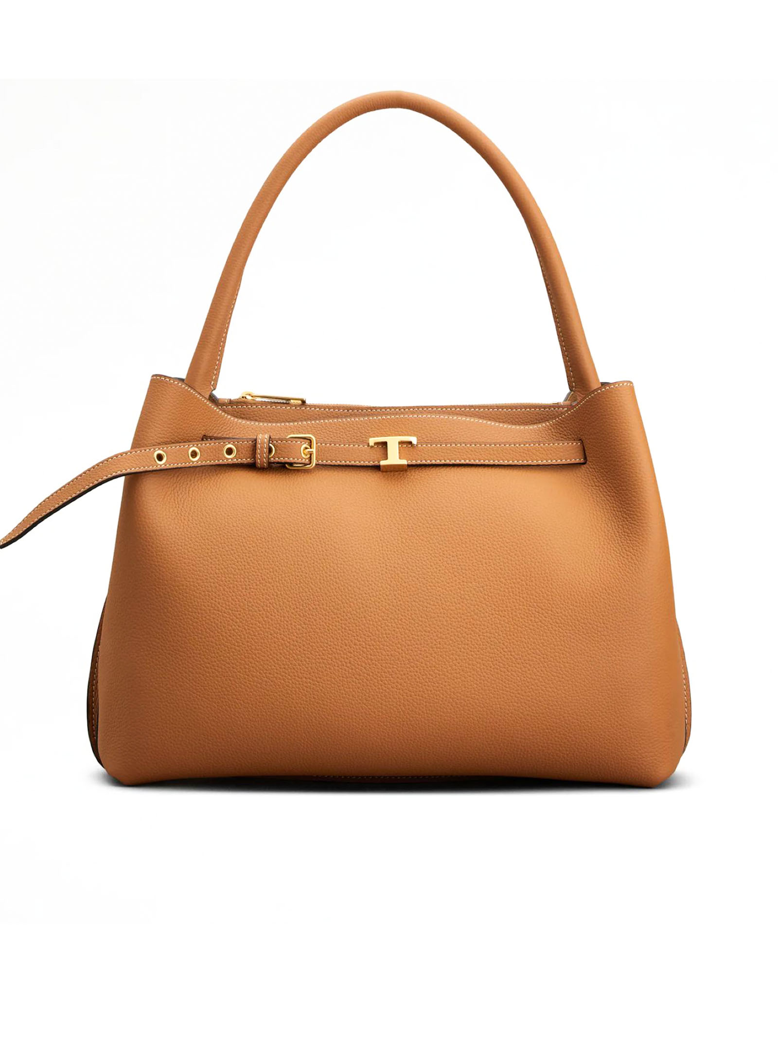 Borsa a Mano in Pelle Marrone Piccola, Dimensioni: L 37 cm x A 24 cm x P 18 cm, Accessorio T Timeless in metallo personalizzato, Chiusura con gancio, 2 scomparti interni, Tasca interna con cerniera, Piedini in metallo