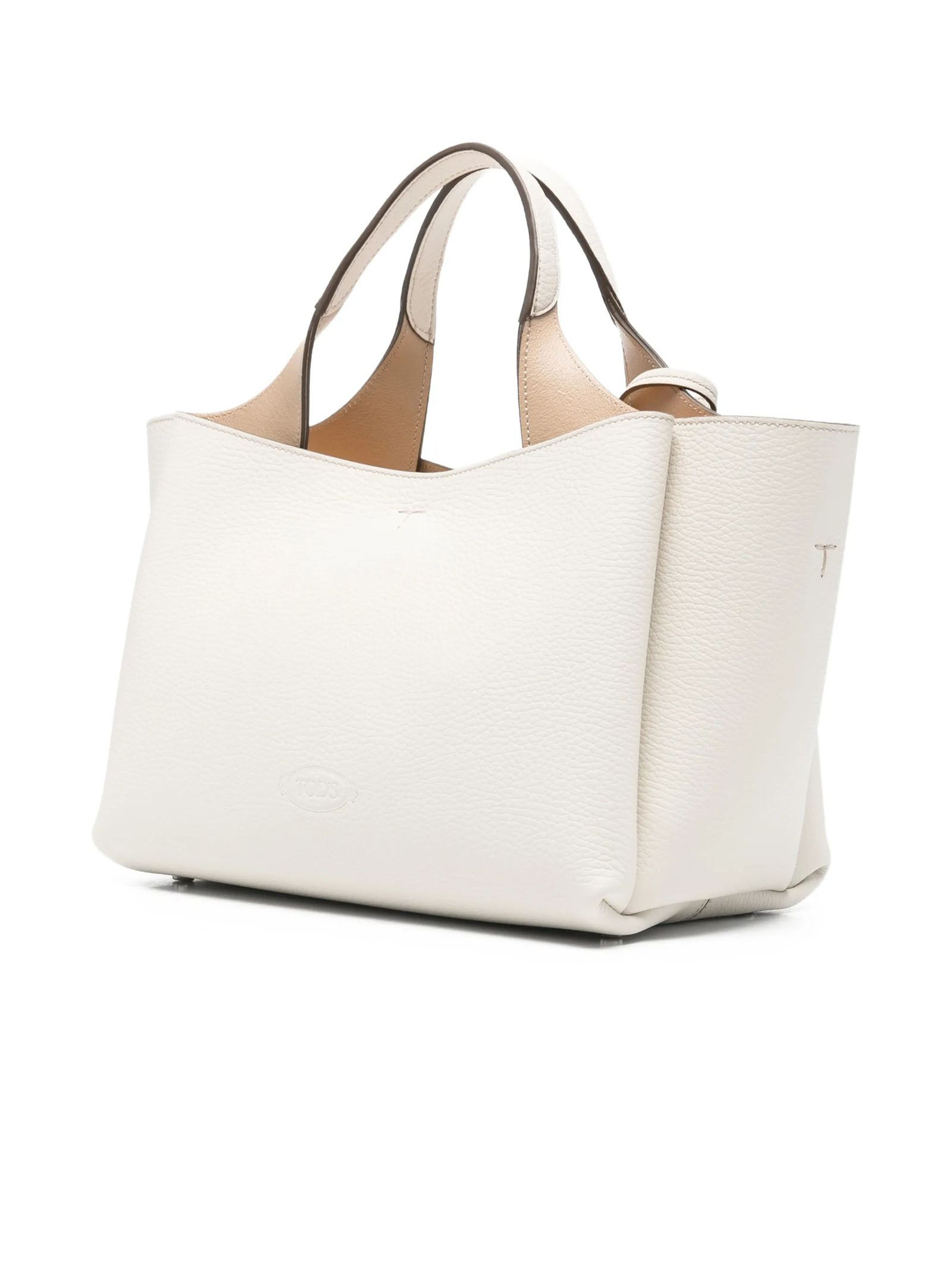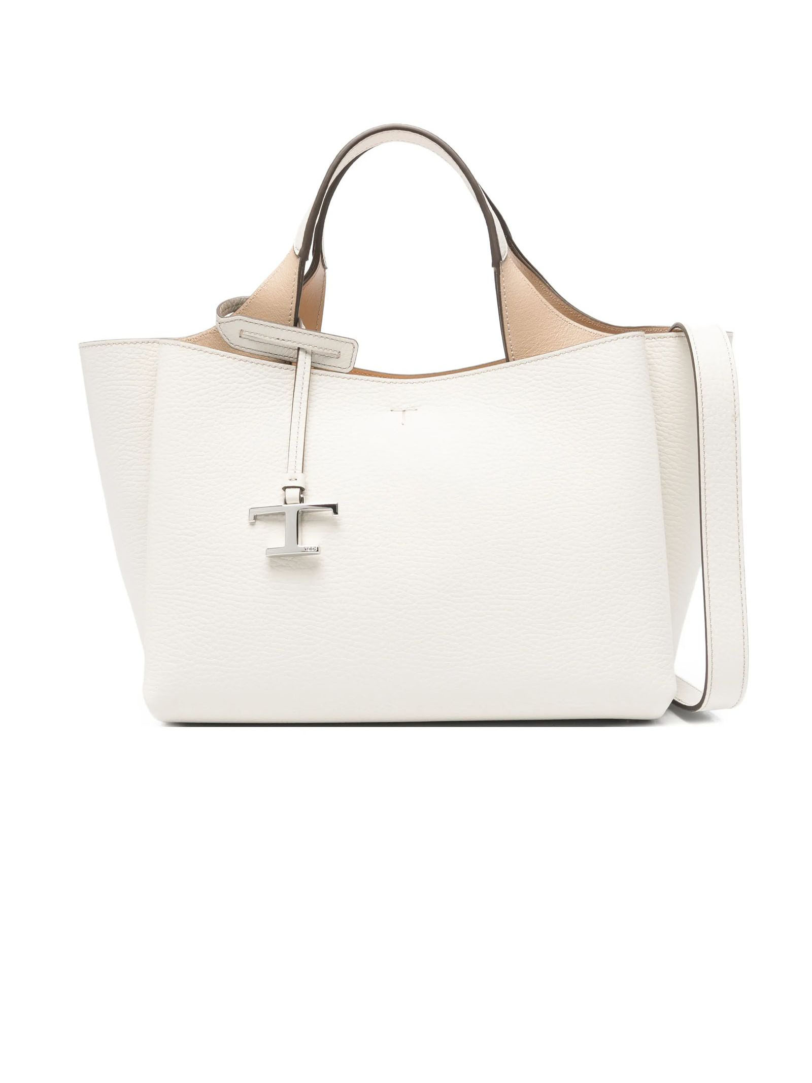 Borsa in Pelle Mini Bianca, Logo Tod's impresso sul fronte, Pendente removibile con accessorio T Timeless in metallo, Chiusura con gancio, Interno a 3 scomparti, 2 tasche interne piatte con zip, Dimensioni: L 29 cm x A 19,5 cm x P 18 cm