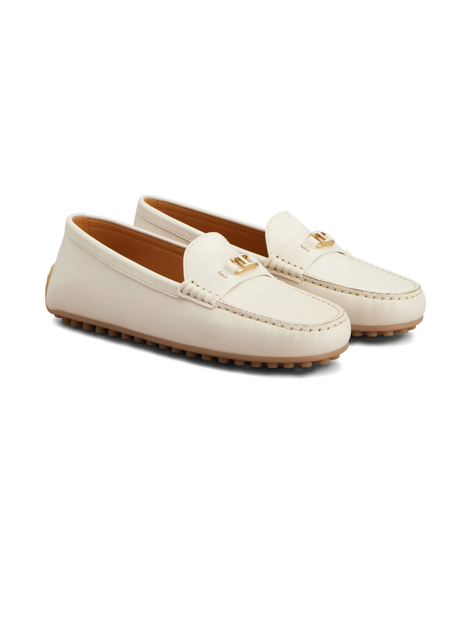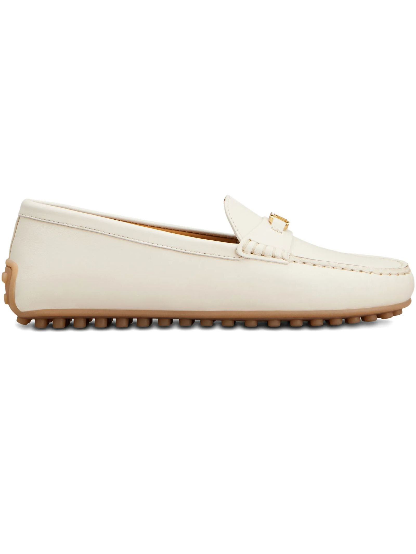 Mocassino City Gommino in Pelle Bianco, Mascherina con morsetto , T rivestito in pelle, Impunture realizzate a mano, Iconica suola Tod's in gomma