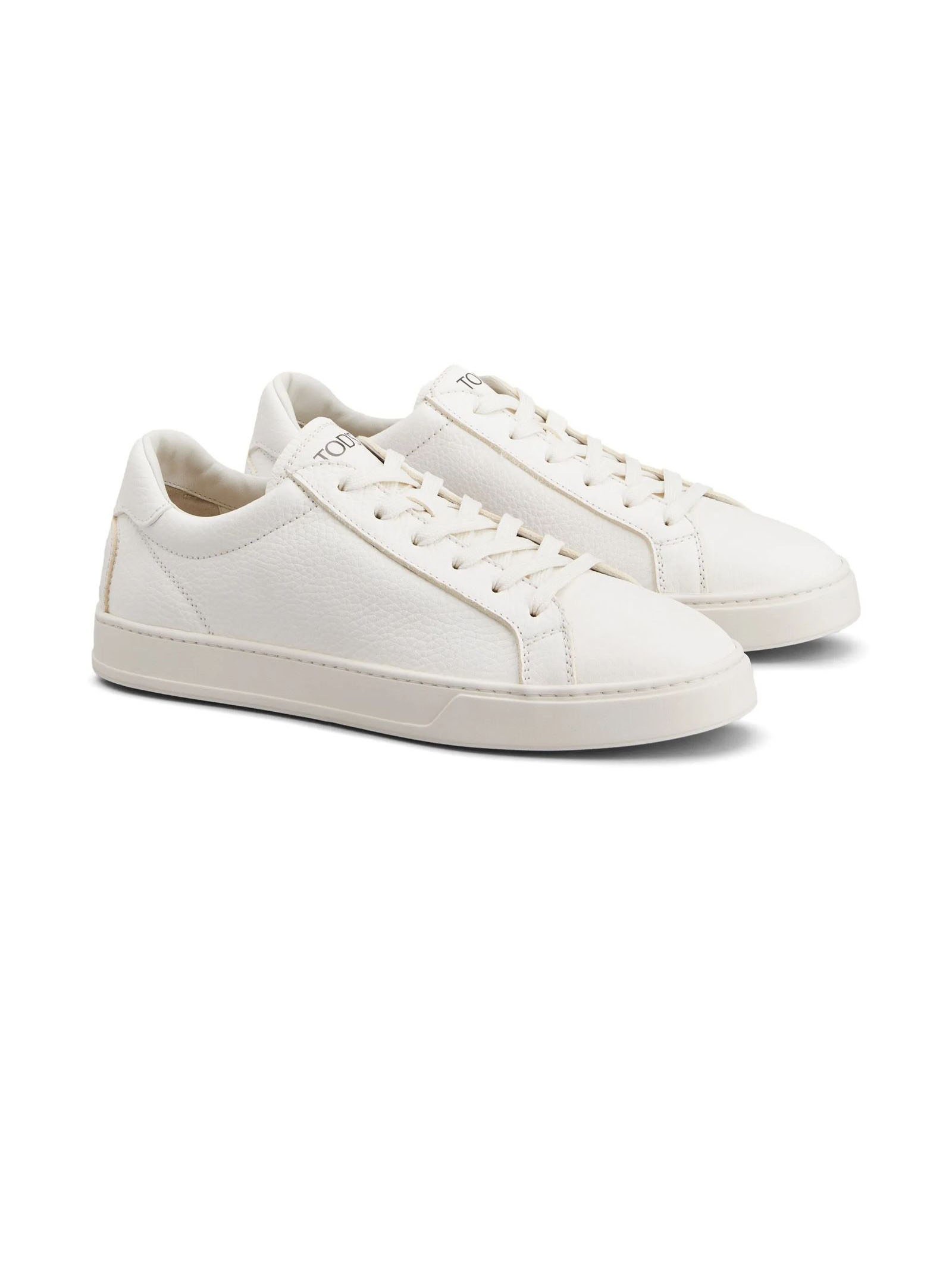 Sneakers in pelle di vitello bianco, Logo Tod's stampato sulla linguetta, Fodera e sottopiede in pelle, Suola in gomma con scanalature