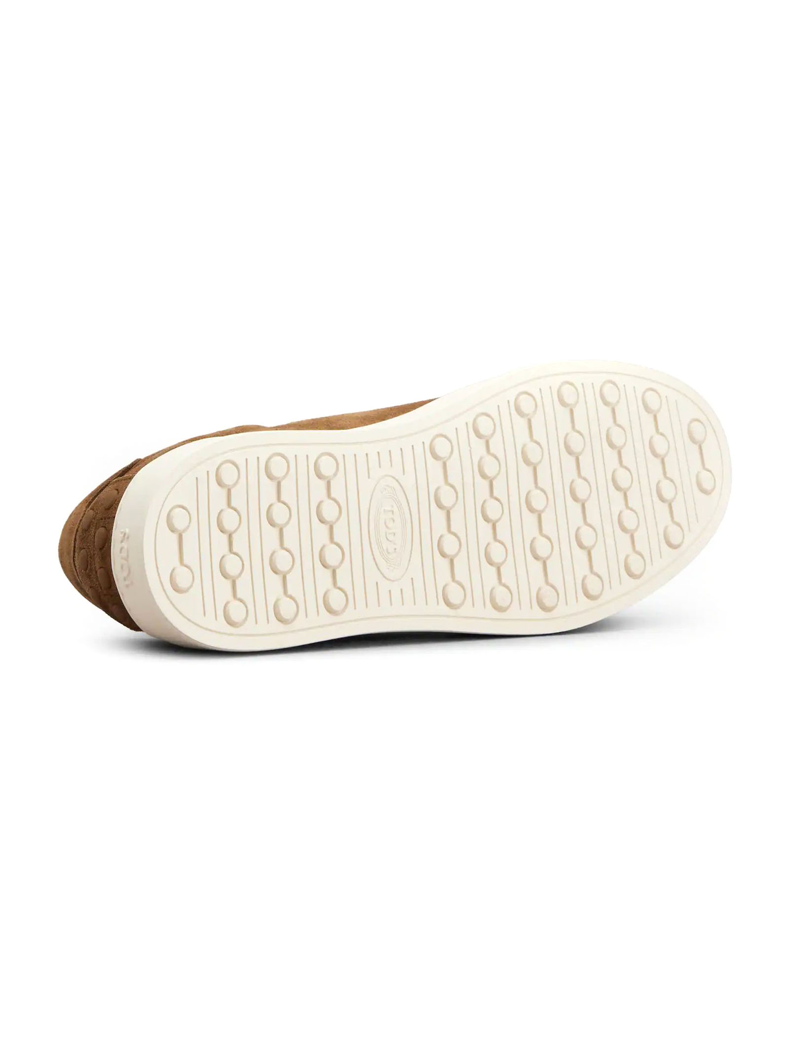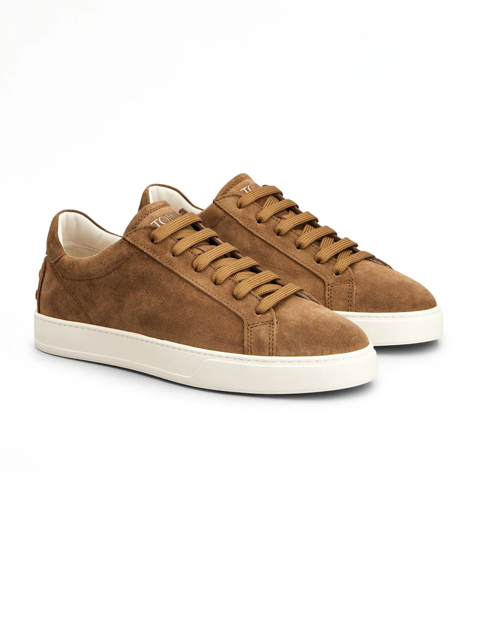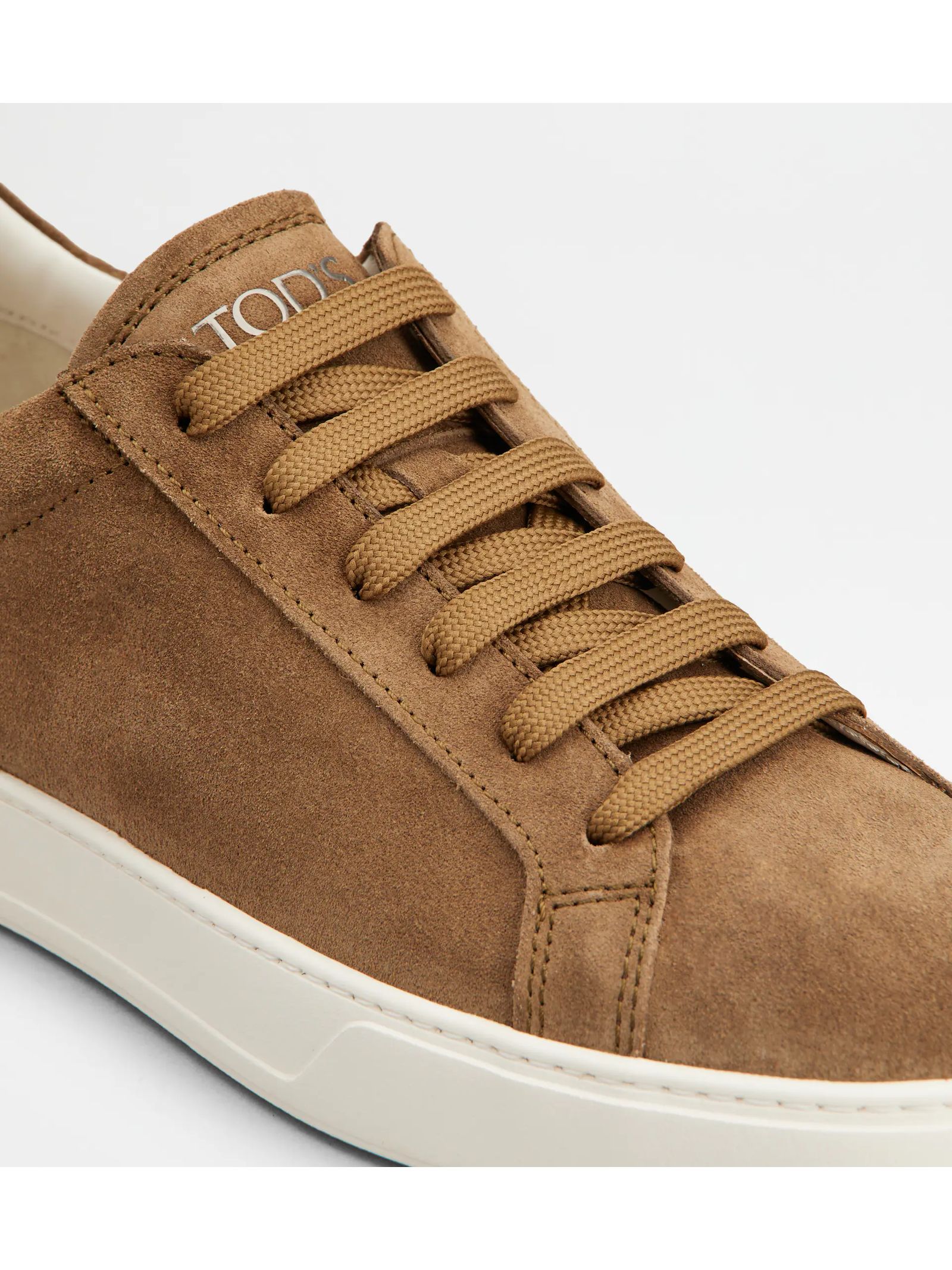 Sneakers in Pelle Scamosciata Marrone, Logo Tod's stampato sulla linguetta, Fodera e sottopiede in pelle, Suola in gomma con scanalature