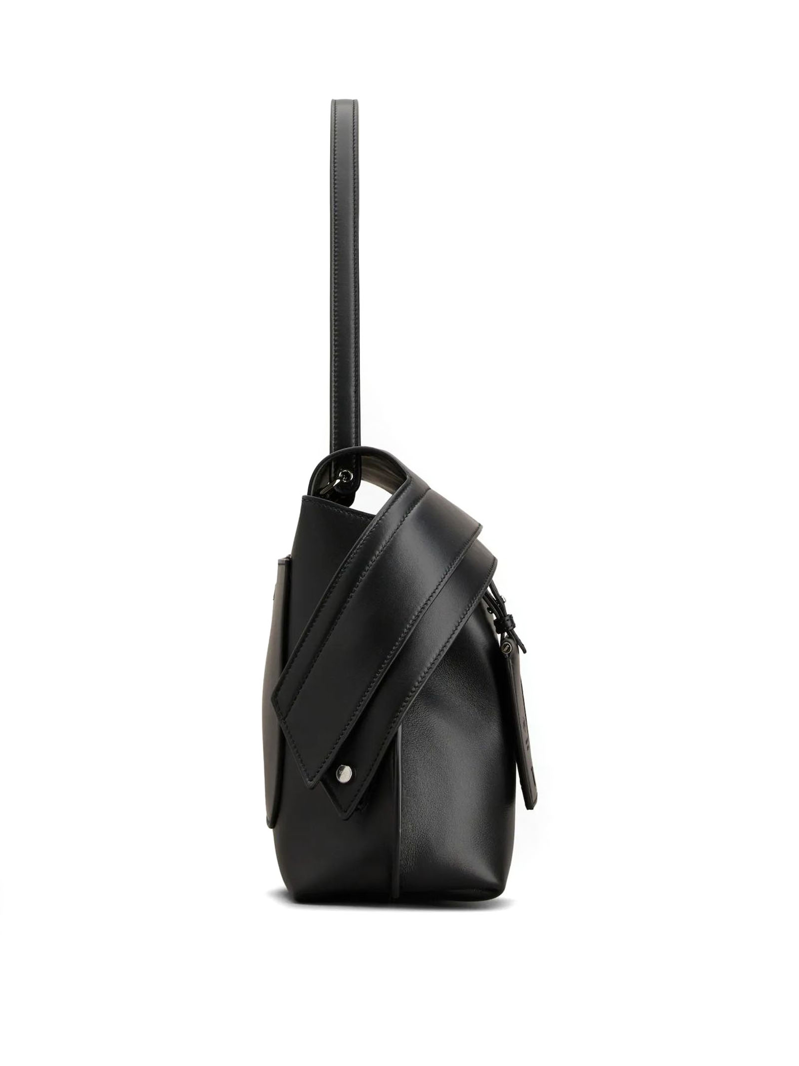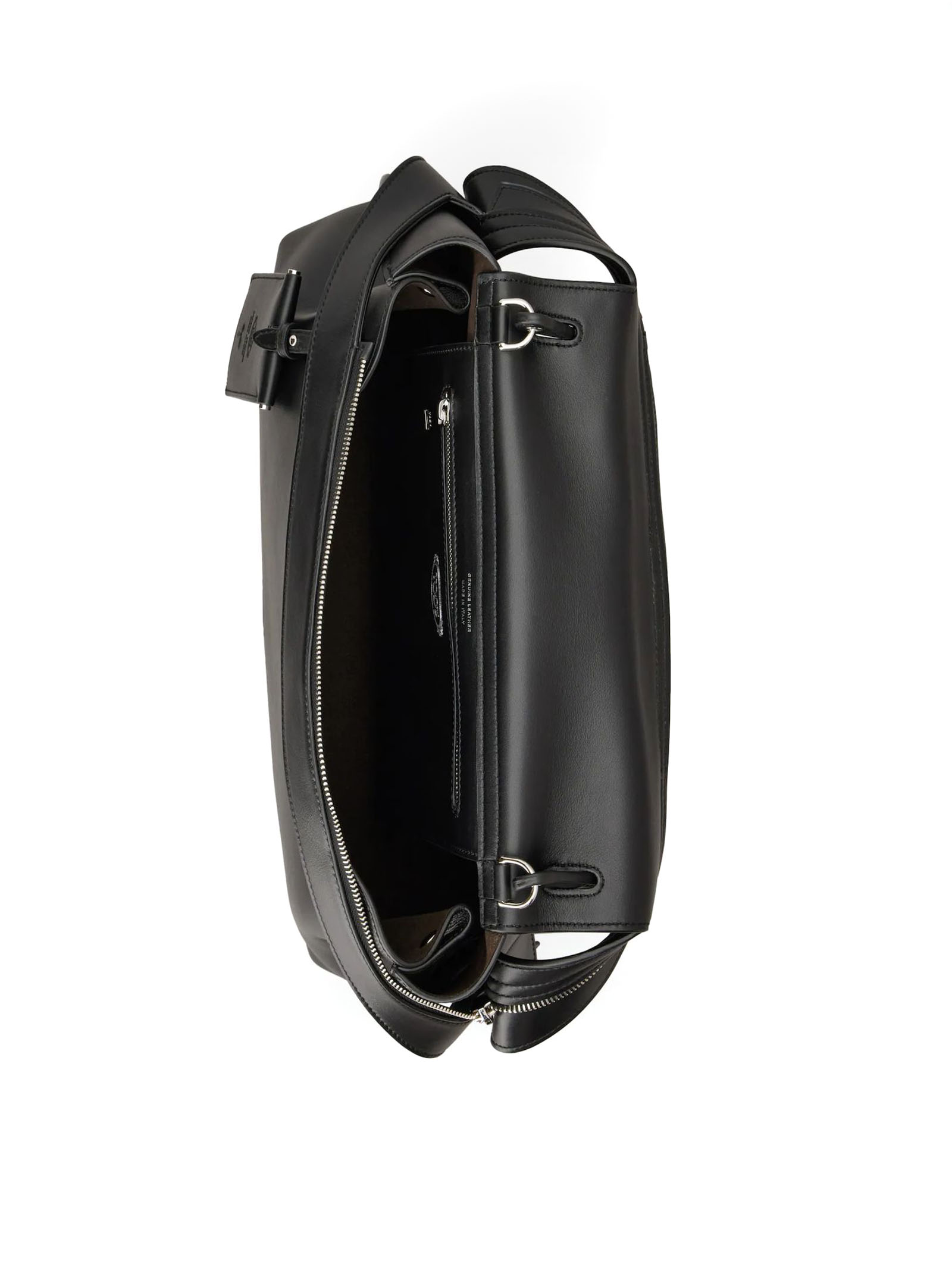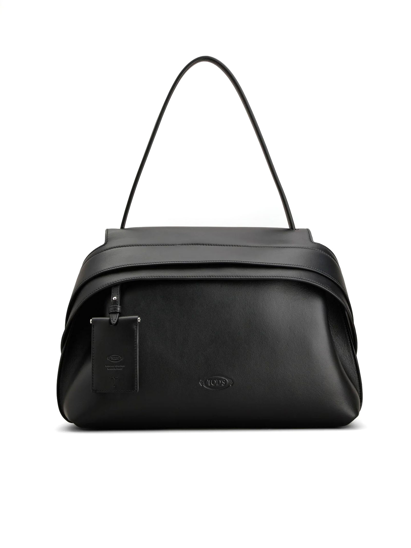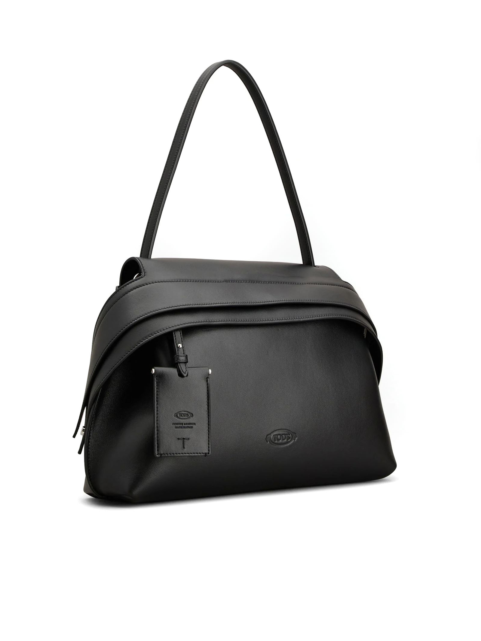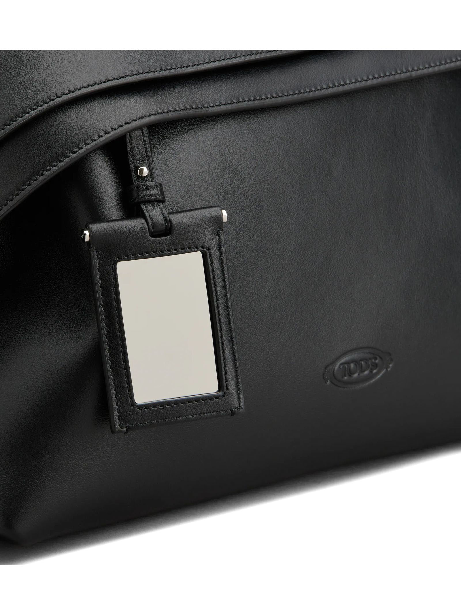 Tod's Wave Bag in Pelle Media Nera, Logo Tod's impresso sul fronte, Specchietto removibile, Tasca sul retro con T ricamata, Chiusura con cerniera, Tasca interna con cerniera, L 37 cm x A 24 cm x P 12 cm