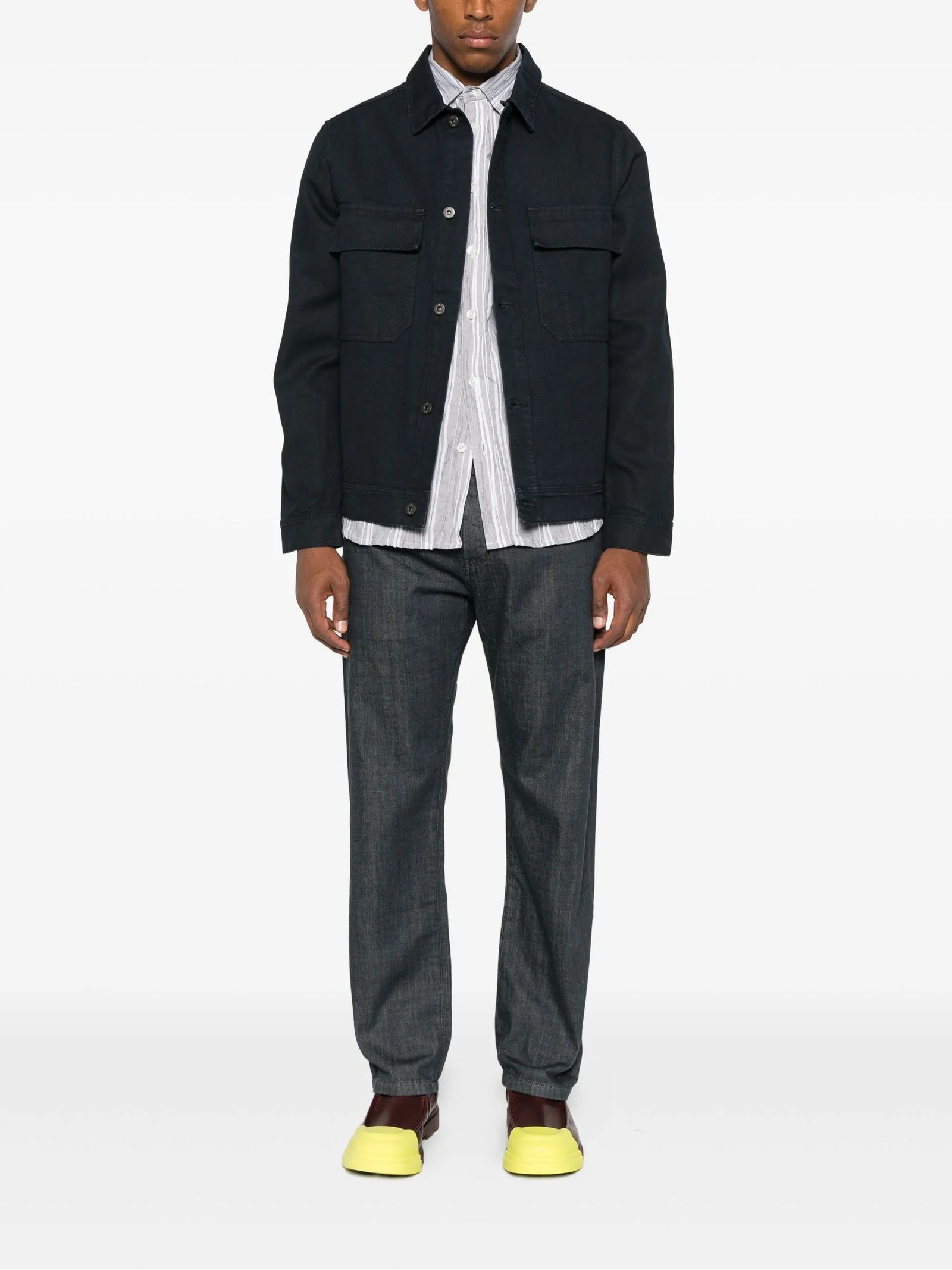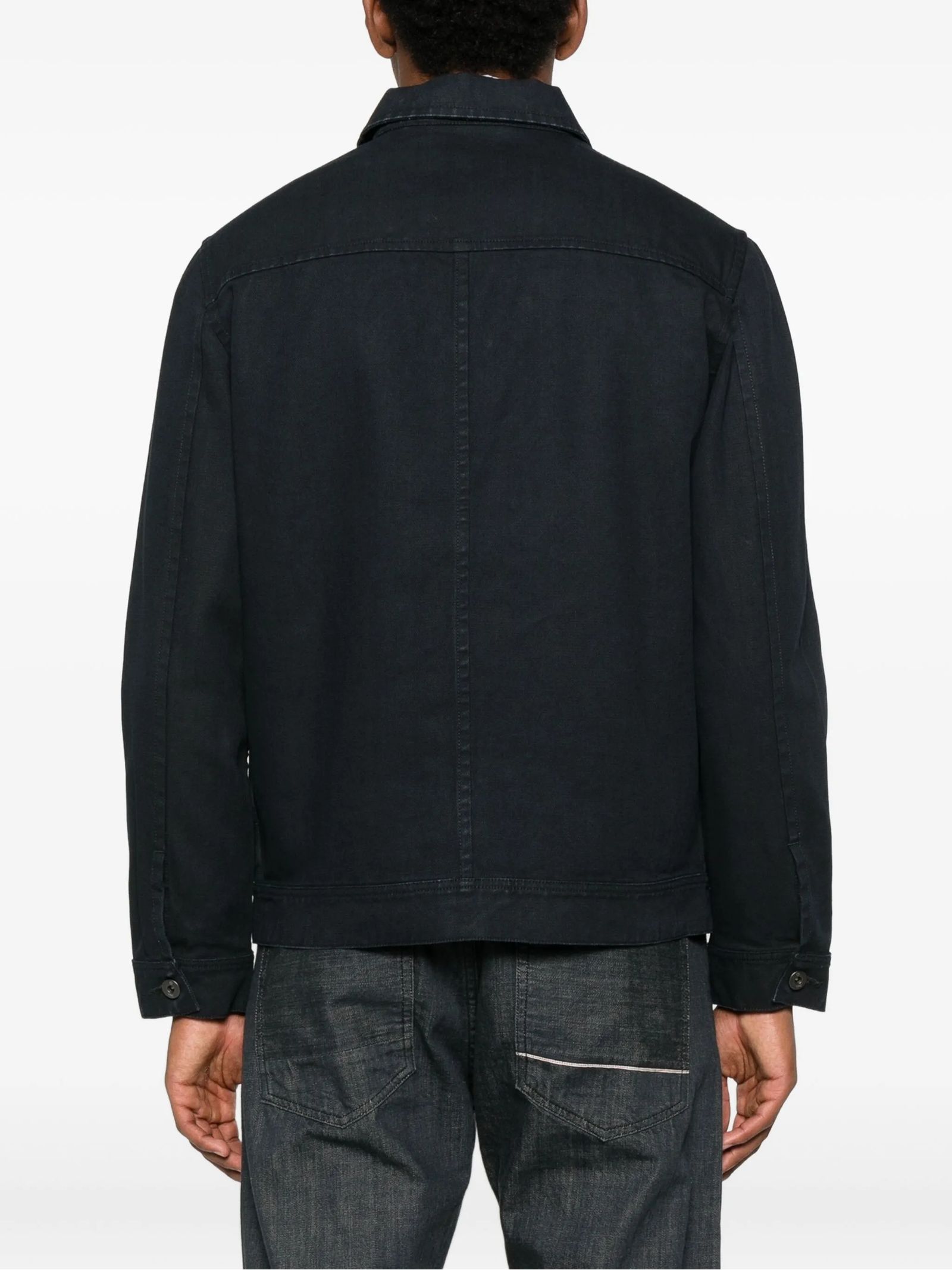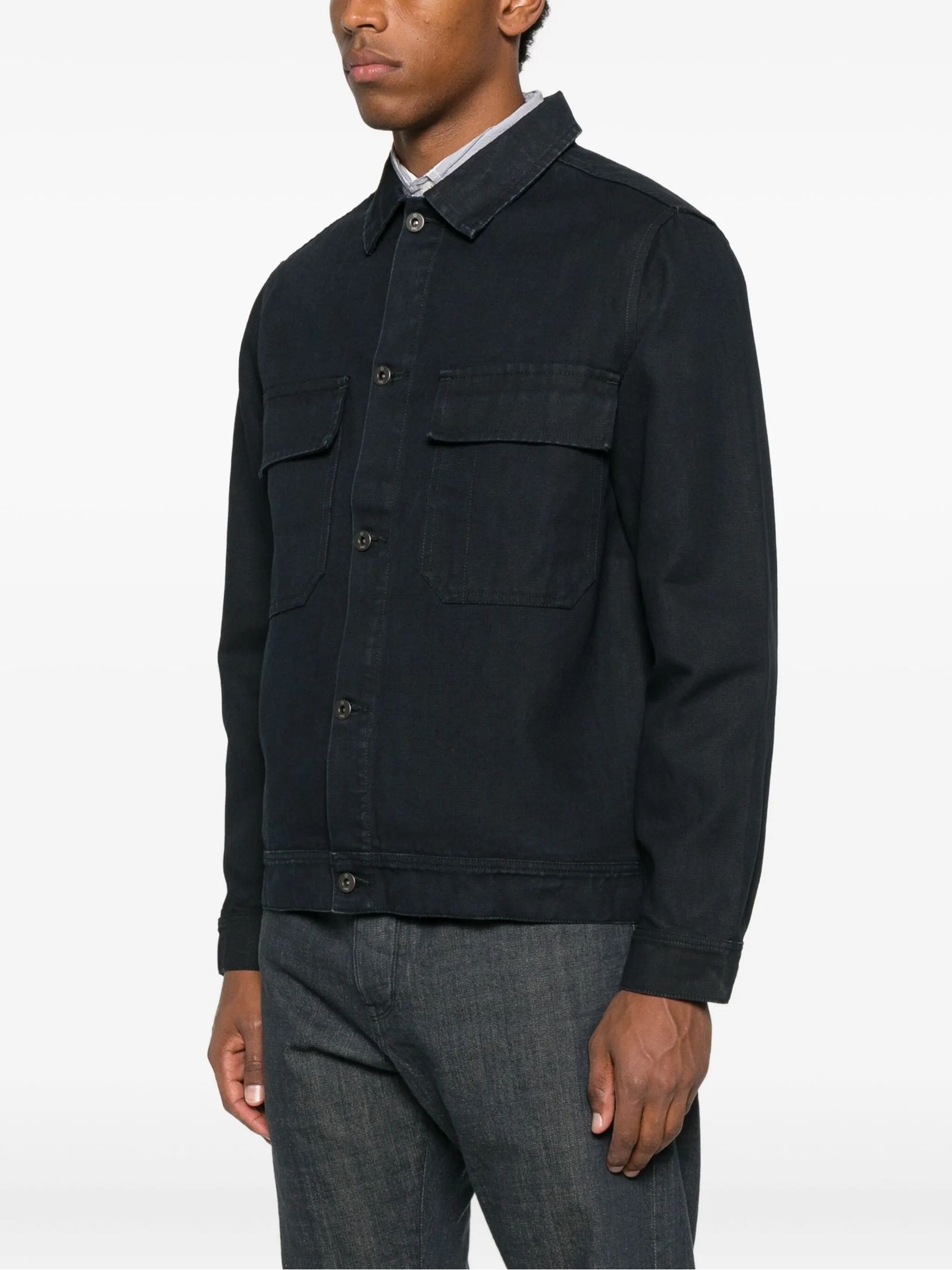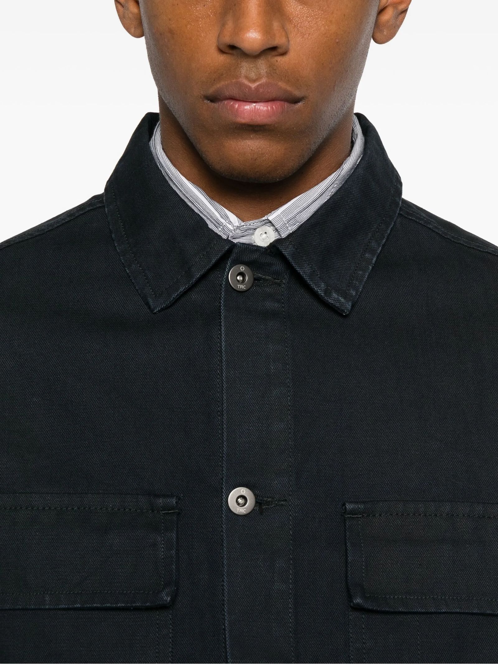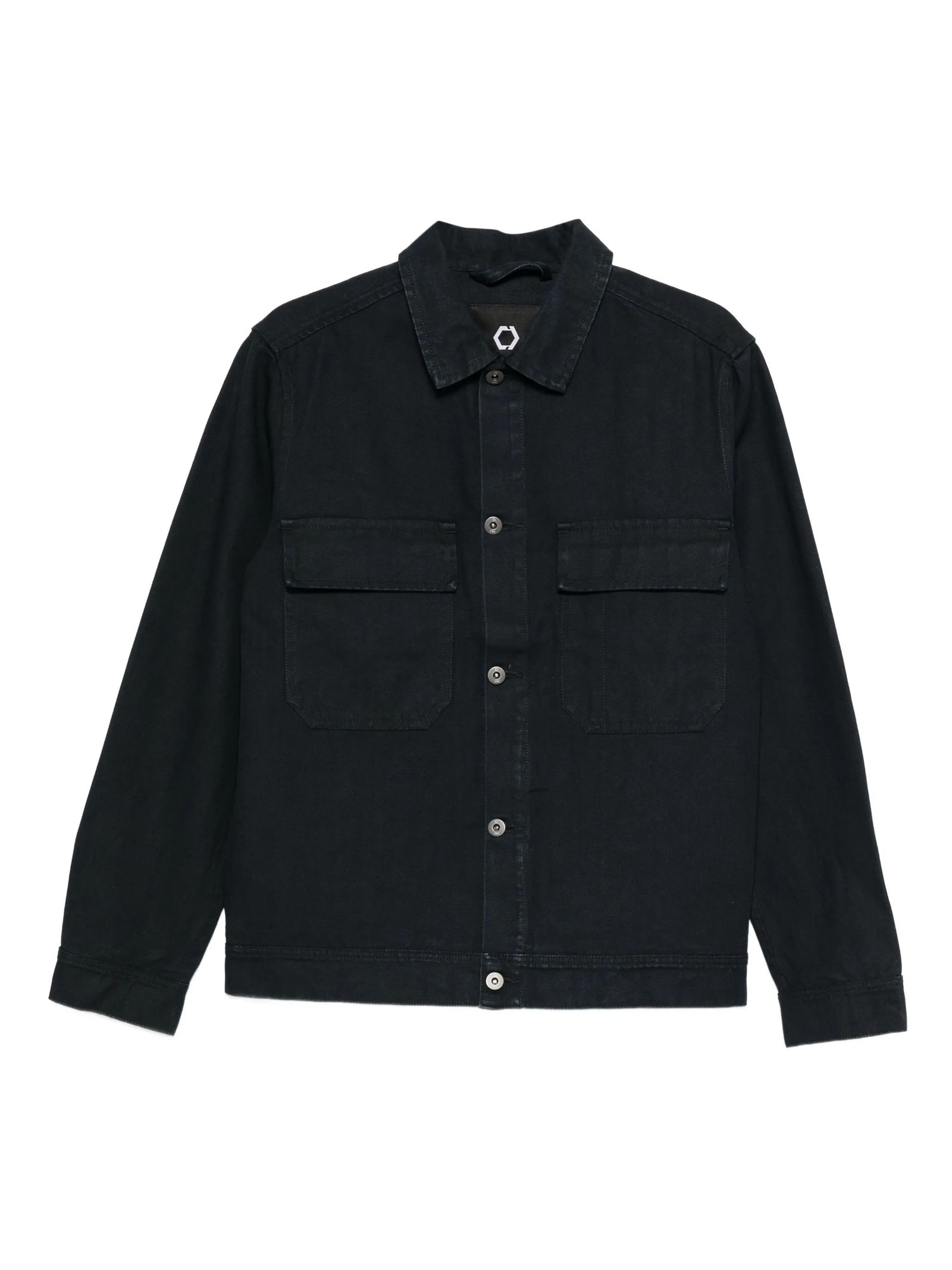 Giacca-camicia con tasche in misto cotone blu con chiusura frontale con abbottonatura, due tasche frontali, colletto classico, maniche lunghe, orlo dritto