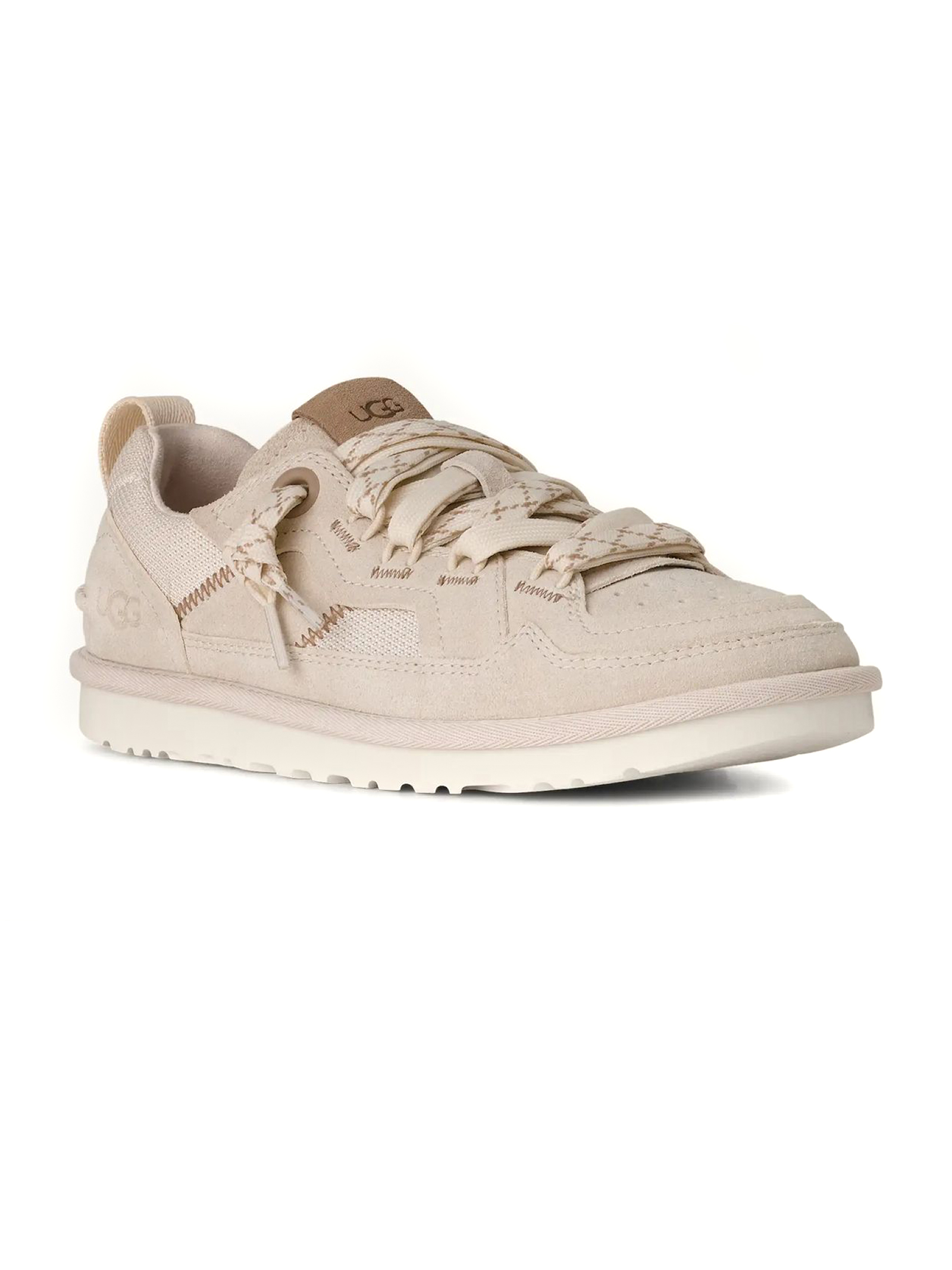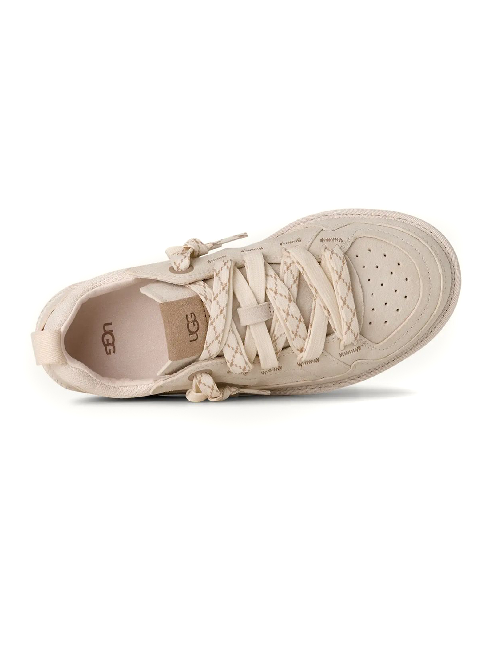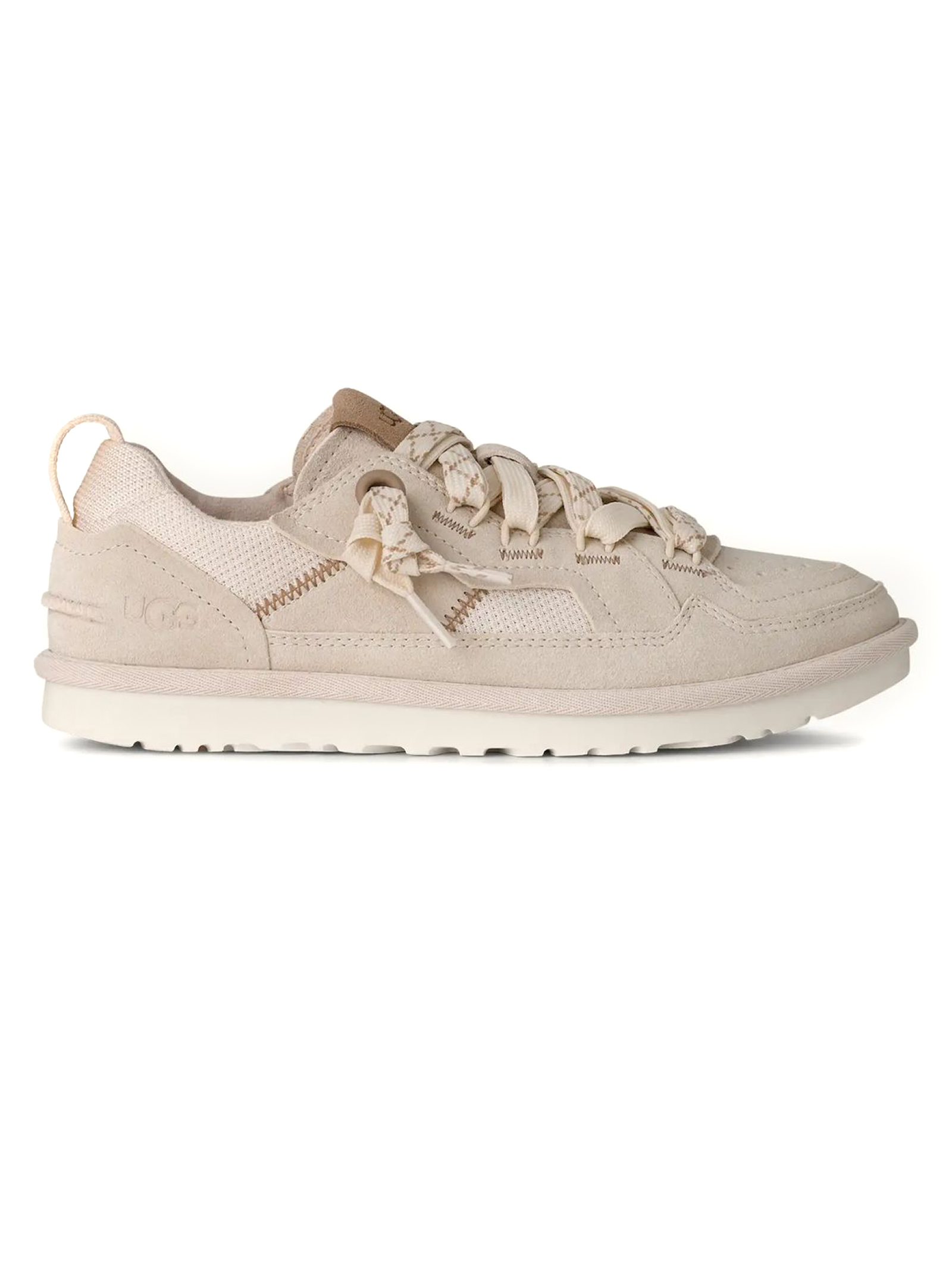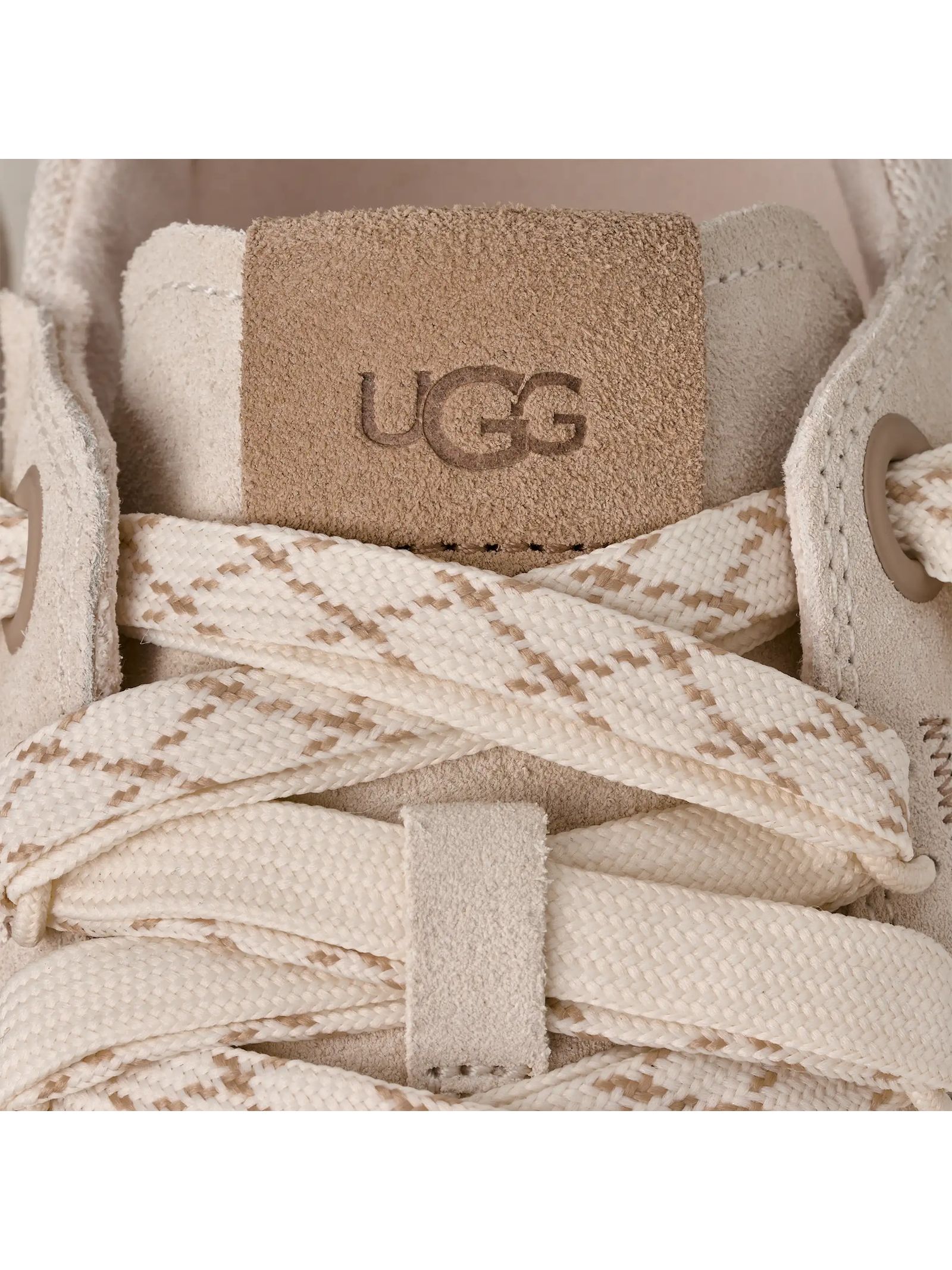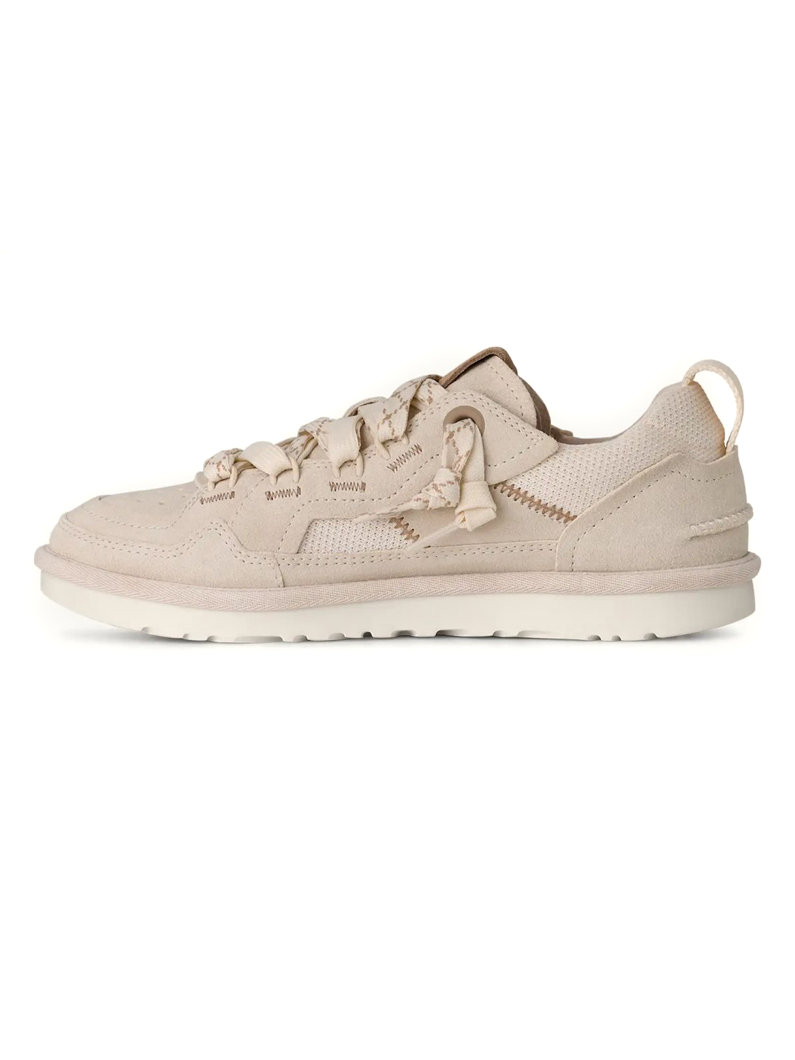 Sneakers Minimel in camoscio bianco sporco, Tomaia in pelle scamosciata e tessuto, realizzato con fibre di poliestere riciclato (100%), Tirante posteriore realizzato con fibre di poliestere riciclato (100%), Laccio piatto bicolore, sistema a doppia allacciatura, linguetta con inserto elasticizzato interno, Fodera di tallone e linguetta in microfibra, Tessuto della soletta realizzato con poliestere riciclato (100%), Suola interna (6 mm) in PU versato sagomato con materiali bio-based (50%), Suola in EVA da canna da zucchero, Logo UGG® stampato a caldo in rilievo, logo UGG® stampato a caldo in rilievo sulla linguetta