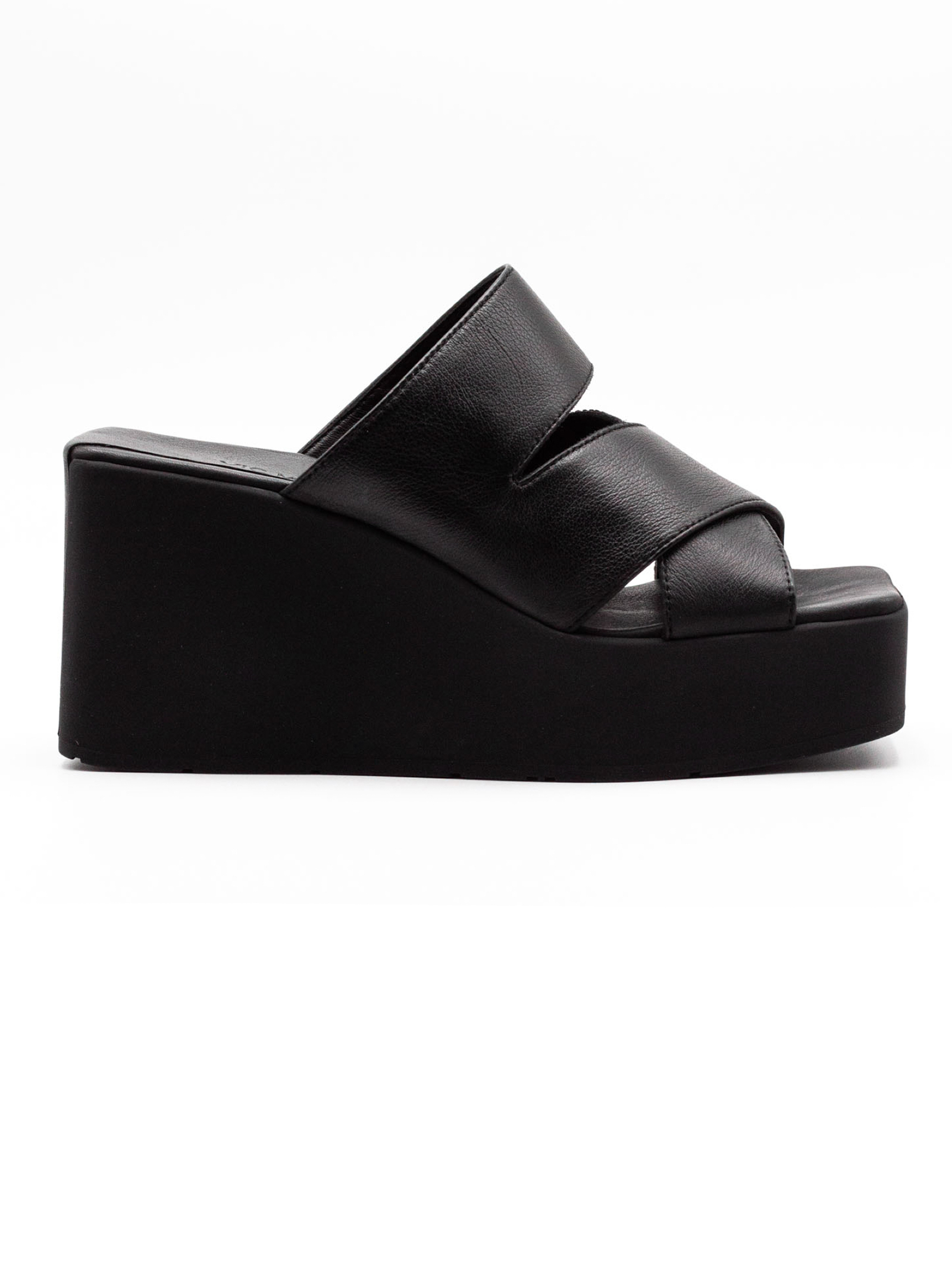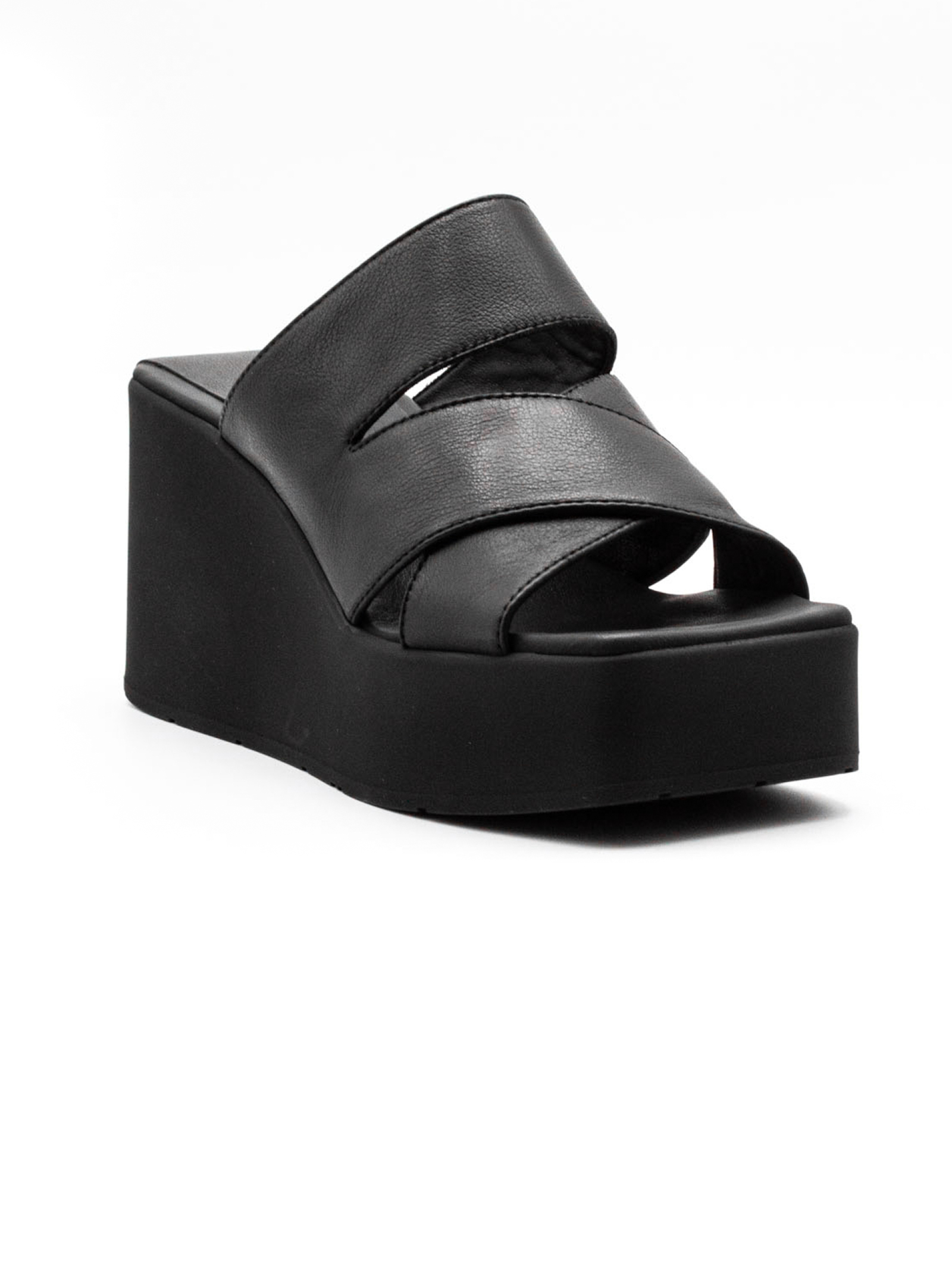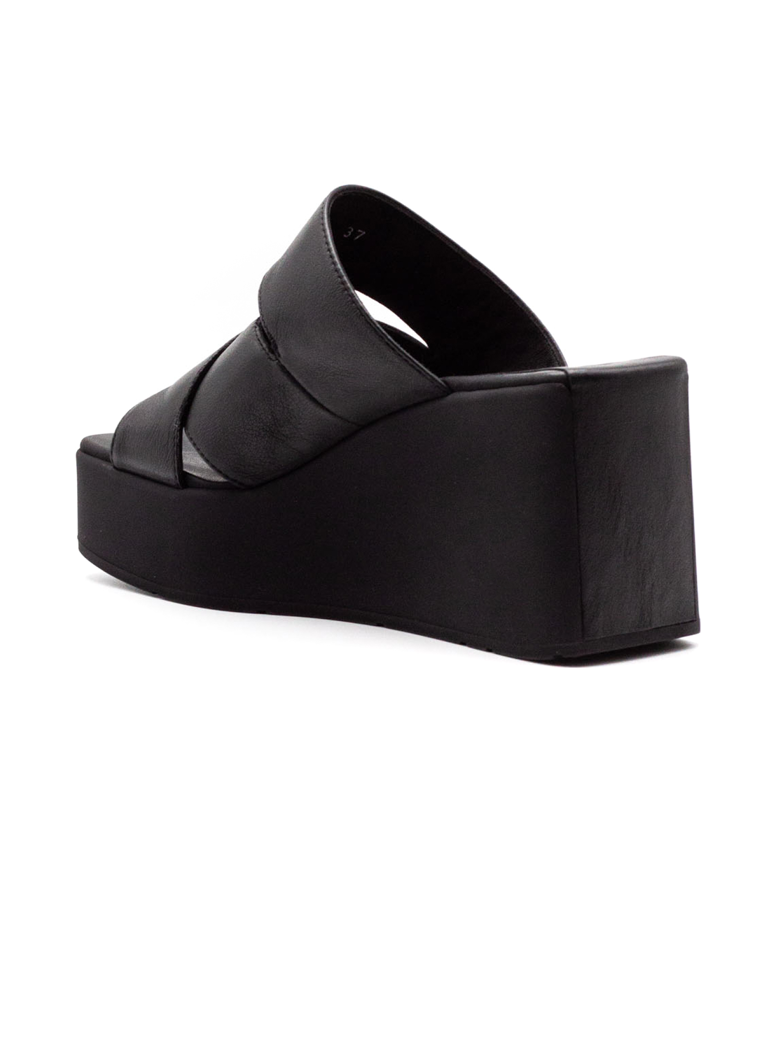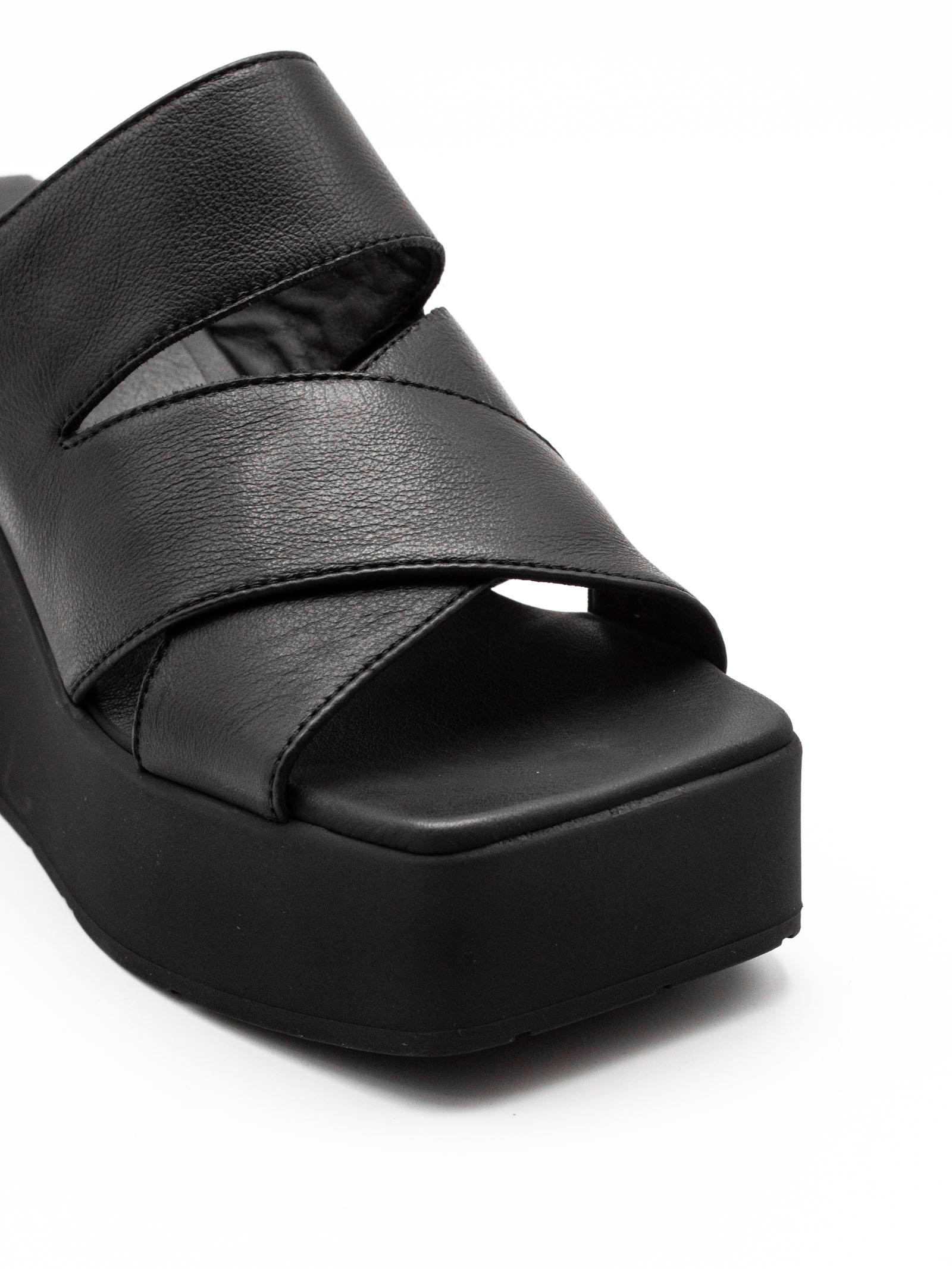 Sandalo in pelle liscia nera con sottopiede in pelle e zeppa leggera in gomma, Altezza tacco 85mm