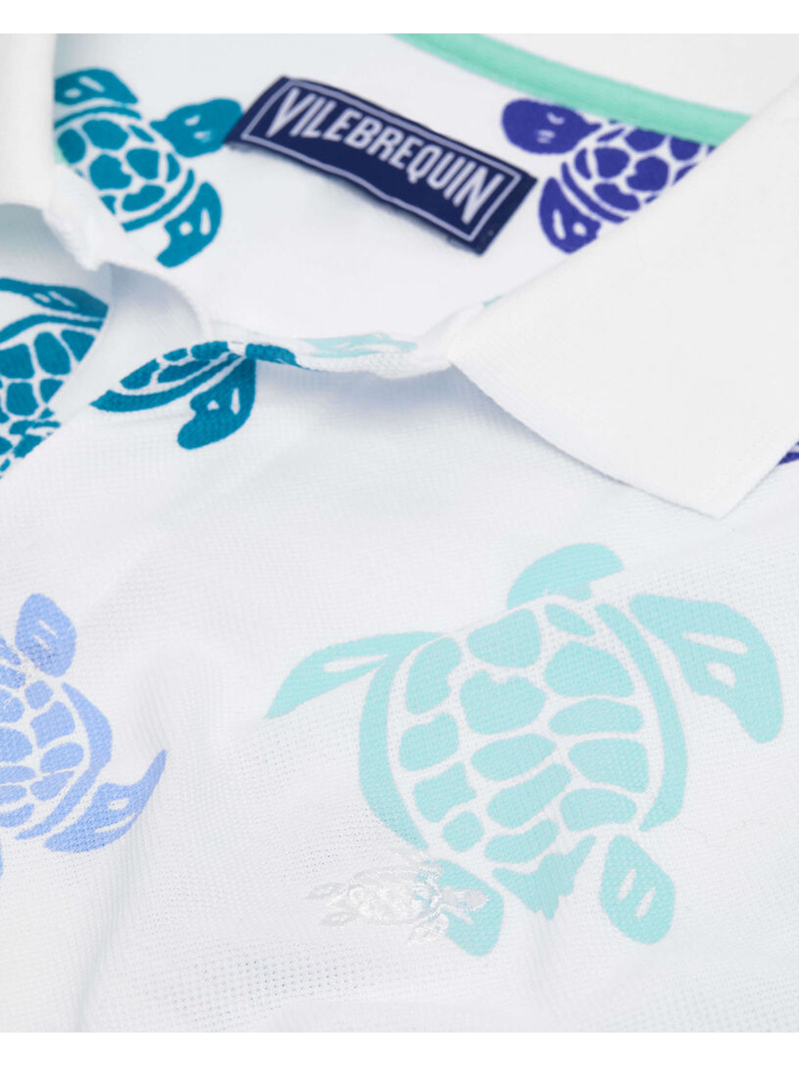 Polo in piquet di cotone a maniche corte, Tartaruga ricamata tono su tono sul petto, Tocco firma: logo Vilebrequin in jacquard discretamente lavorato a maglia nel colletto, Due occhielli sul retro, Pattina frontale senza bottoni, Filato cangiante lavorato a contrasto sul colletto