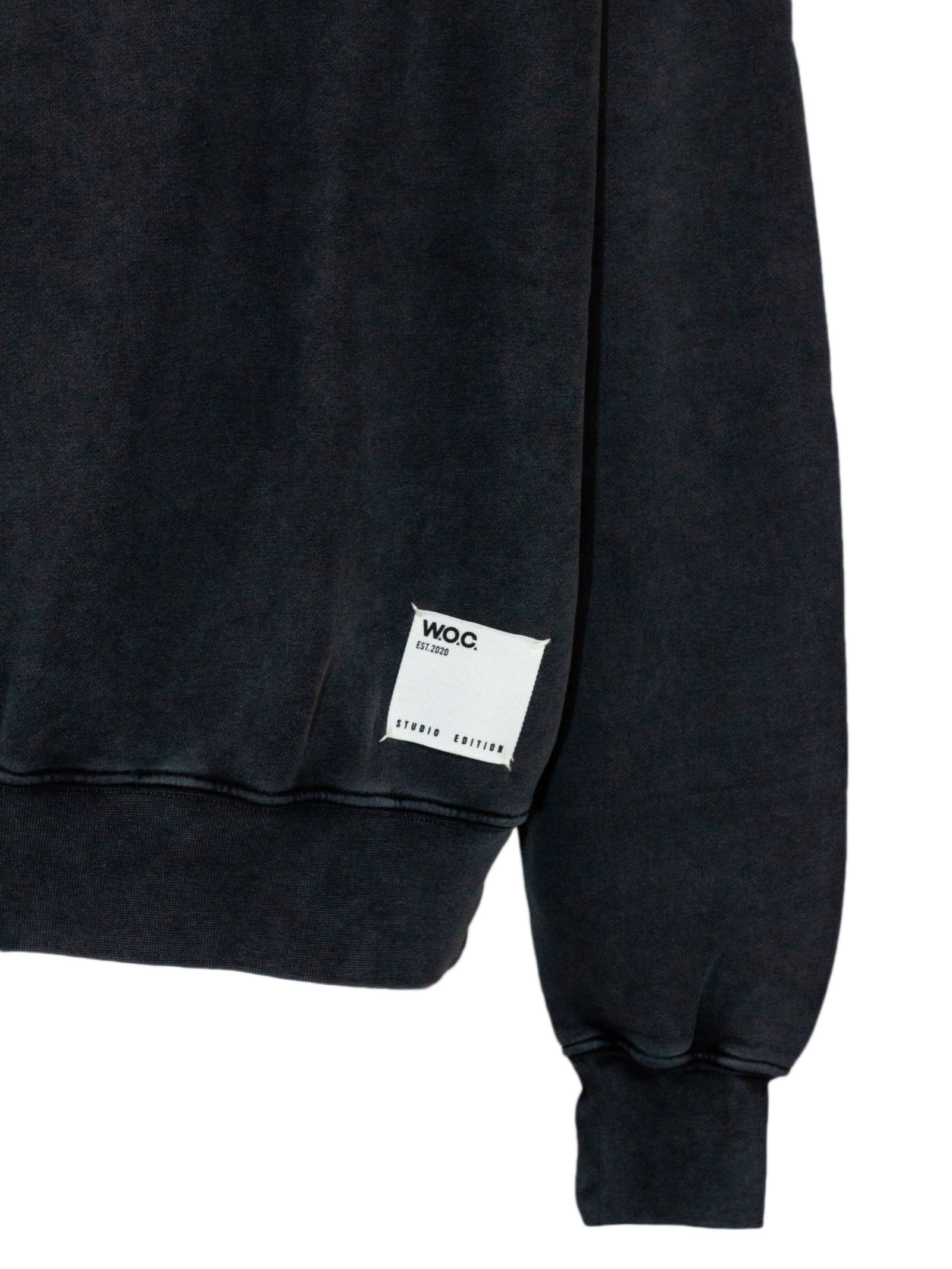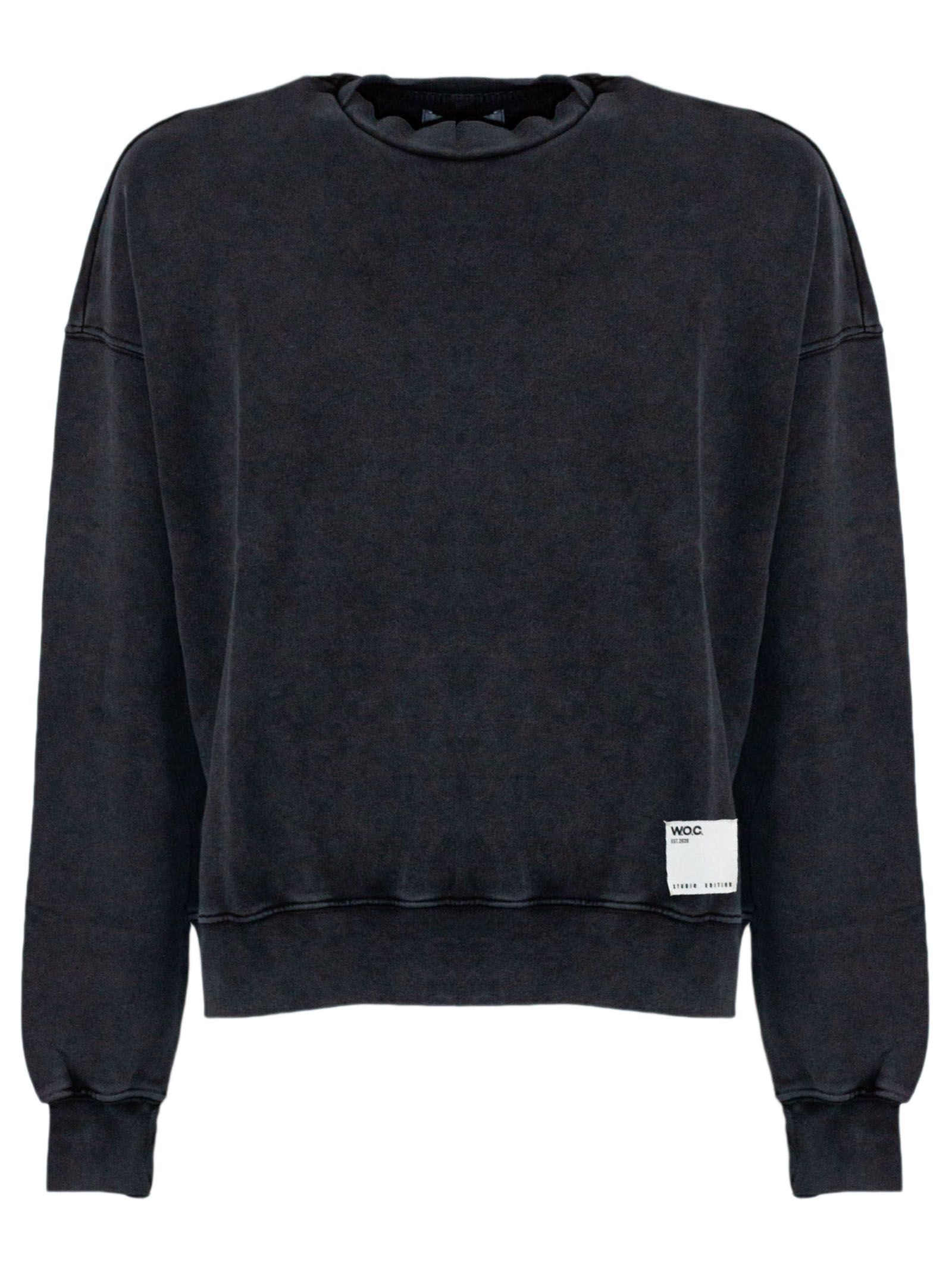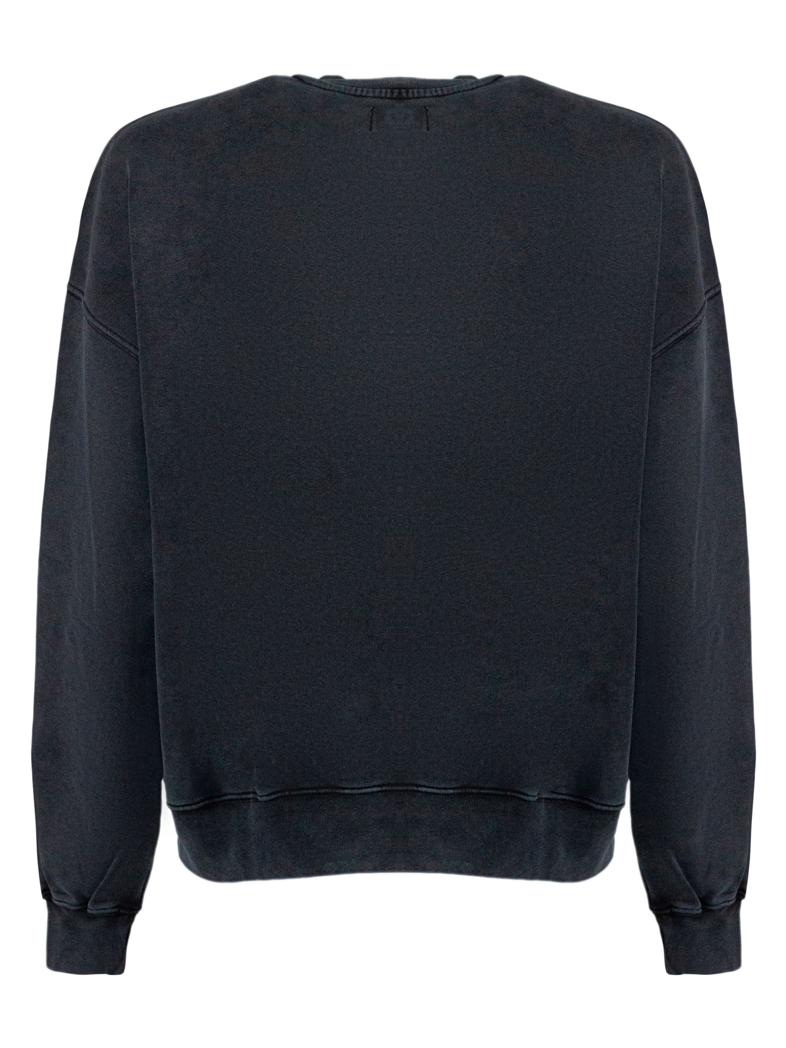 Felpa in cotone grigio scuro effetto lavato, girocollo, maniche lunghe, dettaglio logo ricamato, spalle basse, vestibilità ampia